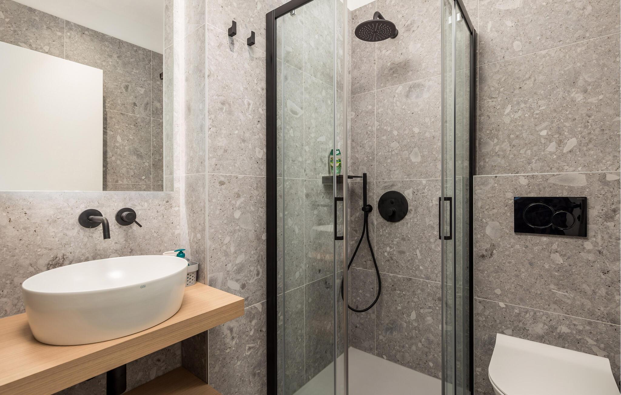 Badezimmer 4m2 (nr. 2) - WC. Warmes und kaltes Wasser. Dusche
