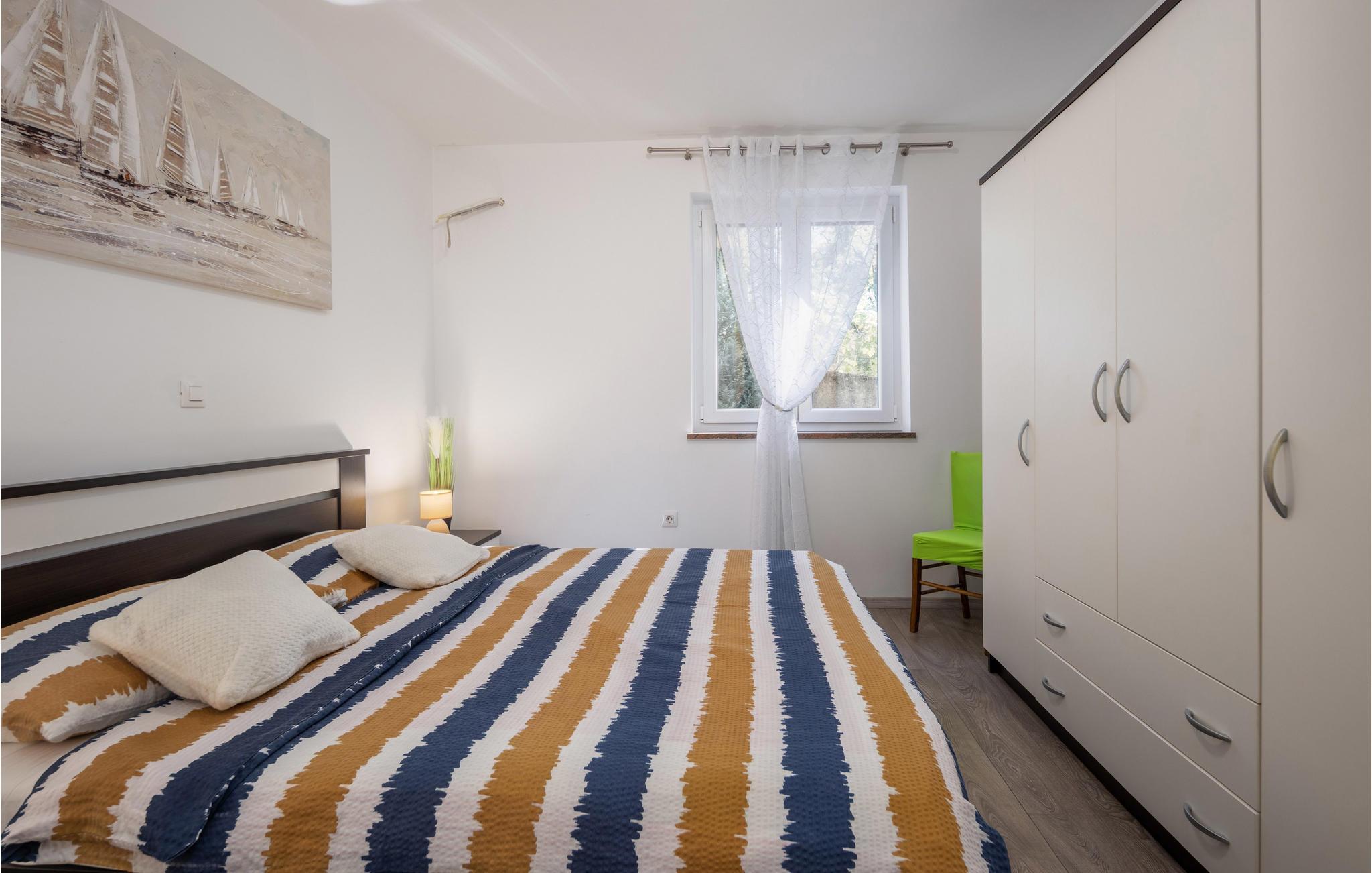 Im Erdgeschoß eines Apartmenthauses in unmittelbarer Nähe zum Meer, befindet sich diese geräumige und modern eingerichtete Ferienwohnung. Das Haus liegt in einer ruhigen Gegend und ist von Pflanzen umgeben, was Ihnen einen angenehmen Aufenthalt auf Ihrer privaten Terrasse ermöglicht. Hier können Sie es sich mit Ihrer Familie in heimeliger heller Atmosphäre gemütlich machen, gemeinsam Ihre Mahlzeiten verspeisen und den Blick über die Bucht schweifen lassen, während Sie an Ihrem Kaffee schlürfen.