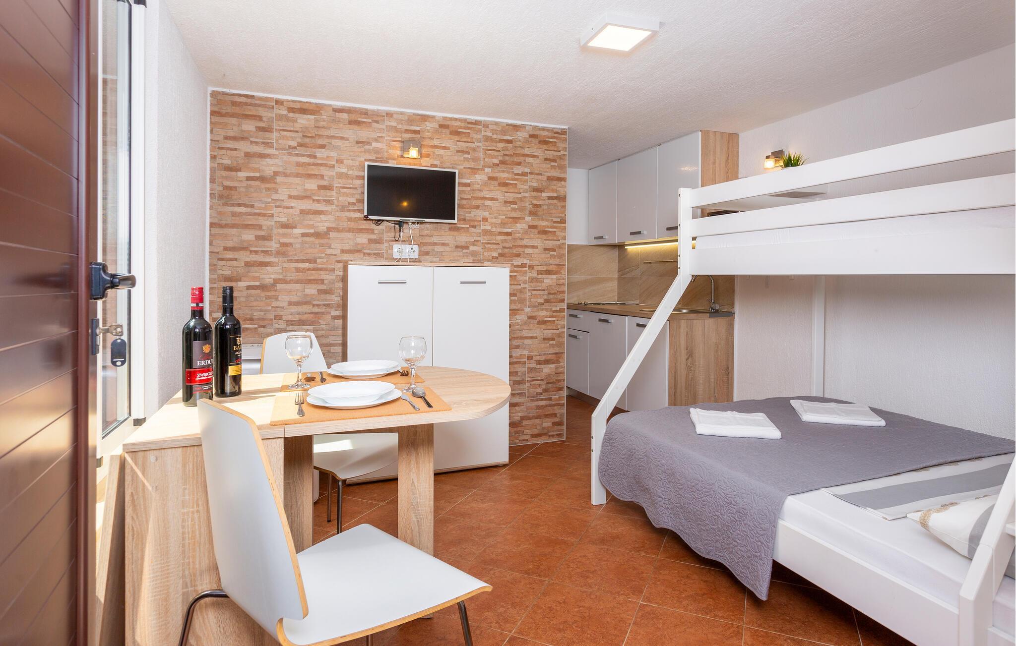 Vom Haus haben Sie den Blick auf das Meer und genau dorthin kann Sie Ihr Weg nach die Kiesstrände in der Nähe oder an die Sandstrände in Sil und Risika führen. Genießen Sie die schöne Landschaft für Ihren aktiven Urlaub. Spazieren Sie auf den viele Promenaden, markierten Wanderwegen und entdecken eine Reihe von Möglichkeiten für Sport und Aktivitäten am Meer. Besuchen Sie die nahe gelegene Altstadt von Krk, die voller Charme und Geschichte ist sowie das Städtchen Vrbnik und seine Weinkellereien.