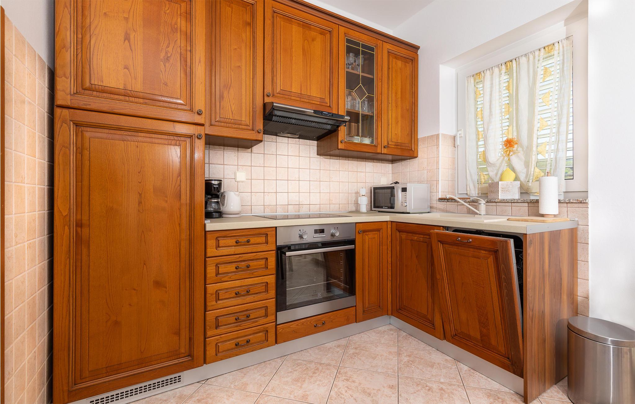 Abends können in der Küche gemütlich kochen, oder Sie und Ihre Familie können die kroatische Küche mit örtlichen Spezialitäten entdecken. Den Abend können Sie auf der Terrasse mit Blick aufs Meer mit leckerem Obst oder einem Glas Wein ausklingen lassen.