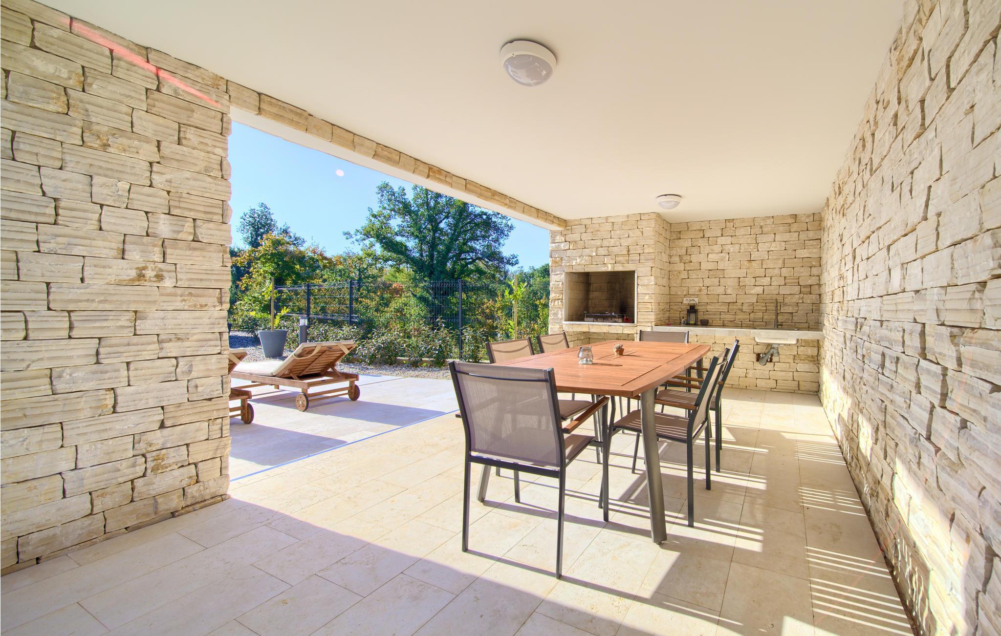 Herrliches Ferienhaus mit Pool in der kleinen Ortschaft Risika, nicht weit von Vrbnik und nur etwa 2 km vom Sandstrand „Sveti Marak“ entfernt. Diese Luxusvilla ist mit fünf Sternen ausgezeichnet und vom Grün der Natur umgeben. Genießen Sie Komfort und Privatsphäre in diesem schönen Feriendomizil. Das helle und moderne Interieur erstreckt sich über das Wohnzimmer, den Essbereich und die Küche, sowie Schlafzimmer und Bad im Erdgeschoss. Innentreppen führen Sie auf die obere Etage mit 2 Schlafzimmern, die Zugang zu einem Balkon haben. Erfrischung finden Sie im herrlichen Pool. Entspannen Sie sich mit einem guten Buch und lassen Sie Ihren Gedanken freien Lauf. Erleben Sie angenehme Sommerabende im Kreis Ihrer Familie mit Mahlzeiten vom Grill. Besuchen Sie Malinska, die Stadt Krk und Baška, die im Sommer viel Unterhaltung und Kultur bieten. Genießen Sie einen vielseitigen Urlaub auf dieser herrlichen Insel, die über eine Brücke mit dem Festland verbunden ist.