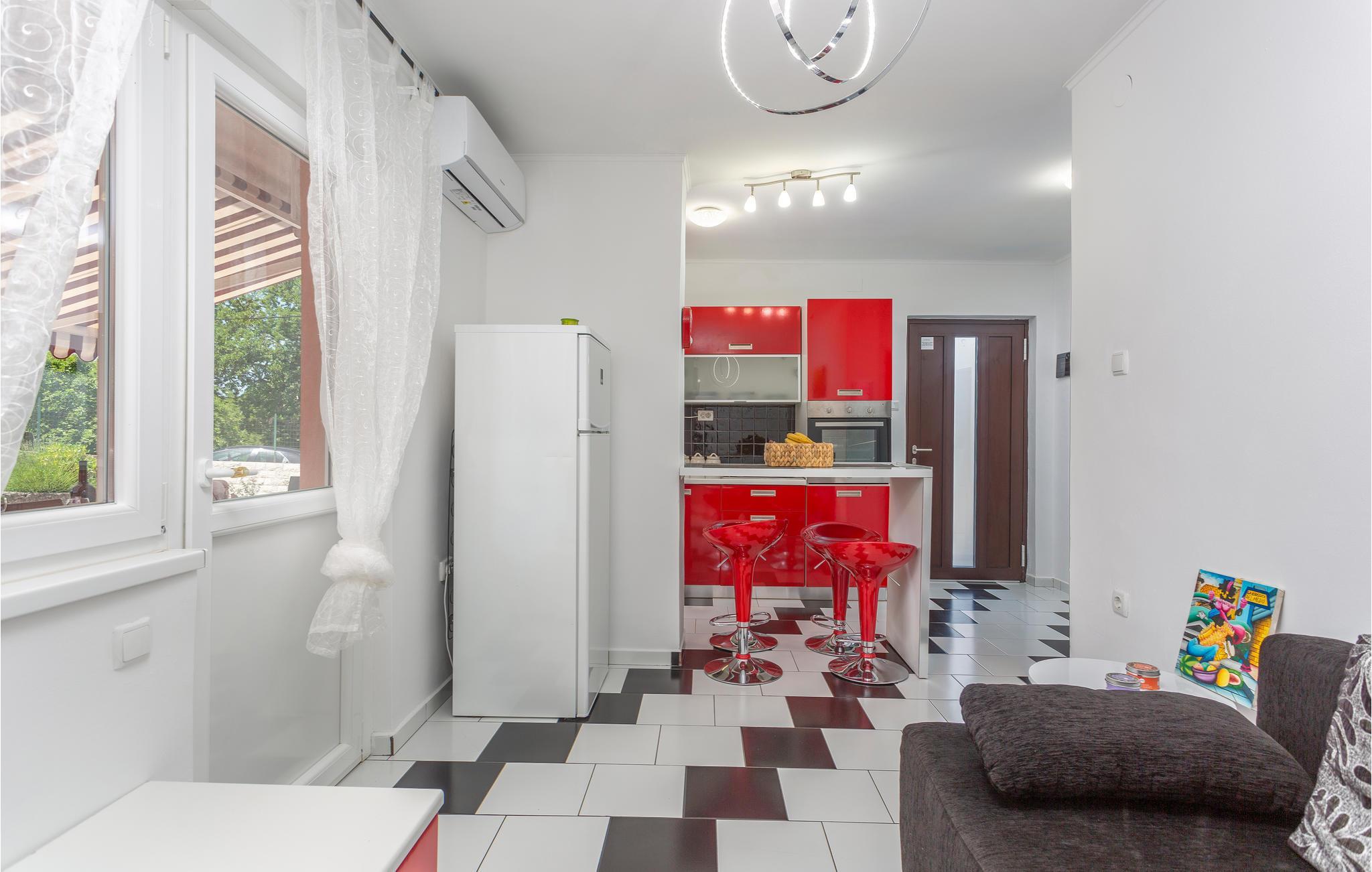 Dieses moderne Ferienhaus befindet sich auf der Insel 'Krk' und besteht aus zwei Wohneinheiten, die über eine Außentreppe miteinander verbunden sind. Die Wohnungen sind geräumig und ideal für 2 Familien. Diese heimelige Ferienwohnung bietet Ihnen alles Nötige was Sie für diese Auszeit benötigen werden. In der Küche können Sie bequem Ihre Mahlzeiten zubereiten und diese gemeinsam mit Ihrer Begleitung genießen, während Sie sich im Freien von der Sonne bescheinen lassen. Somit stehen Ihnen eine schöne Terrasse im Grünen sowie ein Grill und hochwertigen Gartenmöbeln zur Verfügung. Außerdem gibt es auch einen Garten, der zum Spielen für die Kinder einlädt, während sich die Eltern gemütlich im Freien entspannen können.