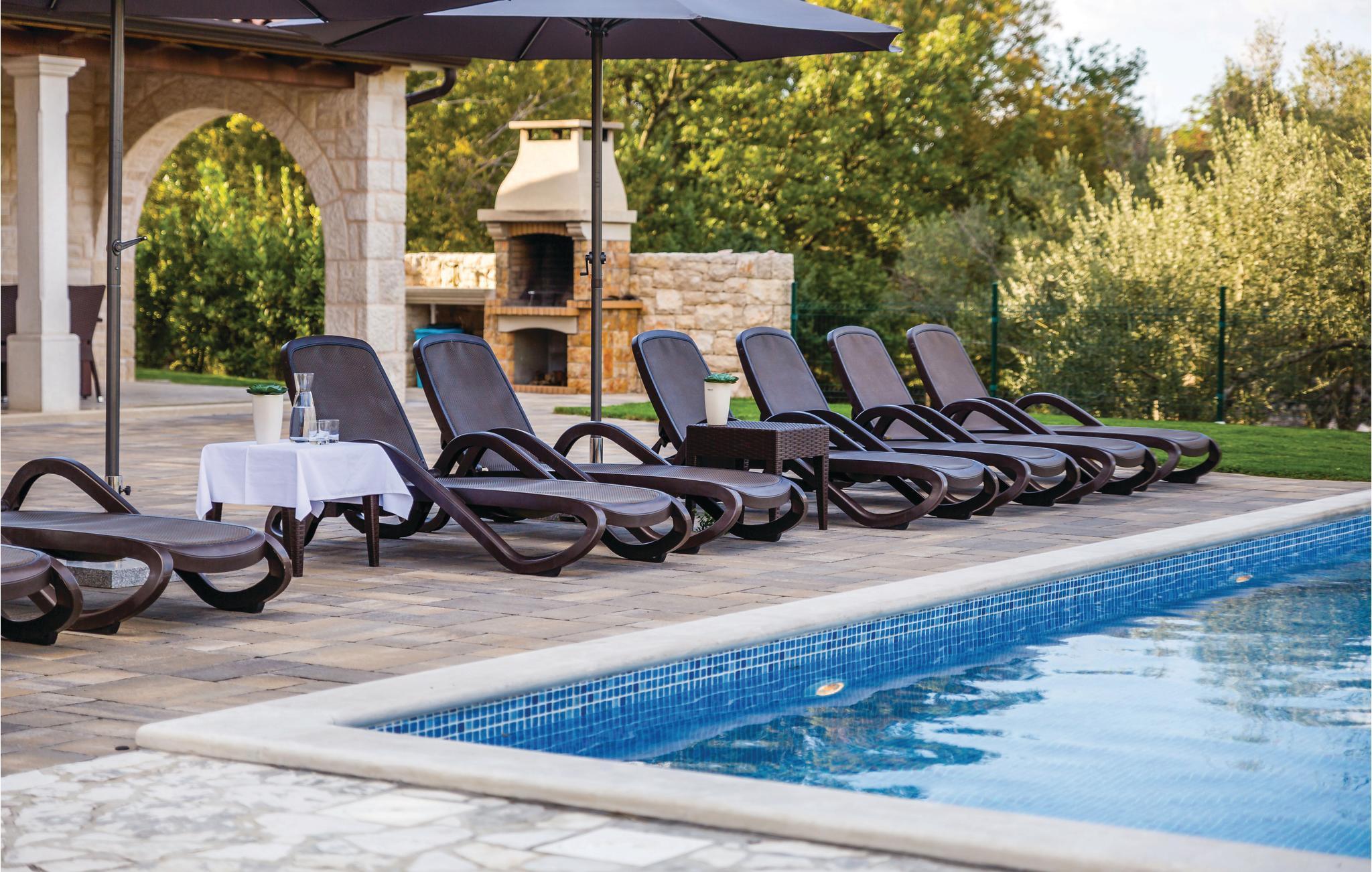 Diese schöne Villa mit großem, umzäuntem Garten, ideal für Kinder, steht im kleinen Dorf Turcic, nur 10 Minuten zu Fuß vom Meer und den Stränden entfernt. Sie ist ein Teil eines 4-Villen-Komplexes. Jedes Haus hat einen eigenen Pool und einen privaten Garten. Die Schlafzimmer sind geräumig und schön eingerichtet, je mit einem eigenen Bad. Im Erdgeschoss sind ein großes Wohnzimmer und eine Küche mit Esszimmer, aus welchem Sie auf die überdachte Terrasse gelangen, wo Sie auch speisen können. Im Hof liegt der Pool, der an heißen Sommertagen Erfrischung bringt. Vom Haus kommen Sie schnell zu den Sehenswürdigkeiten der Insel, die im Sommer zahlreiche Unterhaltungsveranstaltungen und ein reiches gastronomisches Angebot hat.
