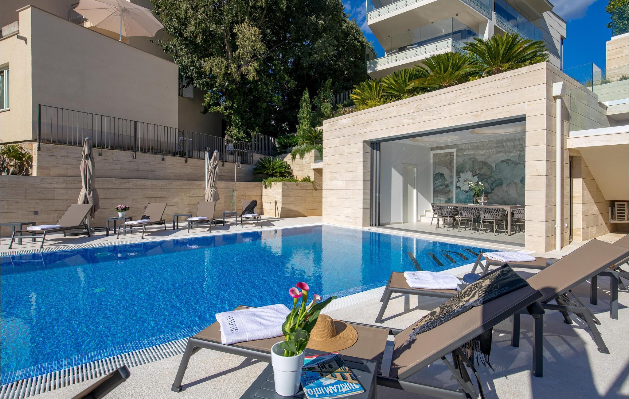 Verbringen Sie einen magischen Urlaub in dieser luxuriösen Ferienwohnung mit Außenpool und einem reizenden Blick auf das Meer und die Altstadt von Krk.