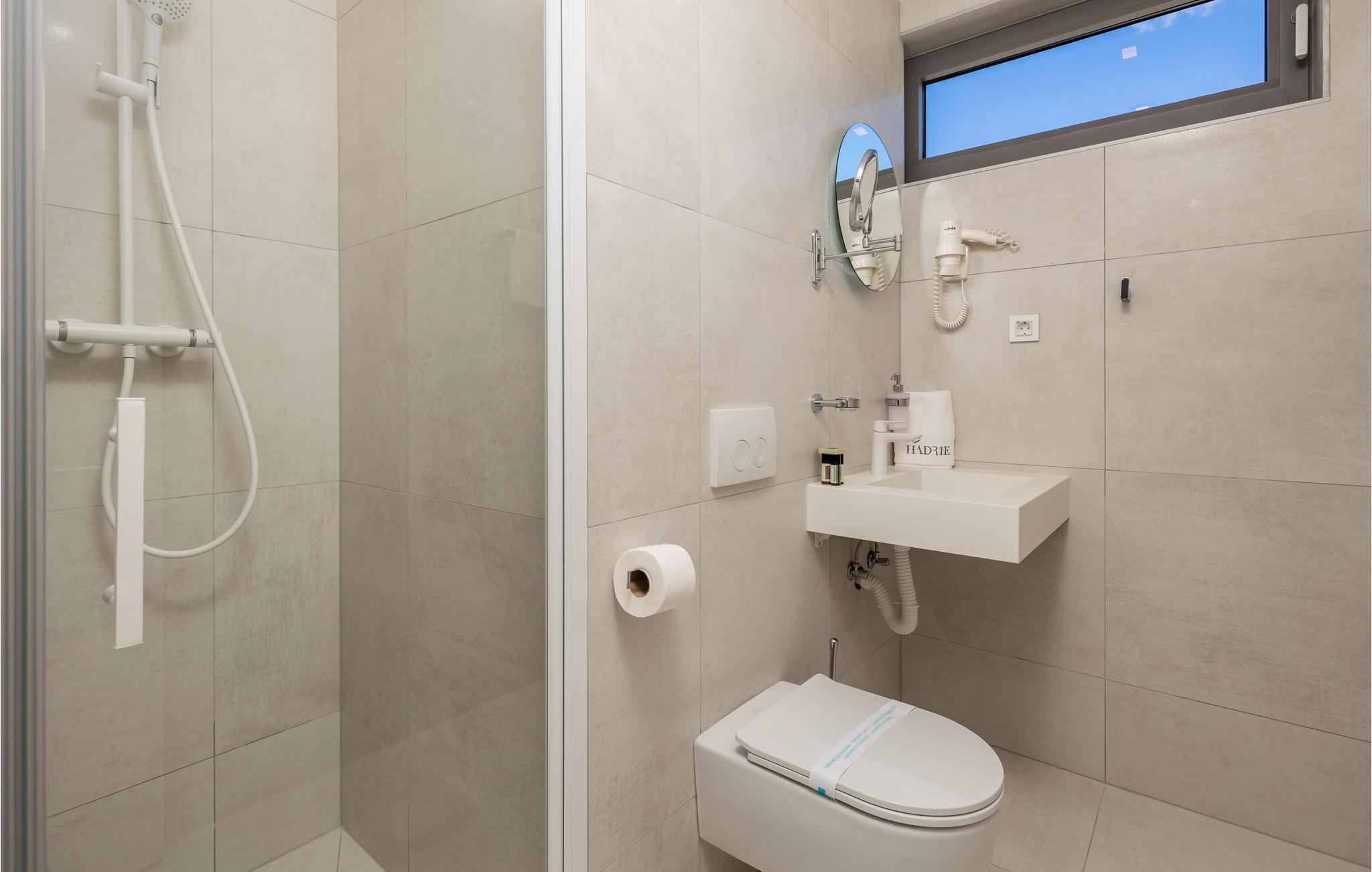 Badezimmer 4m2 (nr. 2) - WC. Warmes und kaltes Wasser. Dusche