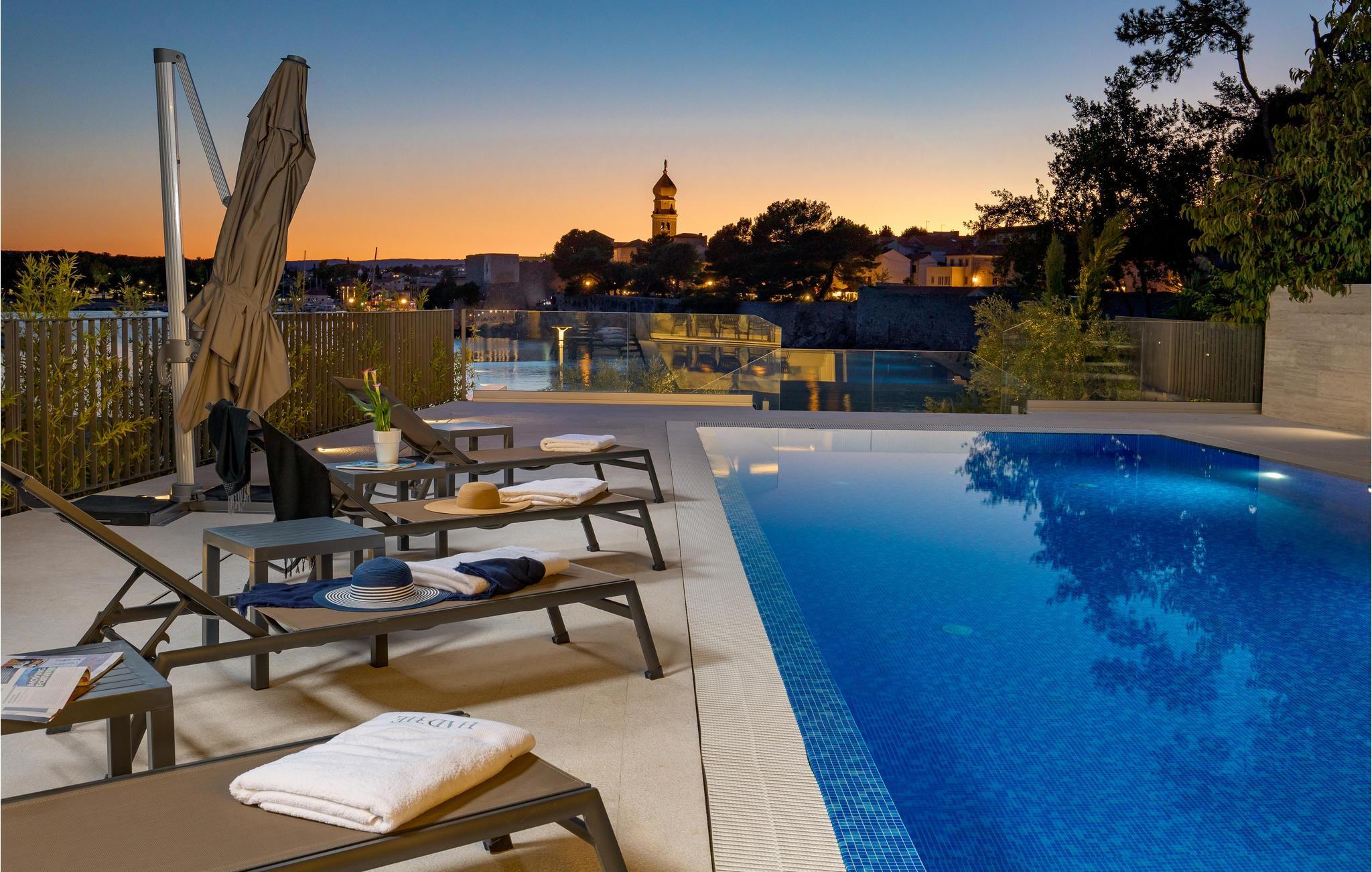 Verbringen Sie einen magischen Urlaub in dieser luxuriösen Ferienwohnung mit Außenpool und einem reizenden Blick auf das Meer und die Altstadt von Krk.