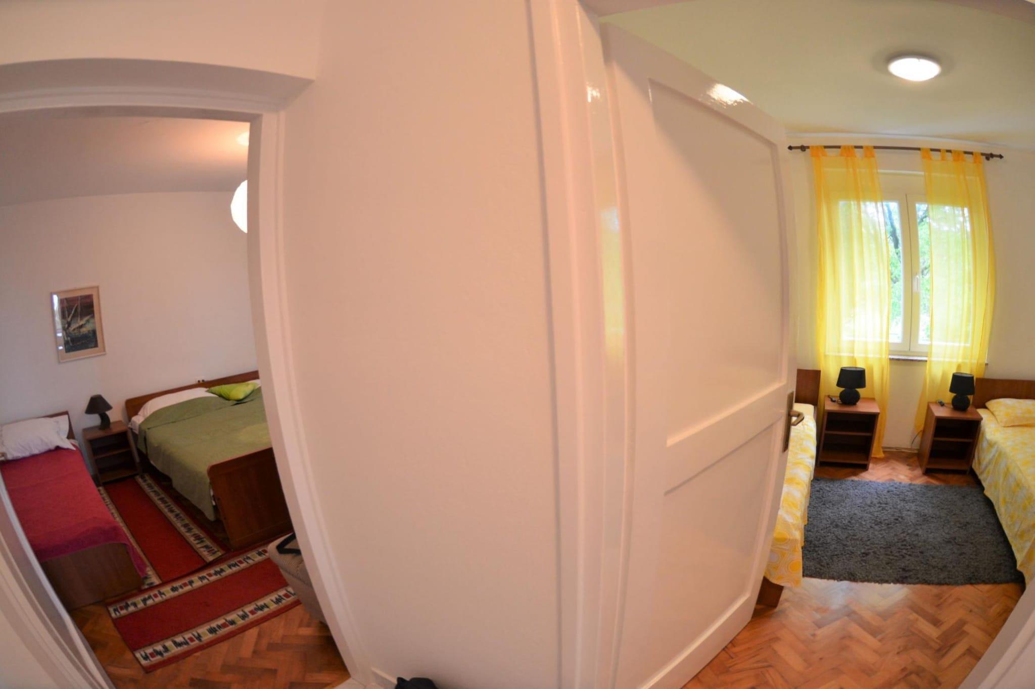 The "Bright and Breezy Apartment with Terrace and Sea View" is a rental property located in the picturesque region of Krk in Primorje-Gorski Kotar County, Croatia. This accommodation is known for its serene ambiance, stunning views of the Adriatic Sea, and proximity to beaches and local attractions. The apartment includes a private terrace with panoramic views, making it ideal for relaxation or enjoying meals outdoors. Note: Pets are not allowed. Private parking, reservation is not required. Wi-Fi is available throughout the property. This two-bedroom can accommodate up to five guests. It features a Cable TV and is combined kitchen. The private bathroom is equipped with a shower and toilet. Thanks to its excellent location, everything you'll need for your vacation is just a short walk away from the property. Grocery stores, cafes, restaurants—everything is within a 150 m radius. The beach is 200.00 m away from the property. The airport is 25 km away from the property.