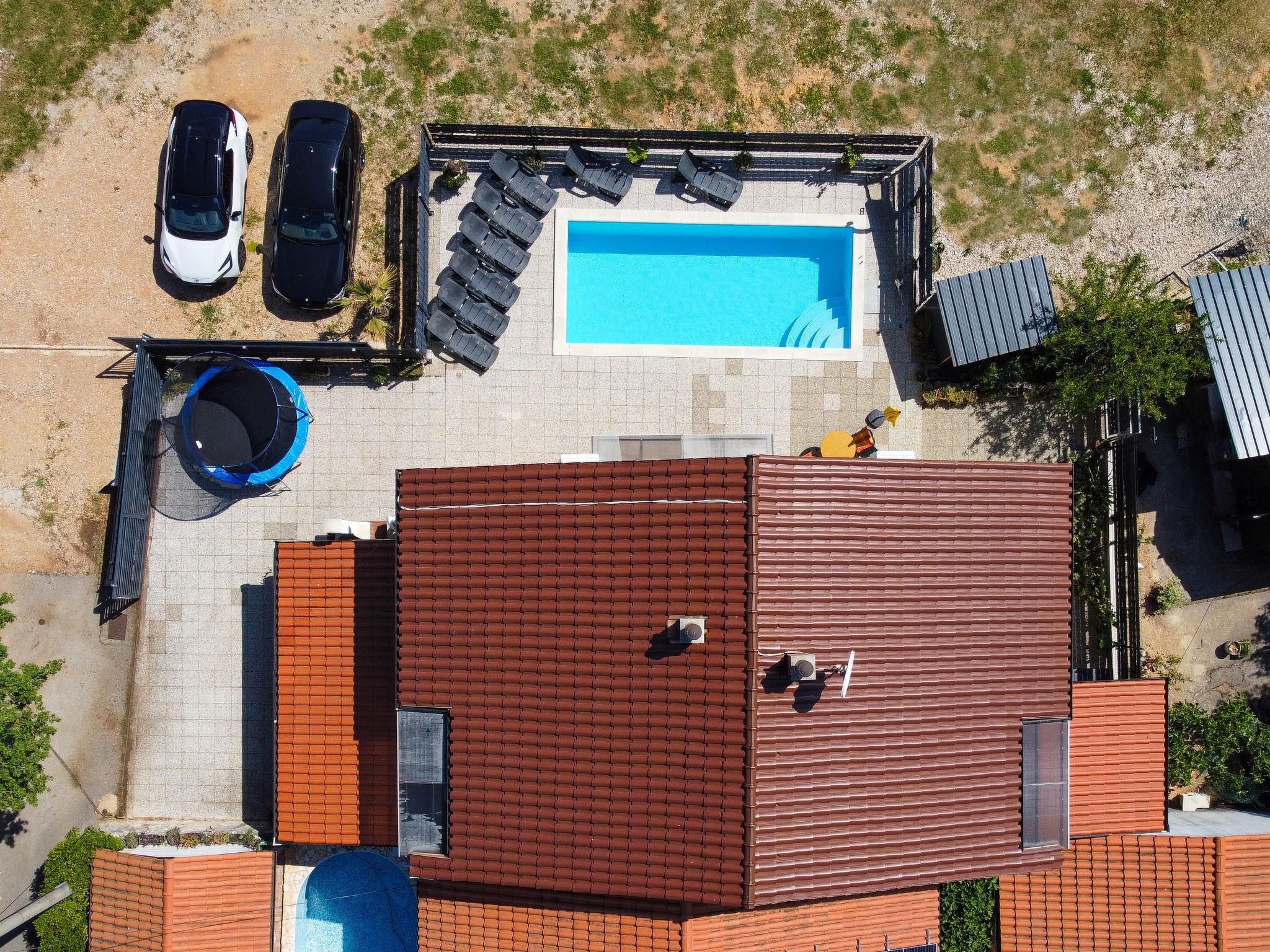 Semi-detached house "Radmila", 2 storeys. In the hamlet Županje 3 km from the centre of Šilo, 3000 km from the centre of Vrbnik, 3 km from the sea, 3 km from the beach, in a cul-de-sac, in the countryside. For shared use: property 300 m2 (fenced), swimming pool (3 x 7 m, depth 130 cm, seasonal availability: 01.May. - 01.Oct.). Pool maintenance by the owner/gardener. In the house: internet access, table football, trampoline. Parking at the house. Shop 1.4 km, restaurant 3 km, bus stop 3.5 km, pebble beach 4 km, shingle beach 3 km. Please note: the owner lives on the same property. Airfield 16 km from the property.