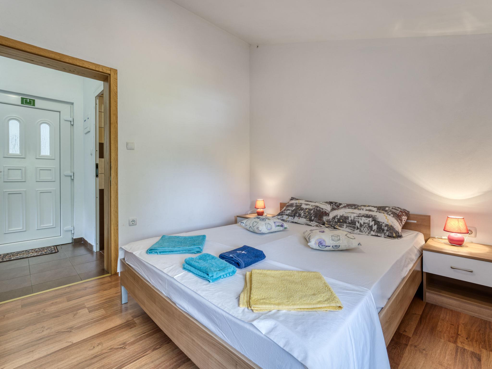 "Radmila 3", 2-room apartment 42 m2 on 1st floor. Living/dining room with 1 sofabed (160 cm, length 200 cm), satellite TV (flat screen), air conditioning. 1 room with 1 french bed (180 cm, length 200 cm). Exit to the balcony. Open kitchen (4 hot plates, oven, 2 gas rings, kettle, freezer). Shower/WC. Forced-air heating. Small balcony 4 m2. View of the countryside. Facilities: Internet (WiFi). Please note: suitable for families. Non-smokers only. Maximum 2 pets/ dogs allowed. Fire extinguisher.