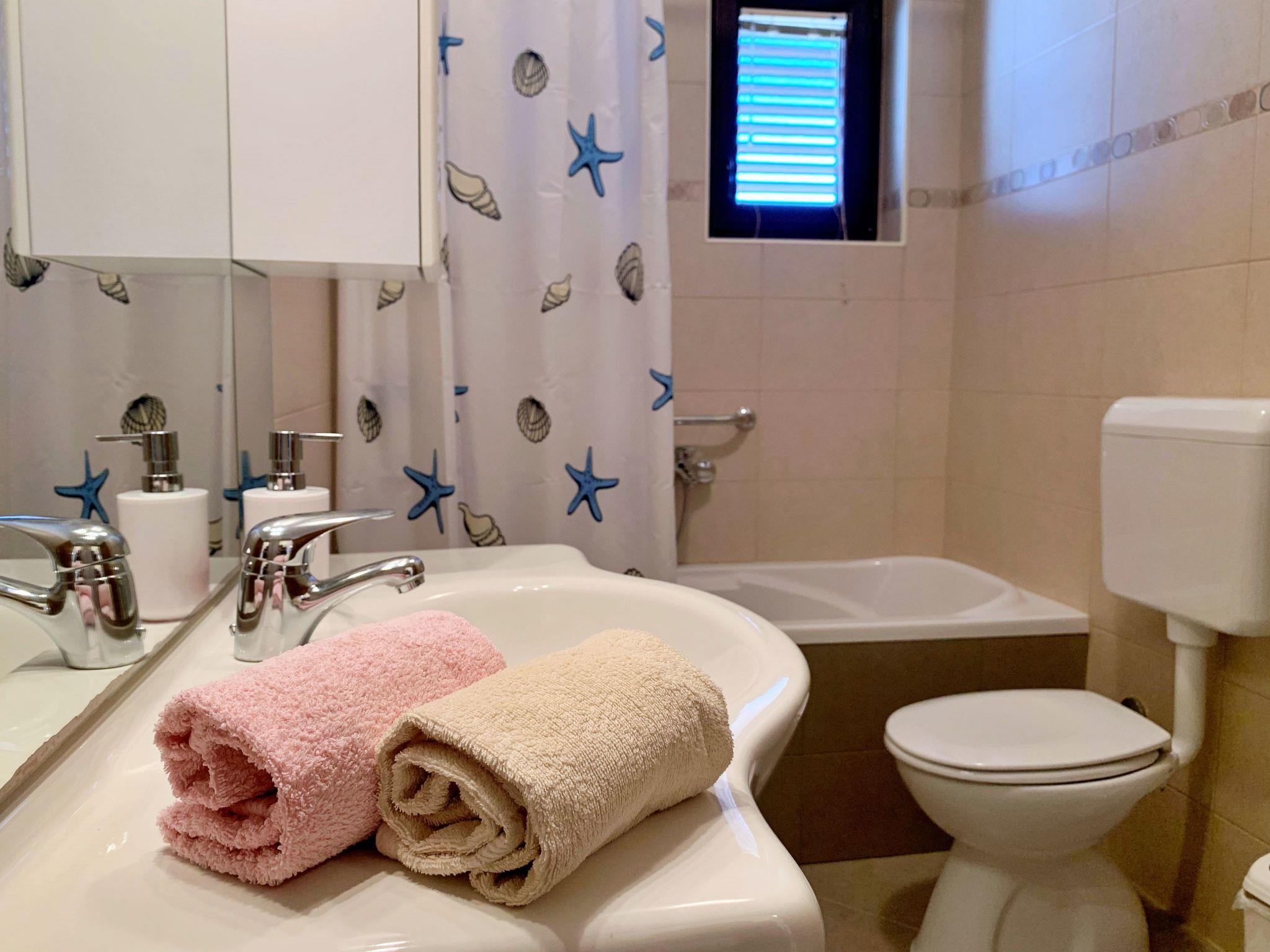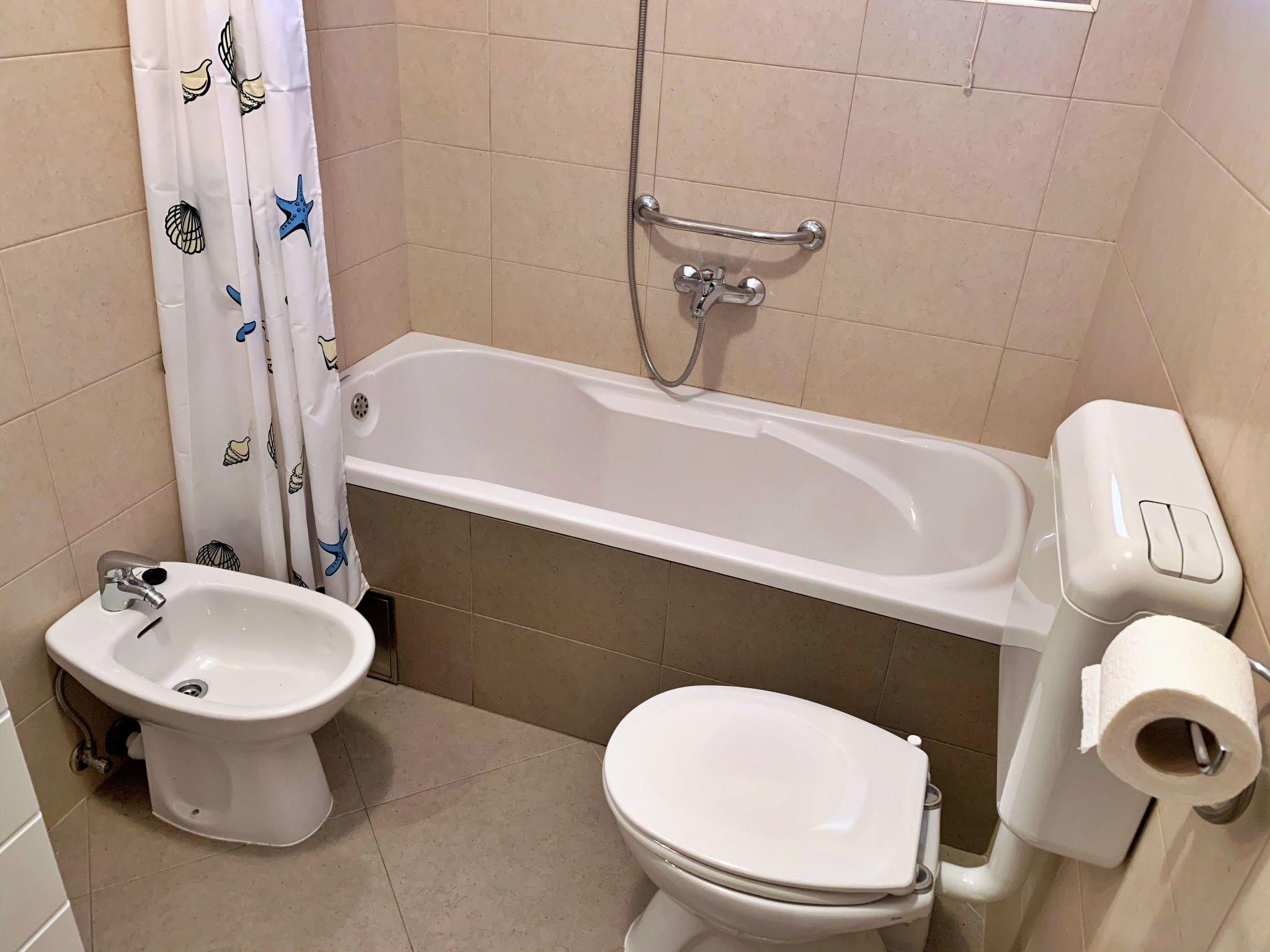The fully equipped kitchen includes an electric/gas hob, oven, fridge with freezer compartment, microwave, toaster, coffee machine, kettle and hand mixer, so you have everything you need to cook. The bathroom has a bathtub, a bidet, a washing machine, a hairdryer and an iron.