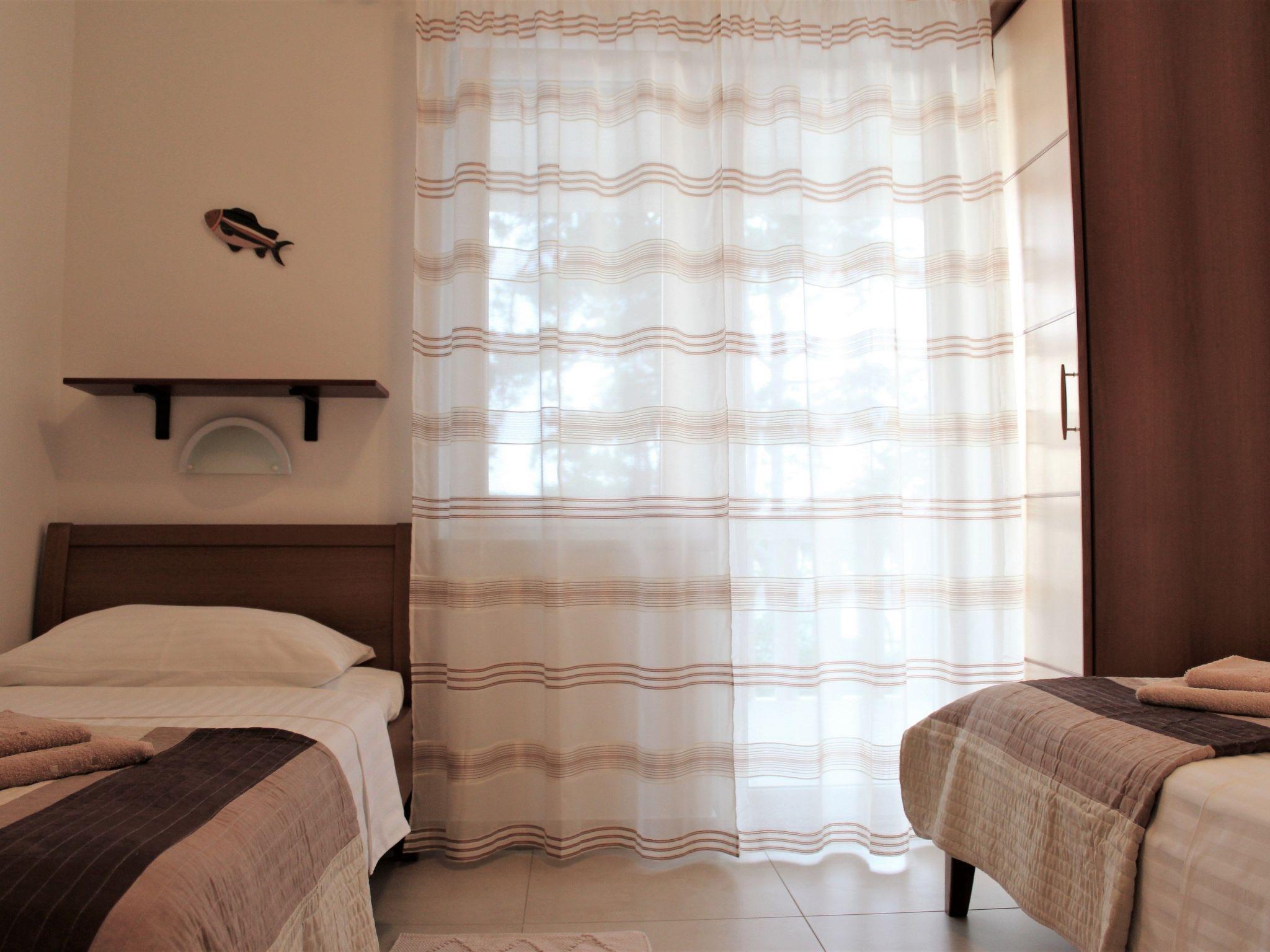 This cozy two-bedroom apartment is located on an elevated ground-floor in a house that is just 20 meters from the sea and beach, offering a sea view and easy access to nearby restaurants and a diving center. The fully equipped kitchen features an electric/gas stove, a mini-oven, fridge with freezer, coffee machine, kettle, toaster, dishwasher, and hand mixer. The living/dining room has a sofa, dining table, satellite TV, Wi-Fi, and air conditioning. One bedroom has a queen-size bed, while the other has two single beds. The bathroom includes a shower, toilet, and hairdryer. Enjoy the 25 m2 roofed patio with a dining area, parasol, sun loungers, and sea view. A garden with a BBQ and outdoor shower adds to the outdoor space. Private parking is available, and bed linens, towels, and iron are provided for your convenience.