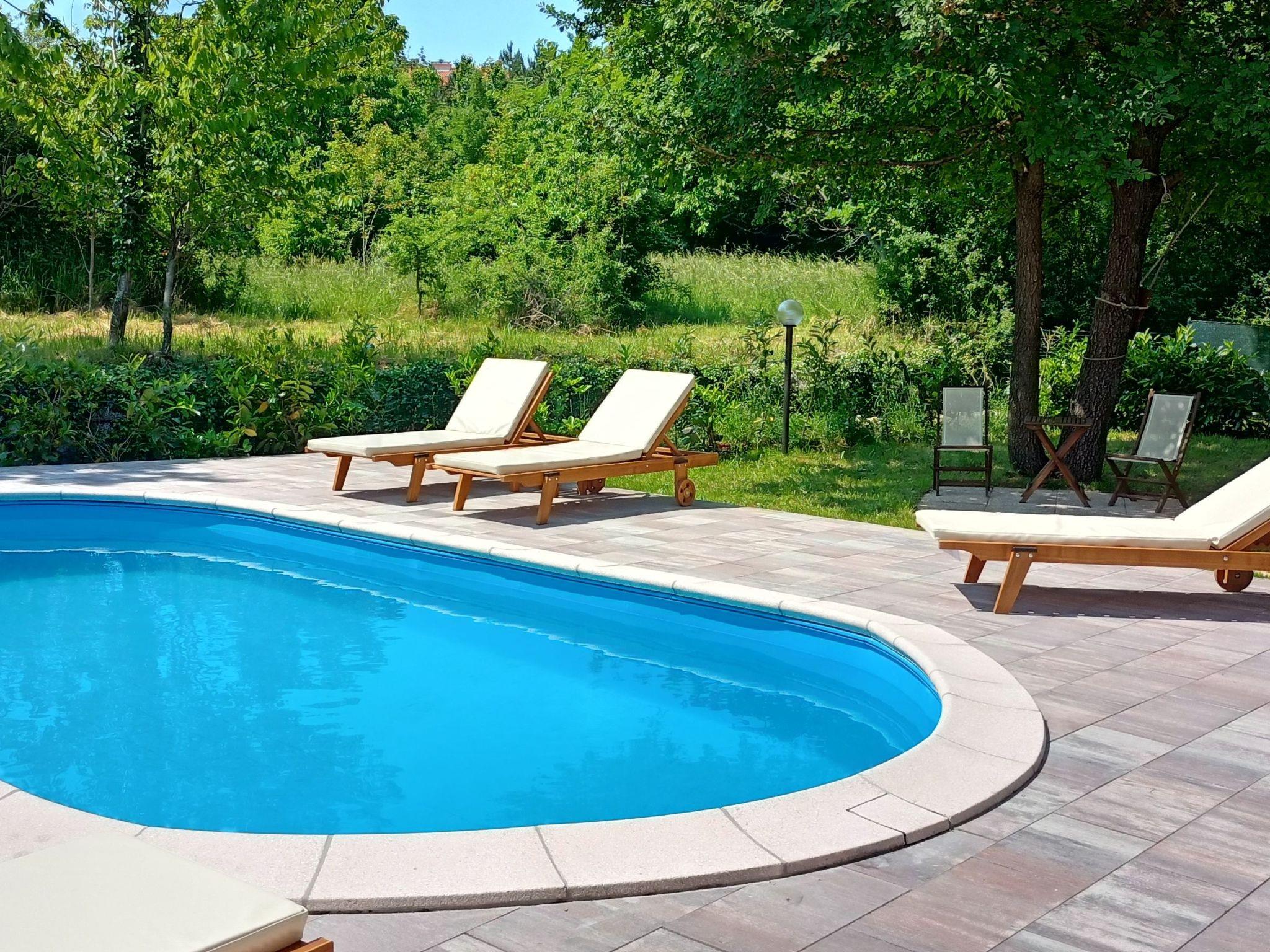 Stepping outside, guests are greeted with a 25 m² pool (7 x 3.4 m) that promises refreshing dips on warm days. The small balcony provides a quaint spot for morning coffees or evening relaxation, overlooking the serene surroundings. The ground floor extends an invitation to a beautifully maintained garden where guests can enjoy barbecue facilities, perfect for indulgent evenings under the stars. This outdoor oasis is designed for moments of leisure and pleasure, making every day of your stay memorable.