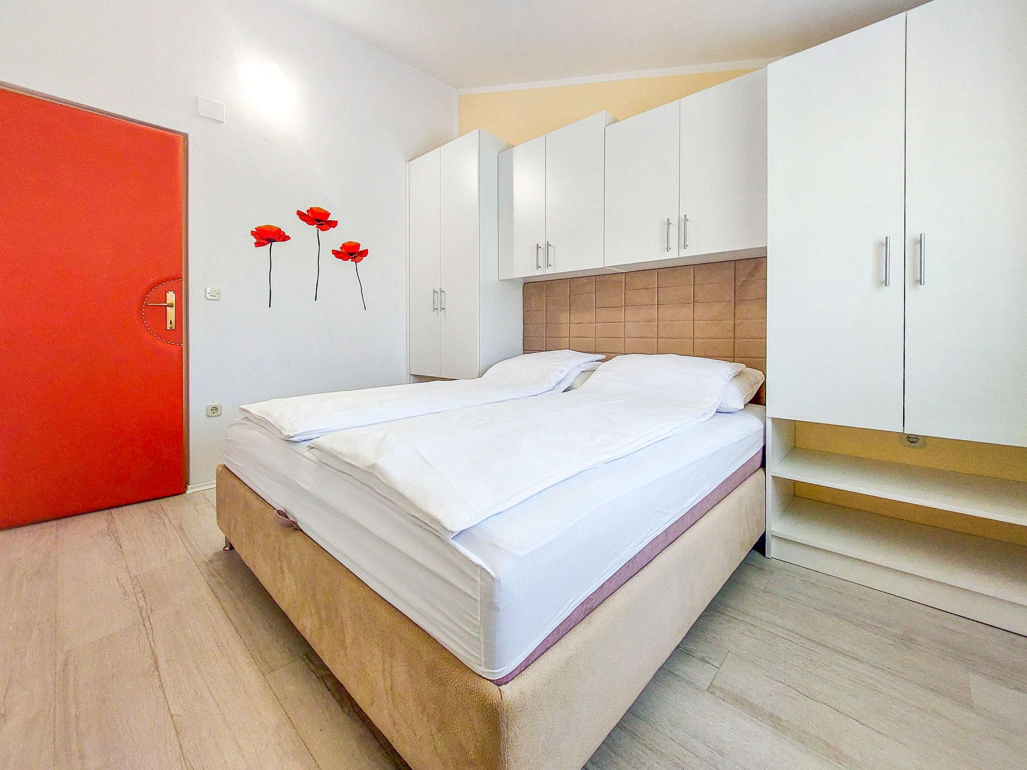 "Marija", 3-room apartment 45 m2 on 2nd floor. Living/dining room with satellite TV and air conditioning. Exit to the balcony. 1 room with 1 french bed (160 cm, length 200 cm). 1 room with 2 beds (80 cm, length 200 cm). Open kitchen (4 hot plates, oven, dishwasher, toaster, kettle, freezer, electric coffee machine). Bath/WC. No heating option. Balcony 3 m2. Balcony furniture. Facilities: washing machine. Internet (WiFi, free). Please note: non-smoking house. Maximum 2 pets/ dogs allowed.