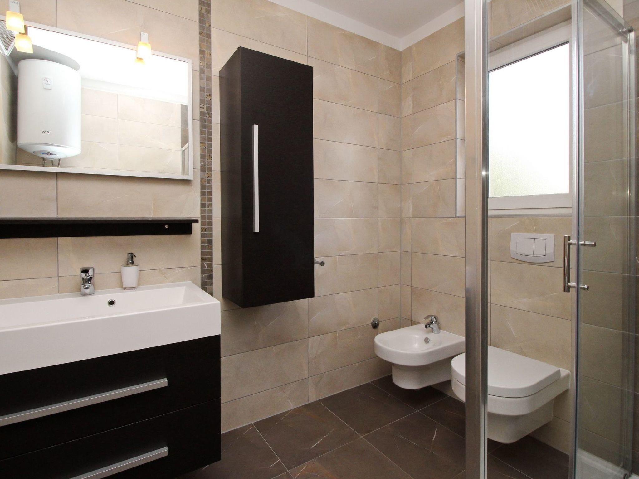 No. of persons: 4-6 places: 65 m2 (ground floor) Terrace: private terrace, partly covered, tables and chairs for the terrace are available. Info: satellite TV, bed linen is provided once a week, towels available (1 large, 1 small / per person and week), use of air conditioning is included in the price of the accommodation, free Wi-Fi, pets are allowed. Equipment holiday flat: Bedroom no.1 : double room , double bed , exit to terrace, tiled, LCDtv Bedroom no.2 : double room , double bed , tiled, LCDtv Living area : living room, dining room and kitchen are one unit ; one additional sleeping possibility on a sofa bed ; exit to terrace; tiled Kitchen : kitchenette, dishes, cooking pots, cutlery etc. are available, dish towels available, electric cooker, number of hotplates: 4, fridge with freezer compartment, coffee machine, dishwasher Bathroom : bathroom with toilet, with shower Each flat has its own parking space.