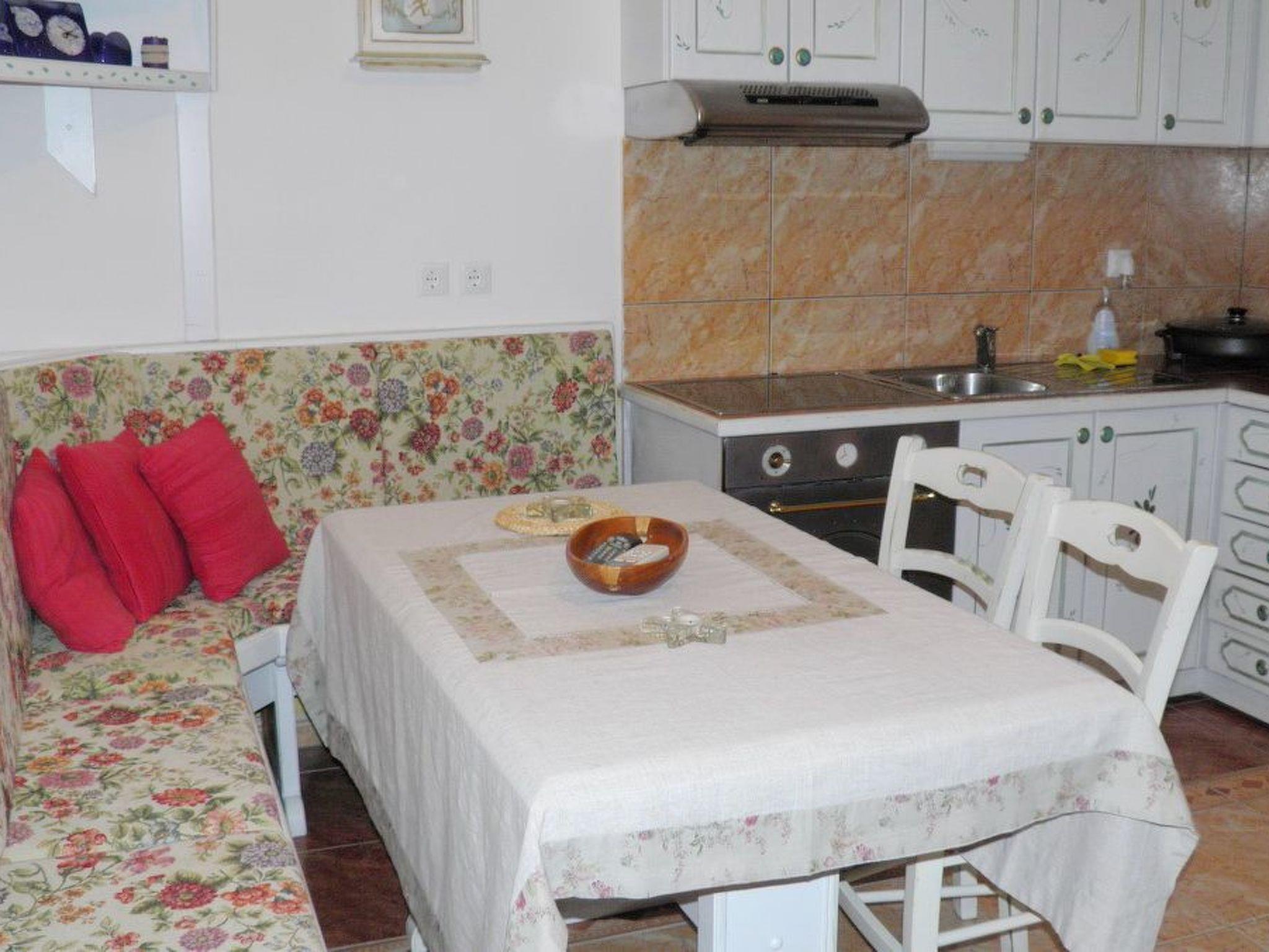 - Living room, dining room and kitchen are one unit; dining table and seating for all persons; one additional sleeping possibility on a sofa bed; with terrace; tiled