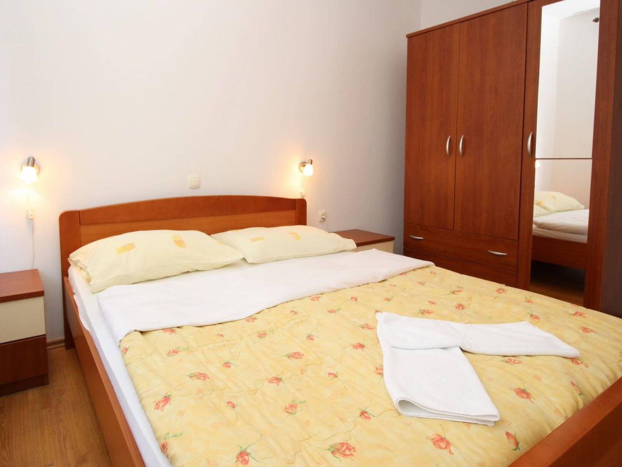 No. of persons: 6 Places: 80 m2 (1st floor) Balcony : a private balcony, covered, tables and chairs for the balcony are available. Info: Satellite TV, bed linen is provided once a week, towels available (1 large, 1 small / per person and week), use of air conditioning is included in the price of the accommodation, pets are not allowed. Equipment holiday flat: Bedroom No.1 : Double room , Double bed , Laminate Bedroom No.2 : Double room , Double bed , Laminate Bedroom No.3 : double room , double bed , laminate living area : living room, dining room and kitchen are one unit ; dining table and seating for all persons ; with balcony ; tiled kitchen : kitchenette, crockery, pots and pans, cutlery etc. are available, tea towels provided, electric cooker, number of hotplates: 4, oven, fridge with freezer compartment, coffee machine bathroom no.1 : bathroom with WC, with bathtub bathroom no.2 : bathroom with WC, with shower