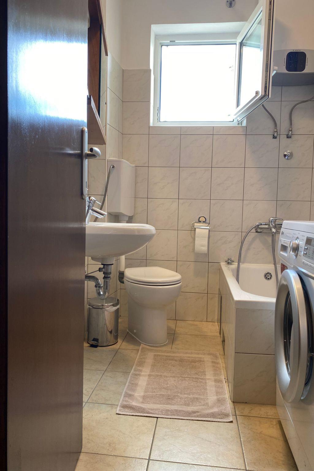 Near the house are restaurants with domestic and international food, grocery shop,pharmacy,bank,ambulance,dentist,bakery all in circle of 200 meters. Near of apartment is public beach at only 100 meters. Beach is paved and pebble. Transfer from/to airport,bus or railway station is also available on request. Apartment space is aprox. 50m2, balconies are about 6m2+2m2.