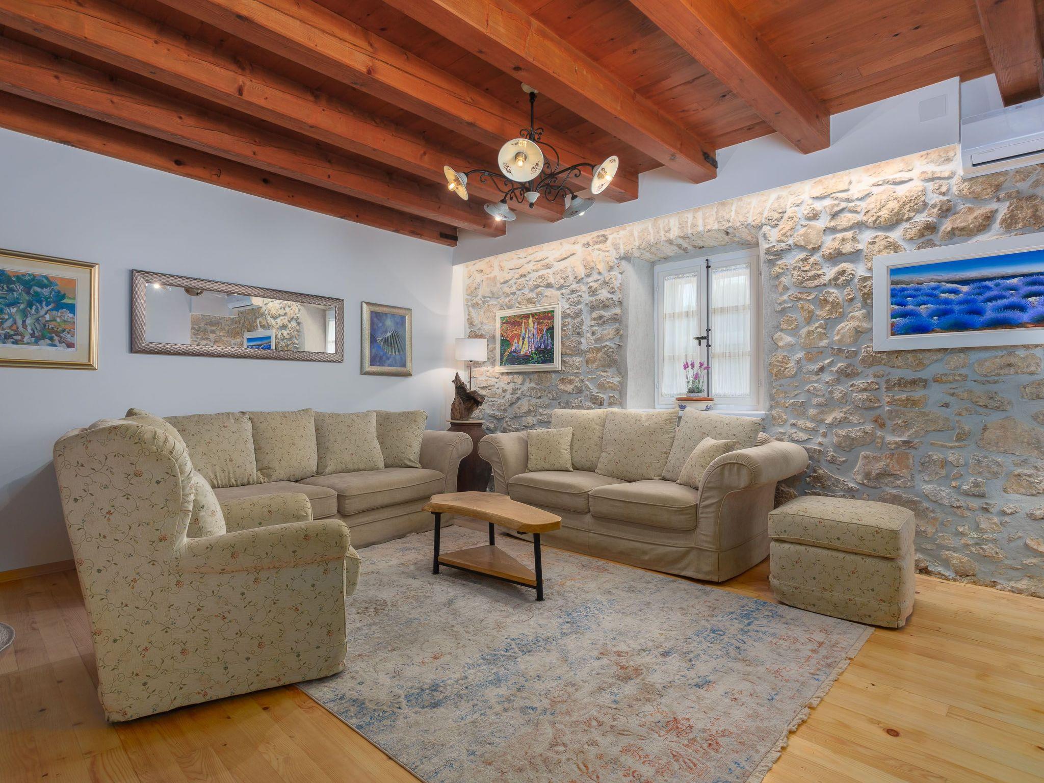 Family House for rent - Villa Tonka is a renovated old stone house for 6 people, with swimming pool and professional outdoor hot tub (whirlpool).This holiday house located in the small village Kremenici, near Malinska, has been renovated in a traditional rustic style.