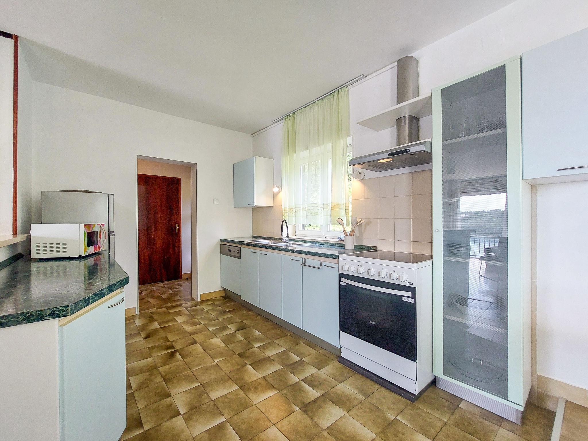 "Marija 2", 4-room apartment 90 m2 on 2nd floor. Open living room 25 m2 with panoramic window with cable TV (flat screen), air conditioning. Exit to the balcony. 1 room with 1 french bed (140 cm, length 200 cm). Exit to the balcony. 1 room with 1 french bed (160 cm, length 200 cm). 1 room with 1 bed (90 cm, length 200 cm). Exit to the balcony. Dining room. Exit to the balcony. Open kitchen (4 hot plates, oven, dishwasher, microwave, freezer, electric coffee machine). Bath/bidet/WC, sep. WC. Heating. Balcony 15 m2, south-west facing position, north-east facing position. Balcony furniture. View of the sea. Facilities: washing machine. Internet (WiFi, free). Please note: maximum 1 pet/ dog allowed. Private entrance.