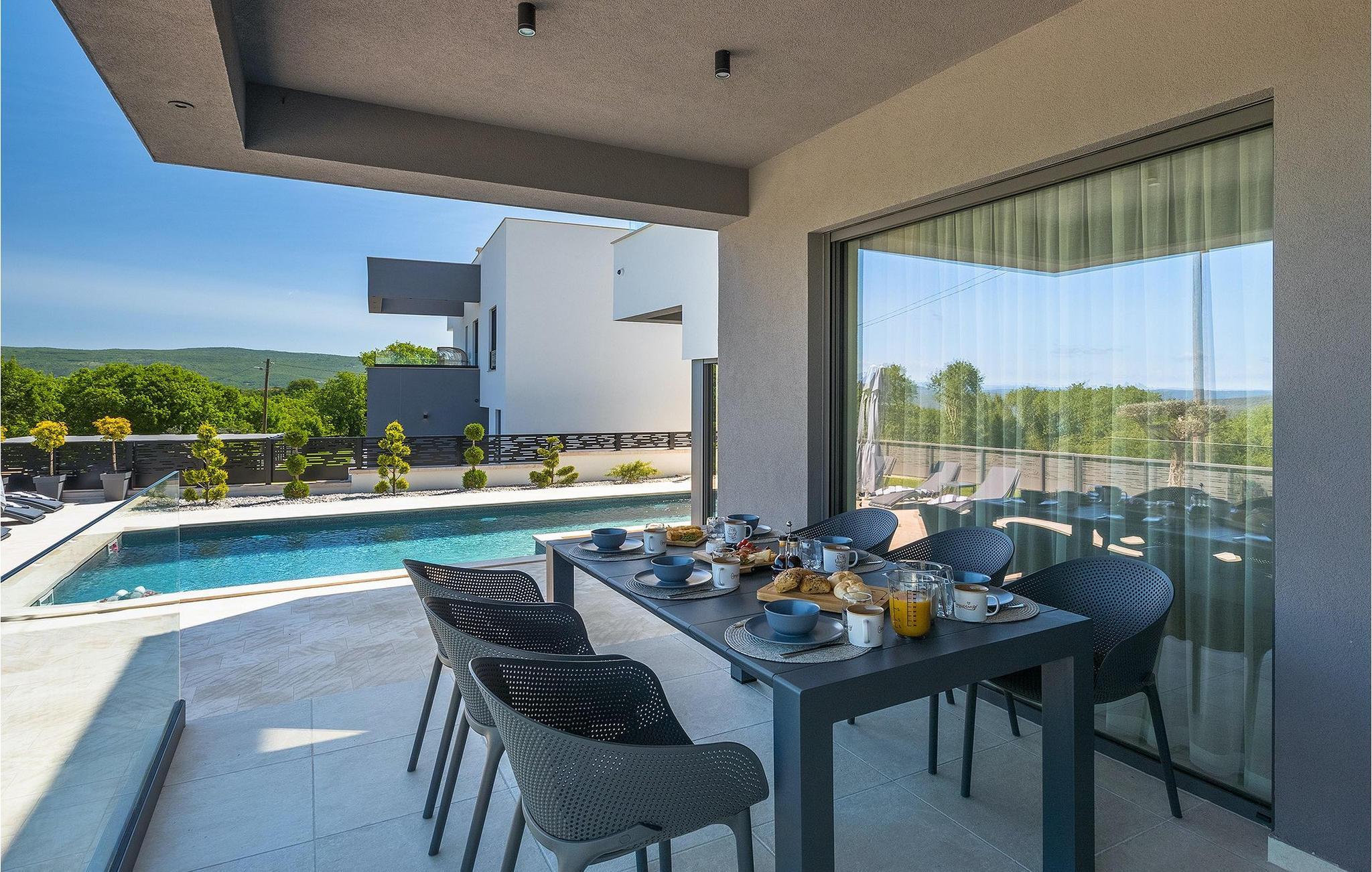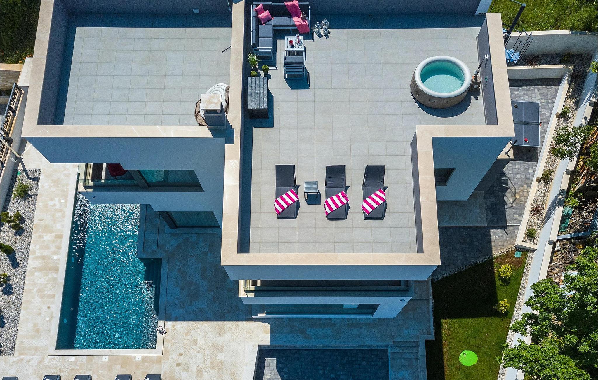 Im Erdgeschoss der Villa befinden sich der offen Wohn- und Essbereich mit Küche und Zugang zum Außenbereich, ein Badezimmer, sowie eine Sauna, in der Sie sich an kühlen Abenden erholen können. Erholung finden die Gäste auf insgesamt 3 klimatisierten Schlafzimmern mit jeweils eigenem Bad. Zwei dieser Schlafzimmer verfügen über eine eigene Terrasse mit traumhafter Aussicht. Können Sie sich vorstellen dort den Tag mit einer Tasse Kaffee zu begrüßen? Doch dies ist nicht alles… Auf dem Dach der Villa befindet sich eine geräumige Terrasse, auf der Sie nicht nur im hauseigenen Whirlpool die Seele baumeln lassen, sondern auch eine atemberaubende Panoramaaussicht genießen können. Ein geräumiger beheizbarer Pool mit Hydromassagefunktion sowie ein attraktiver Außenessbereich mit Außenküche runden die vielseitige Ausstattung ab. Haben wir Sie neugierig gemacht? Erkunden Sie Istrien und erfahren Sie selbst, was es mit dem Namen der Villa auf sich hat…Rakalj ist ein kleines Dorf im östlichen Teil von Istrien, nur eine kurze Autofahrt vom Strand entfernt (5 Minuten). Es ist der perfekte Ausgangspunkt für Tagesausflüge zu den berühmten Städten Pula, Rovinji und Opatija. Rakalj ist ausserdem ein exzellenter Ort um sowohl Erholungsurlaub, als auch Aktivurlaub miteinander zu verbinden. Im nahe gelegenen Hafen ist ein hervorragend ausgestattetes Tauchzentrum, welches es ermöglicht alte versunkene Schiffe zu entdecken, spektakuläre Unterwasserhöhlen, Klippen, den Nervenkitzel des Tauchens bei Nacht, und die prachtvolle Vielfalt an Leben, sowohl für Anfänger wie auch für fortgeschrittene Taucher. Die Ostküste Istriens bietet eine Vielfalt an Stränden und kristallklares Meer. Die unberührte Küste offenbart einladende Höhlen, mit sanften Kieseln, natürliche Klippen, von Wellen umspült, und Zeugen von sanftmütigen