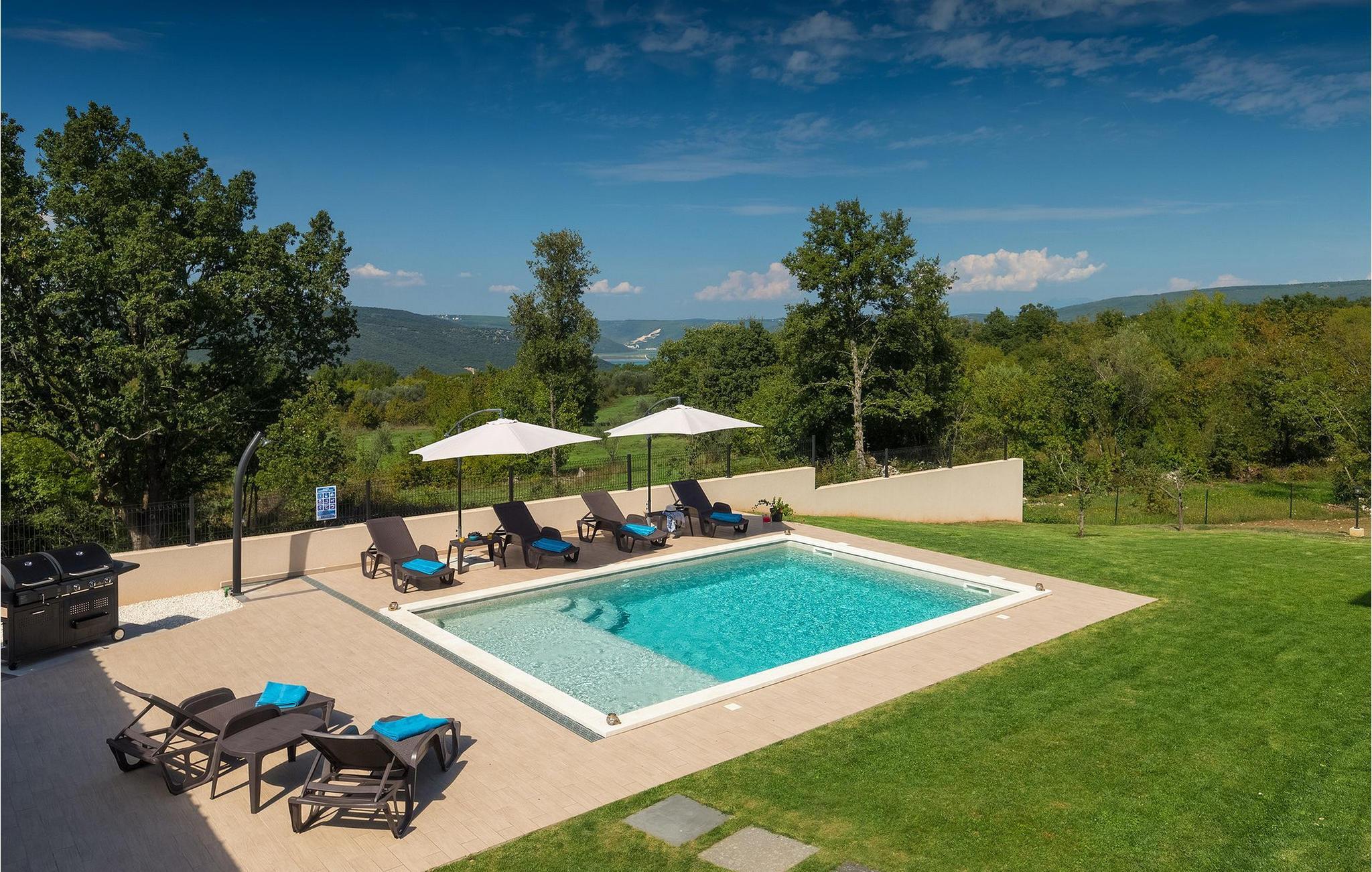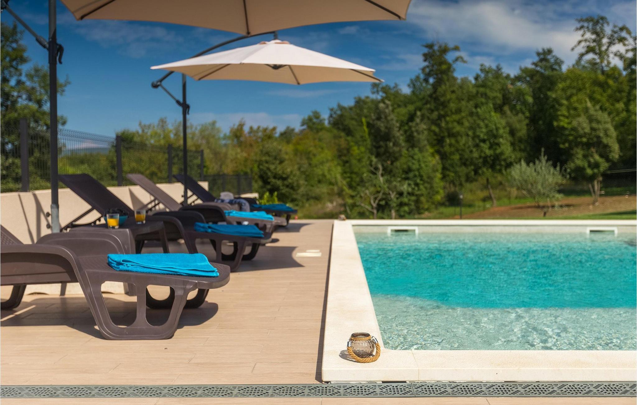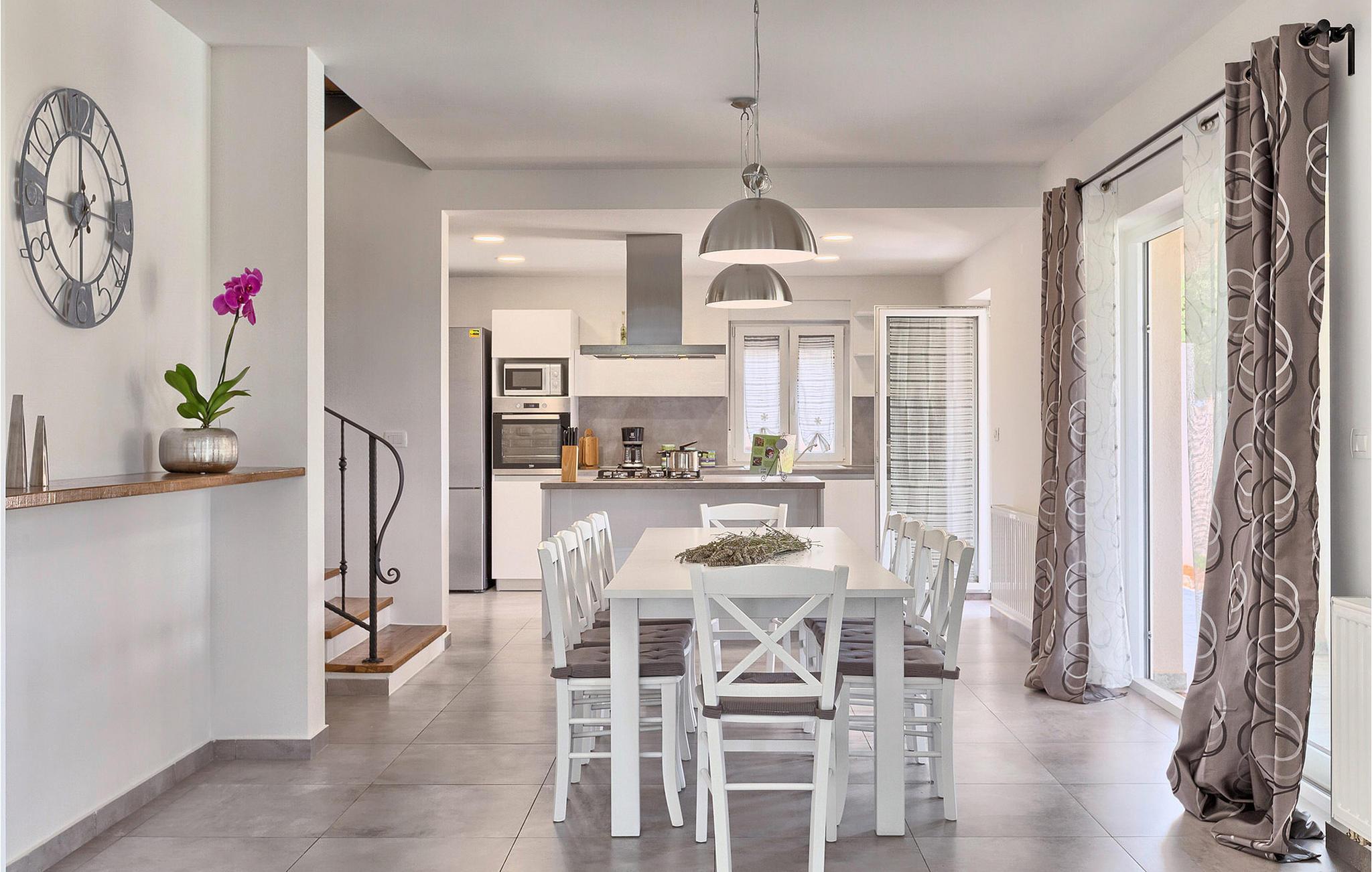 Ruhig gelegen, weit von der Hektik der Stadt und stark befahrenen Straßen, diese schöne Villa ist ideal für einen Familienurlaub. Die Villa befindet sich auf einem großen Grundstück, der von atemberaubender Landschaft umgeben ist. Das geschmackvoll eingerichtetes Erdgeschoß hat direkten Zugang zum Pool und zum Garten, wo Sie die warme istrische Sonne genießen können. Große Steinwände im Erdgeschoß und im Obergeschoß sorgen dafür, dass Villa Noela sehr hell und lichtdurchflutet wirkt und vermitteln endlose Geräumigkeit. Insgesamt 3 elegante Schlafzimmer, jeweils mit einem Doppelbett ausgestattet, sind über den ersten Stock verteilt. Jedes Schlafzimmer hat ein eigenes Badezimmer und einen eigenen Balkon, von dem Sie einen wunderschönen Blick auf die unberührte istrische Landschaft haben.Diese charmante Villa befindet sich an der Ostküste Istriens, in der kleinen Stadt namens Rakalj. Es ist der perfekte Ausgangspunkt für Ausflüge zu den berühmten istrischen Städten Pula, Rovinj und Opatija. Nahe Rakalj, in Krnica finden Sie ein hervorragend ausgestattetes Tauchzentrum für die Anfänger aber auch die fortgeschrittenen Taucher. Hier können Sie alte versunkene Schiffe, spektakuläre Unterwasserhöhlen und Klippen entdecken. Die Villa ist nur eine kurze Autofahrt vom kristallklaren Adria entfernt. Da istria für seine Gastronomie bekannt ist, verpassen Sie nicht, die lokalen istrischen und mediterranen Spezialitäten zu probieren und zu genießen: Trüffel, Olivenöl, istrischen Ochsen Boškarin, Prosciutto, Fisch...