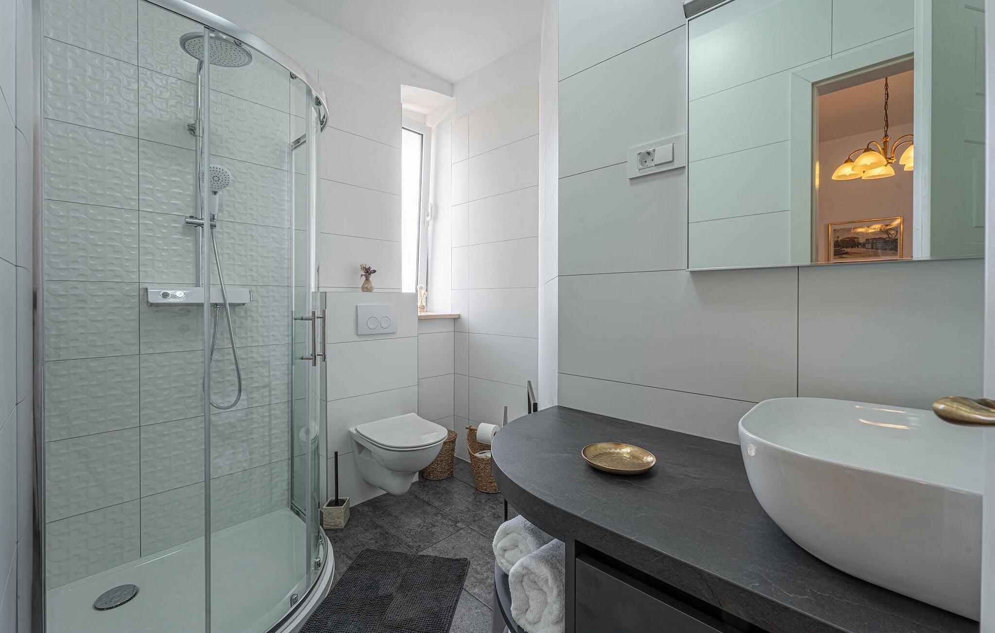 Badezimmer (nr. 2) - WC. Warmes und kaltes Wasser. Dusche