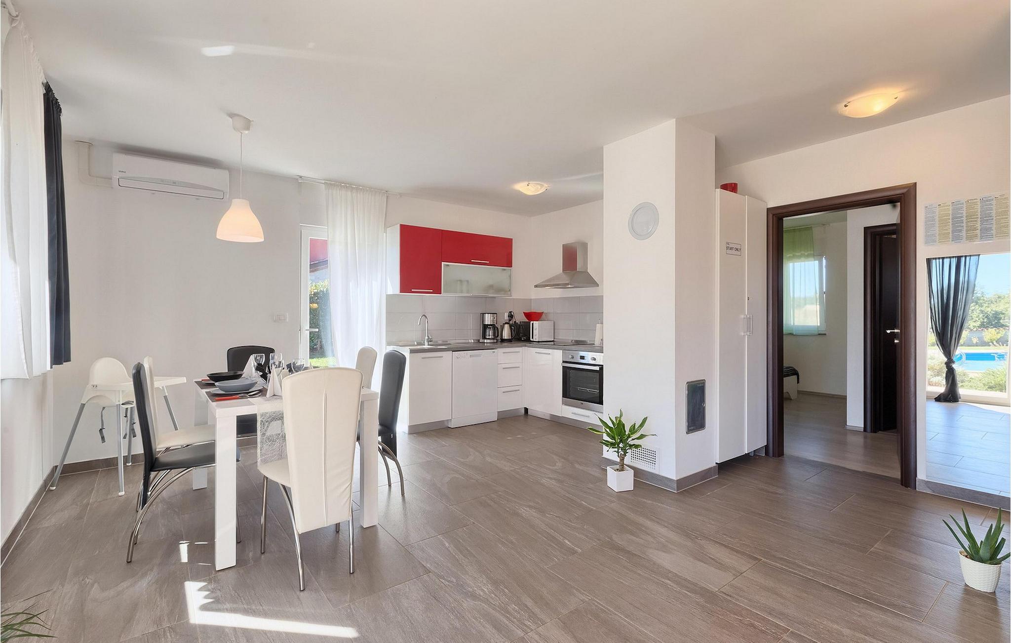 Diese wunderschöne Villa Rebici befindet sich inmitten einer malerischen, istrischen ländlichen Region, umgeben von Hügeln, Olivenhainen und Bauernhöfen. Sie ist ideal für einen erholsamen Familienurlaub. Die Villa Rebici bietet Platz für bis zu 7 Personen. Draußen gibt es ein Pool, der nur Ihnen und Ihrer Familie zur Verfügung steht und auch über 4 Sonnenliegen verfügt. Diese schöne Villa besteht aus 3 Schlafzimmern und 3 Bädern die sich im Erdgeschoss befinden, von denen 2 Zimmer über ein eigenes Bad verfügen. Die voll ausgestattete und moderne Küche bietet alles, was Sie für die Zubereitung köstlicher Mahlzeiten benötigen. Ein Wohnzimmer und ein Essbereich steht Ihnen auch zur Verfügung. Wenn Sie sich erfrischen und in der wunderschönen Adria schwimmen möchten, ist der Strand nur 1,5km von der Villa entfernt. Sie werden sich in dieser Villa wie zu Hause fühlen. Verbringen Sie Ihre Tage in der Sonne am Pool, während die Kinder Spaß auf dem Spielplatz der Villa haben.Diese wunderschöne Villa liegt inmitten der herrlichen Hügellandschaft Istriens und bietet einen guten Ausgangspunkt, um diese unberührte Region zu erkunden, nur einen Steinwurf jedoch vom smaragdblauen Meer und einsamen Kieselstränden der Adria entfernt. Unweit von der Villa liegt das pittoreske mittelalterliche Städtchen Barban, berühmt für seine alljährlichen traditionellen Ritterspiele "Lauf auf den Ring". Eine sehr gute Pferderanch mit Trekking und Reiten in ihrem Angebot befindet sich im naheliegenden Dorf Manjadvorci. Erlebnishungrige haben zu Ihrer Verfügung einen großen Adrenalinpark nur 7 km von der Villa, ein Tauchzentrum in der schönen, kleinen Bucht von Krnica (10 Fahrminuten entfernt), sowie zahlreiche verschiedene Wander- und Radwege. Eine große Auswahl an Gourmetgerichten, mit köstlichen lokalen Erzeugnissen zubereitet, bedeutet, dass Sie nie weit gehen werden müssen, um ein hervorragendes Essen zu finden. Sie haben auch die Möglichkeit Ihre Lebensmitteln direkt von den lokalen Herstellern zu kaufen. Um die letzte Zutat zu dieser reichen Vielfalt an Aktivitäten hinzuzufügen, liegen die historische Stadt Pula und die lebendigen touristischen Hot Spots nur wenige Fahrminuten entfernt, sowie die Fähren für eine Tour um die atemberaubend schönen umliegenden Inseln.