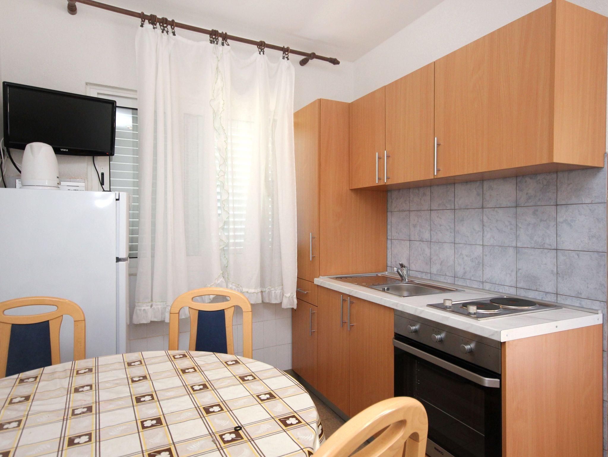 Ferienwohnung bietet Platz für 4 Gäste. Die Betten sind in Schlafzimmern, die es 1 gibt, innerhalb einer Gesamtfläche von 29m2, angeordnet. Die Gäste haben eine eigene Terrasse zur Verfügung, auf der sie in warmen Sommernächten genießen können. Das Apartment bietet Meerblick. Es ist erlaubt, Speisen auf dem Gemeinschafts-Grill vorzubereiten. Während ihres Aufenthalts können Gäste das gemeinsam zur Nutzung stehende Schwimmbad benutzen. In der Unterkunftseinheit besteht die Möglichkeit des Mitbringens von Haustieren gegen Aufpreis. IM PREIS INBEGRIFFEN: Kurtaxe, Endreinigung, Klimatisierung, Pool, Parkplatz, Internet, Bootsanlegeplatz. VERBINDLICHE ZUSÄTZLICHE KOSTEN: Aufzahlung für Kurzaufenthalte (prozentualer Zuschlag pro Nächtigungsanzahl: 30% - 1, 20% - 2, 10% - 3). UNVERBINDLICHE ZUSÄTZLICHE KOSTEN: Wäschewaschen (3,00 € Waschen), Haustiere (5,00 € pro Nacht), Fahrrad (7,00 € täglich (pro Stück)), Zusatzbett (5,00 € pro Nacht). Die Verfügbarkeit zusätzlicher Dienstleistungen in Ihrem reservierten Termin und die Preise derselben (falls nicht aufgeführt) müssen im Voraus überprüft werden. Zusätzliche Dienstleistungen die in der Zahlungsaufforderung nicht aufgeführt sind werden direkt beim Vermieter bezahlt, angenommen der Gast nutzt auch diese. Ermäßigung auf den Grundpreis: Gratistag 14=13 (bei einem Aufenthalt von 14 Tagen oder mehr erhalten Sie einen Gratistag für den Aufenthalt bis 31.12.26).
