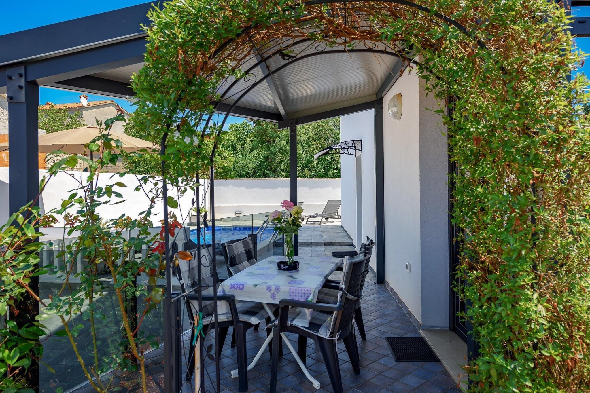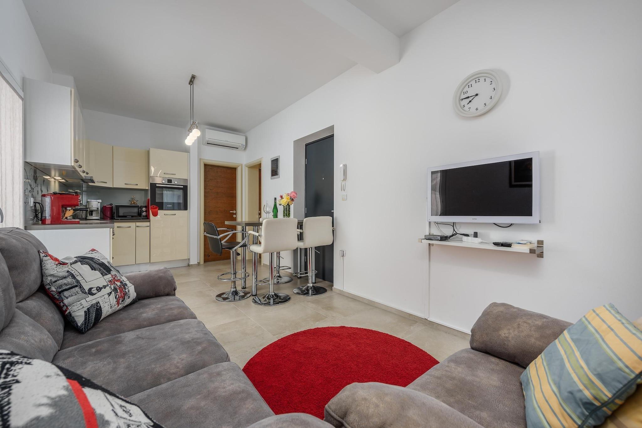 This apartment, along with its cozy and well-appointed layout, offers a comfortable two-bedroom space that can accommodate up to four guests and includes essential amenities such as air-conditioning, Wi-Fi, and a washing machine. The apartment features a private garden, outdoor furniture, and a fenced plot, with a terrace for outdoor relaxation. Guests can also enjoy a private, heated swimming pool, perfect for year-round use. Conveniently situated in the suburb of Kukci, the apartment is within easy reach of essential services and local attractions. A supermarket is located just 300 meters away, making grocery shopping hassle-free, while the "Kukci" restaurant is 900 meters from the property. Guests can visit the beautiful "Spadici" and "Marea Beach" (4 km) for a day by the sea or enjoy the nearby "Zelena Laguna" water park (5 km) for family fun. The historic city of Porec is also only 4 km away, where guests can explore shops, restaurants, and cultural sites. For nature enthusiasts, the "Mirna" river (10 km) offers scenic views, while Pula Airport and train station (60 km) ensure easy access for travelers. The apartment’s open-plan kitchen is fully equipped with modern electric appliances, including a refrigerator, microwave, oven, freezer, dishwasher, coffee machine, and kettle. It is also stocked with all necessary kitchen utensils, dishes, and cutlery, allowing guests to prepare their meals comfortably. For outdoor dining, the apartment features a barbecue, perfect for al fresco meals. The private, heated swimming pool adds an extra touch of luxury.
