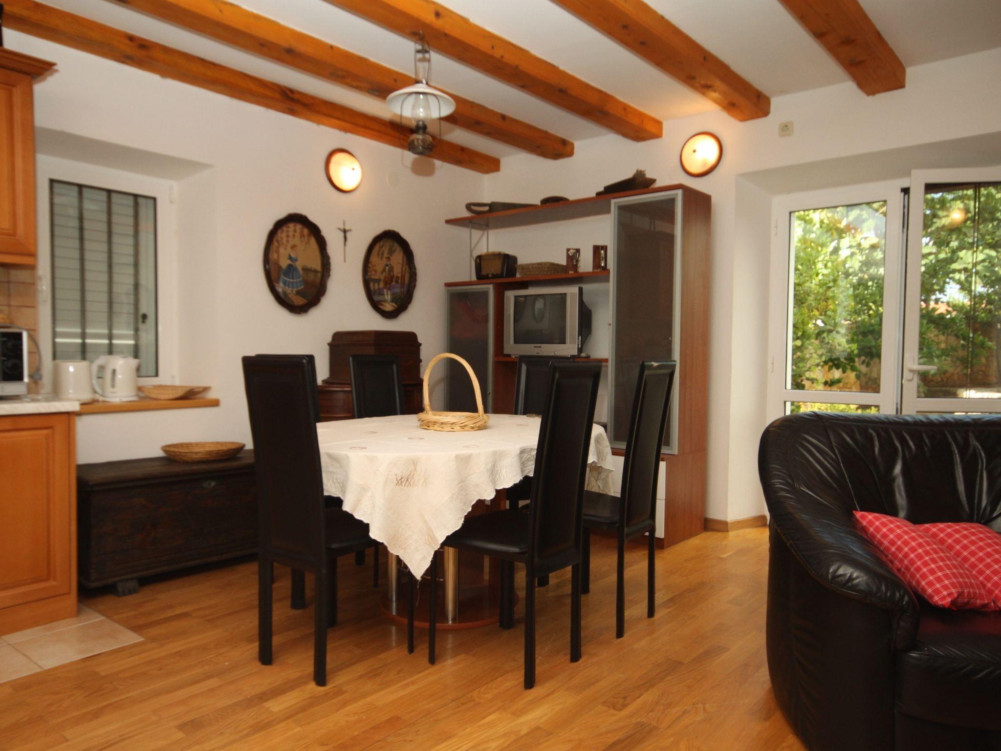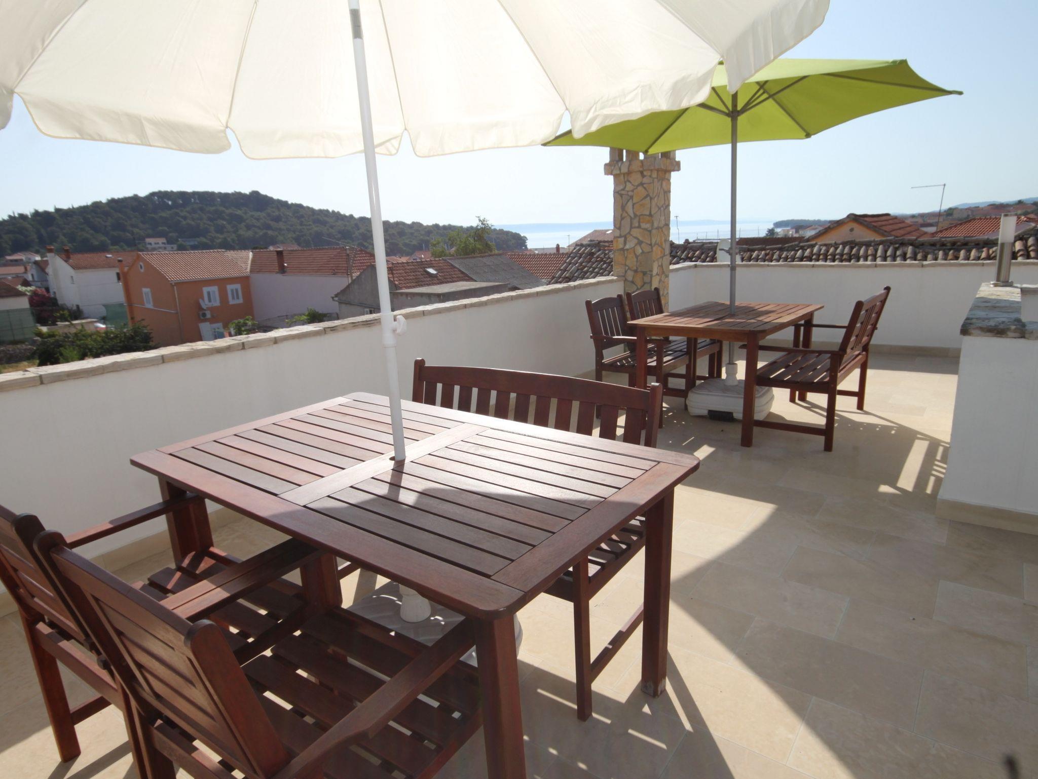 Haus bietet Platz für 9 Gäste. Die Betten sind in Schlafzimmern, die es 4 gibt, innerhalb einer Gesamtfläche von 106m2, angeordnet. Die Gäste haben eine eigene Terrasse zur Verfügung, auf der sie in warmen Sommernächten genießen können. Das Haus bietet Meerblick. Für vollen Genuss und Entspannung gibt es einen privaten Grill für Gäste dieser Unterkunft. IM PREIS INBEGRIFFEN: Kurtaxe, Endreinigung, Klimatisierung, Internet, Kinderbett, Bügeleisen, Bügelbrett, Föhn, Liegestühle. VERBINDLICHE ZUSÄTZLICHE KOSTEN: Aufzahlung für Kurzaufenthalte (prozentualer Zuschlag pro Nächtigungsanzahl: 30% - 1, 20% - 2, 10% - 3). Die Verfügbarkeit zusätzlicher Dienstleistungen in Ihrem reservierten Termin und die Preise derselben (falls nicht aufgeführt) müssen im Voraus überprüft werden. Zusätzliche Dienstleistungen die in der Zahlungsaufforderung nicht aufgeführt sind werden direkt beim Vermieter bezahlt, angenommen der Gast nutzt auch diese. Ermäßigung auf den Grundpreis: Gratistag 21=19 (bei einem Aufenthalt von 21 Tagen oder mehr erhalten Sie 2 Gratistage für den Aufenthalt bis 31.12.26).