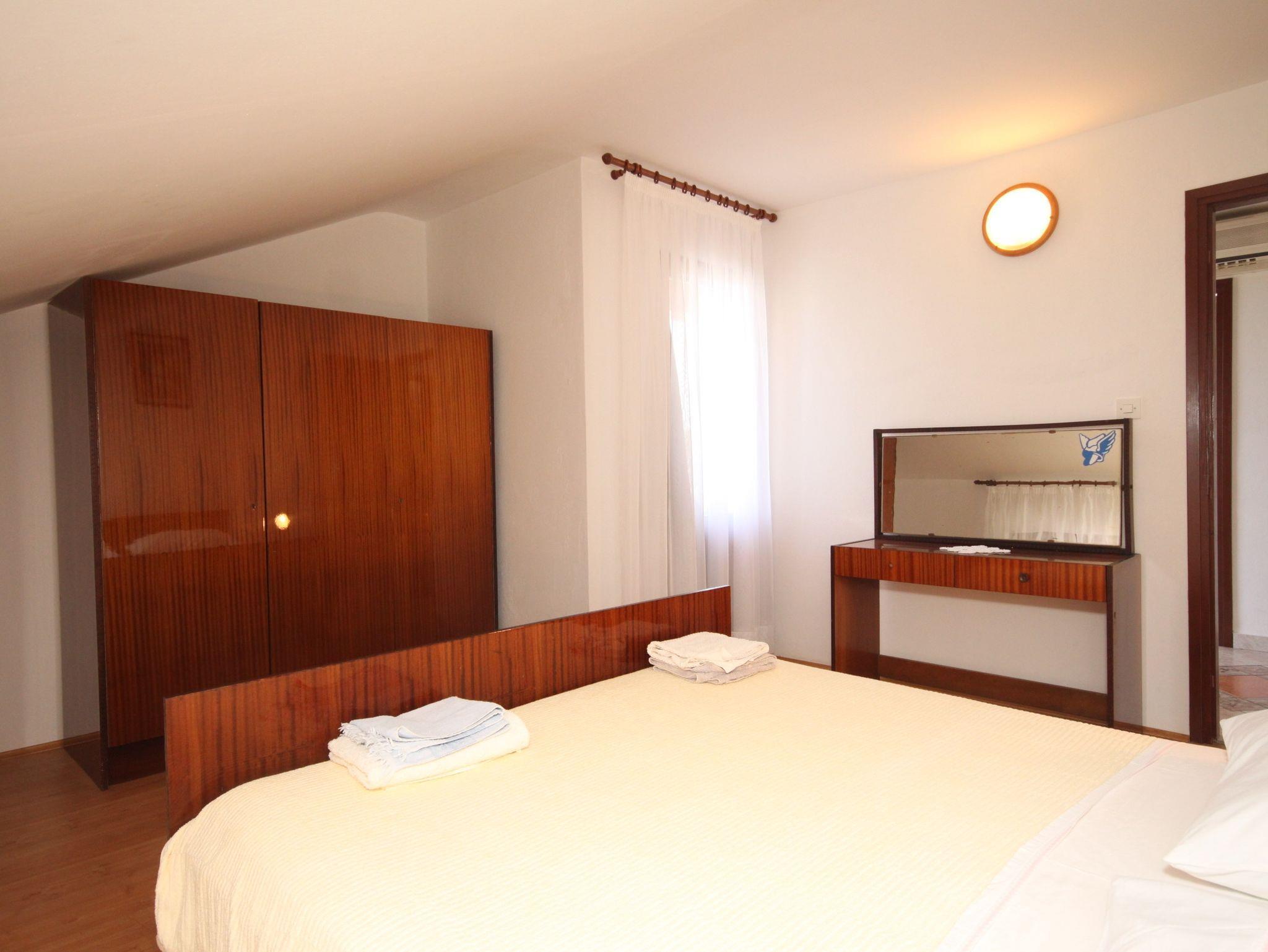 Ferienwohnung bietet Platz für 5 Gäste. Die Betten sind in Schlafzimmern, die es 2 gibt, und in Esszimmer, innerhalb einer Gesamtfläche von 72m2, angeordnet. Die Gäste haben eine eigene Terrasse zur Verfügung, auf der sie in warmen Sommernächten genießen können. Das Apartment bietet Meerblick. Es ist erlaubt, Speisen auf dem Gemeinschafts-Grill vorzubereiten. IM PREIS INBEGRIFFEN: Kurtaxe, Endreinigung, Klimatisierung, Parkplatz, Internet, Föhn. VERBINDLICHE ZUSÄTZLICHE KOSTEN: Aufzahlung für Kurzaufenthalte (prozentualer Zuschlag pro Nächtigungsanzahl: 30% - 1, 20% - 2, 10% - 3). UNVERBINDLICHE ZUSÄTZLICHE KOSTEN: Wäschewaschen (10,00 € Waschen), Bootsanlegeplatz (10,00 € pro Nacht), Zusatzbett (10,00 € pro Nacht). Die Verfügbarkeit zusätzlicher Dienstleistungen in Ihrem reservierten Termin und die Preise derselben (falls nicht aufgeführt) müssen im Voraus überprüft werden. Zusätzliche Dienstleistungen die in der Zahlungsaufforderung nicht aufgeführt sind werden direkt beim Vermieter bezahlt, angenommen der Gast nutzt auch diese.