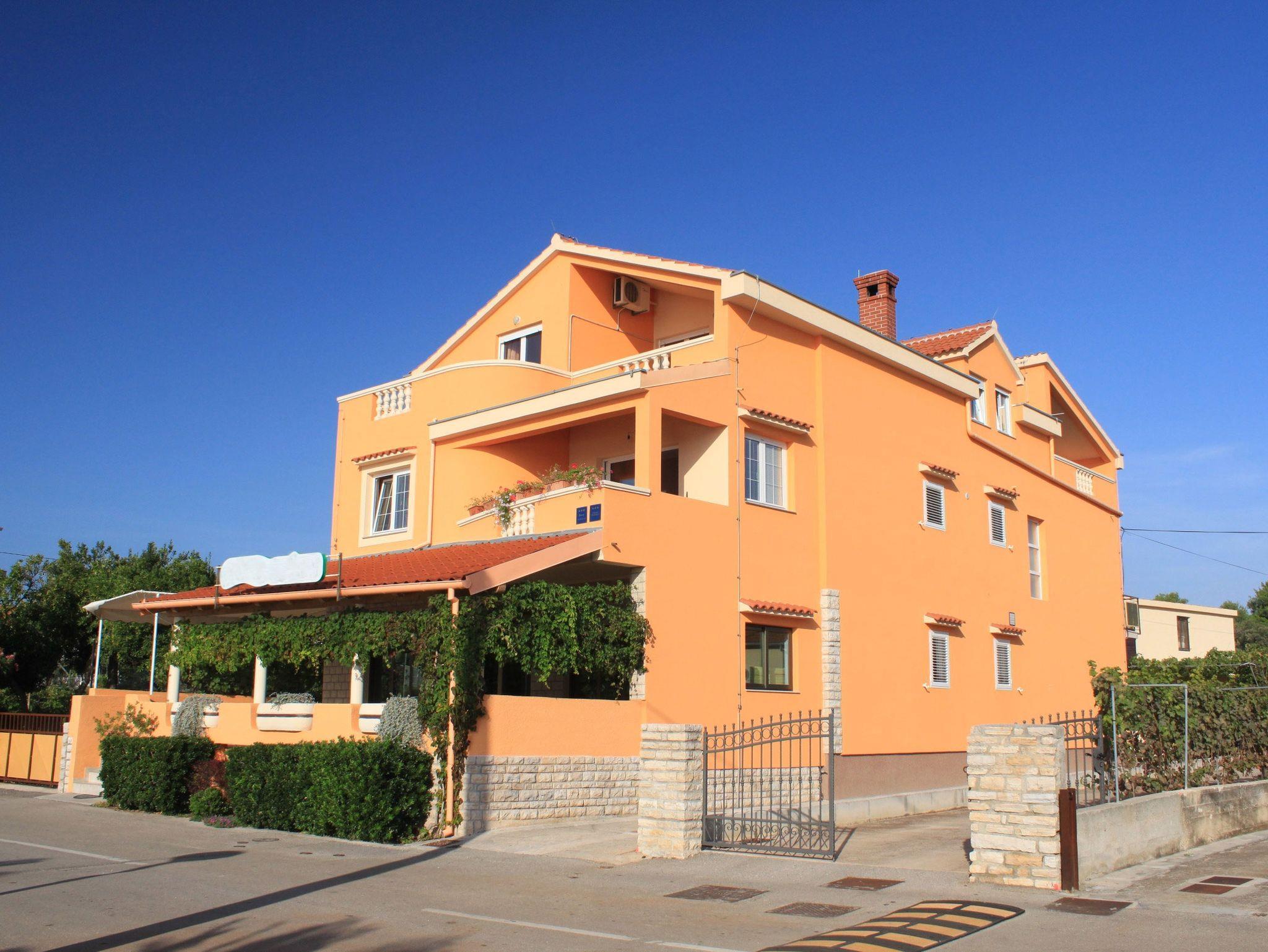 Ferienwohnung bietet Platz für 4 Gäste. Die Betten sind in Schlafzimmern, die es 1 gibt, und in Esszimmer, innerhalb einer Gesamtfläche von 37m2, angeordnet. Die Gäste haben eine eigene Terrasse zur Verfügung, auf der sie in warmen Sommernächten genießen können. Das Apartment bietet Meerblick. Es ist erlaubt, Speisen auf dem Gemeinschafts-Grill vorzubereiten. IM PREIS INBEGRIFFEN: Kurtaxe, Endreinigung, Klimatisierung, Parkplatz, Internet, tragbarer Grill. VERBINDLICHE ZUSÄTZLICHE KOSTEN: Aufzahlung für Kurzaufenthalte (prozentualer Zuschlag pro Nächtigungsanzahl: 30% - 1, 20% - 2, 10% - 3). UNVERBINDLICHE ZUSÄTZLICHE KOSTEN: Zusatzbett (7,00 € pro Nacht). Die Verfügbarkeit zusätzlicher Dienstleistungen in Ihrem reservierten Termin und die Preise derselben (falls nicht aufgeführt) müssen im Voraus überprüft werden. Zusätzliche Dienstleistungen die in der Zahlungsaufforderung nicht aufgeführt sind werden direkt beim Vermieter bezahlt, angenommen der Gast nutzt auch diese. Ermäßigung auf den Grundpreis: Gratistag 14=13 (bei einem Aufenthalt von 14 Tagen oder mehr erhalten Sie einen Gratistag für den Aufenthalt bis 31.12.26).