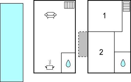 Badezimmer 5m2 (nr. 1) - WC. Warmes und kaltes Wasser. Dusche