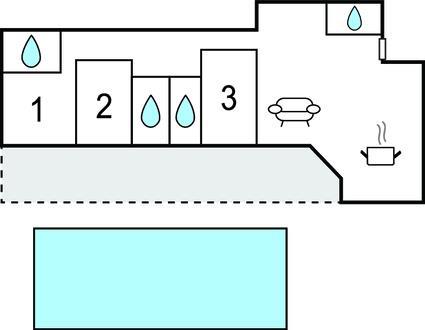 Badezimmer 5m2 (nr. 1) - WC. Warmes und kaltes Wasser. Dusche