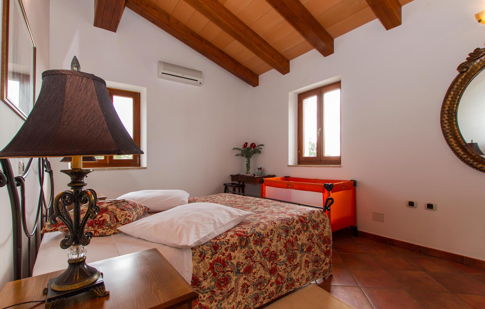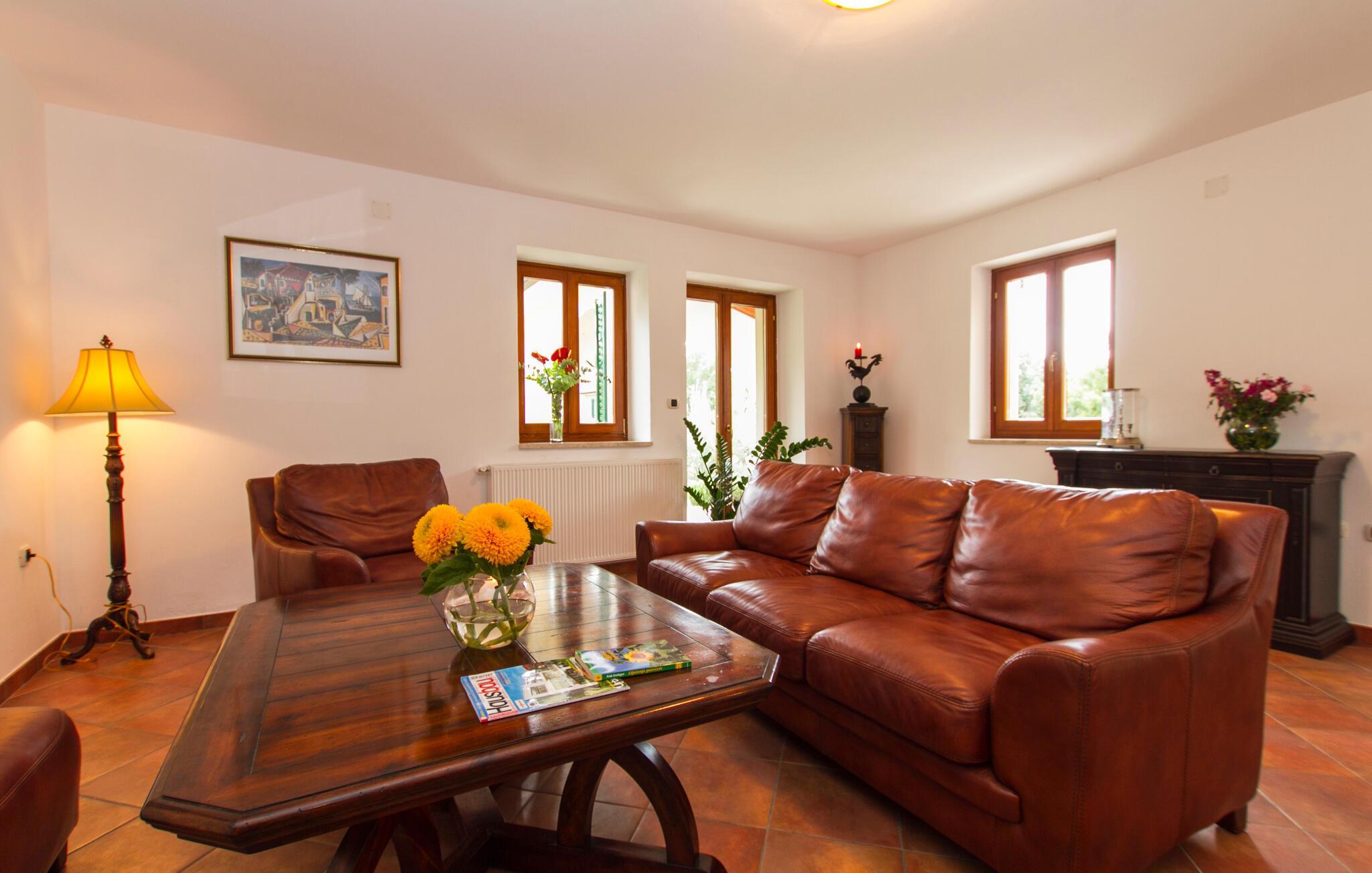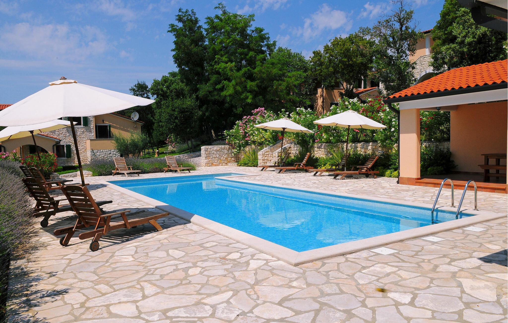Verbringen Sie erholsame Urlaubstage in diesem stilvollen Steinhaus mit Gemeinschaftspool und Blick ins Grüne.