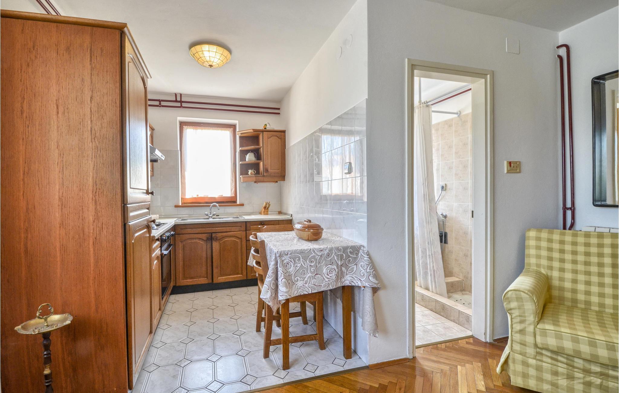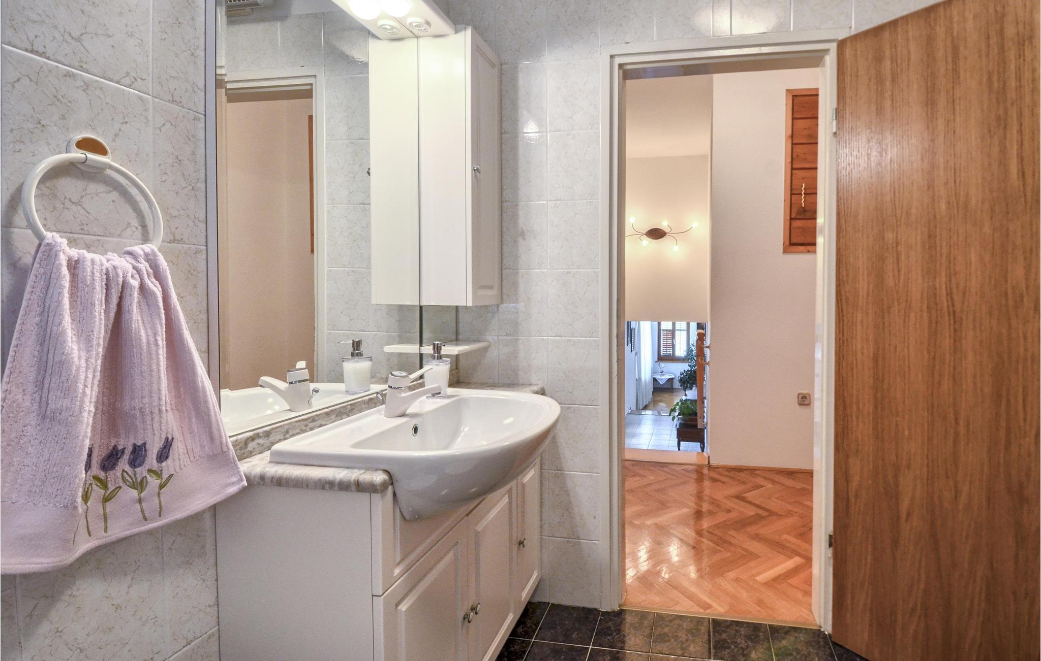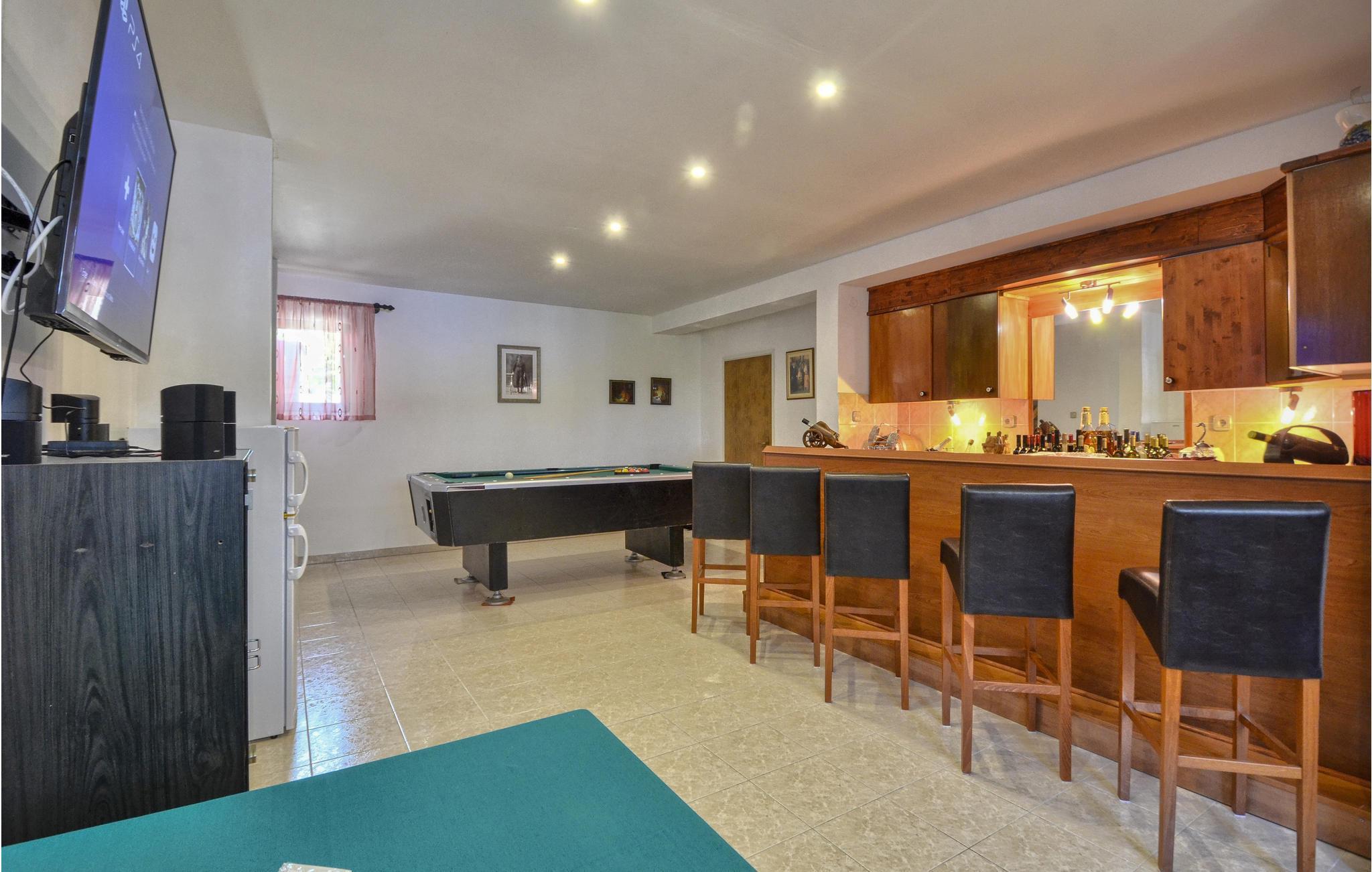 Dieses schöne und komfortable Ferienhaus mit eigenem Pool befindet sich in der kleinen Ortschaft Breg Ivanovci in der Nähe von Labin. Das im traditionellen Stil eingerichtete Ferienhaus bietet Ihnen einen angenehmen Aufenthalt. Im 1. Stock ist die Hauptküche mit Essbereich und Wohnzimmer, während sich die Schlafzimmer und ein Bad im 2. Stock befinden. Das Erdgeschoß besteht aus einer kleineren Küche und Wohnraum, von wo Sie Zugang in den Außenbereich haben. Unterhaltung gibt es im Freizeitraum mit Billard, der im Souterrain untergebracht ist. Erfrischung und Entspannung für die Sommermonate finden Sie im Pool. Besuchen Sie auch die herrlichen Kieselstrände in Rabac, die Altstadt von Labin und genießen das dort angebotene gastronomische Angebot.