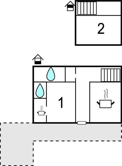 Badezimmer 3m2 (nr. 1) - WC. Warmes und kaltes Wasser. Dusche