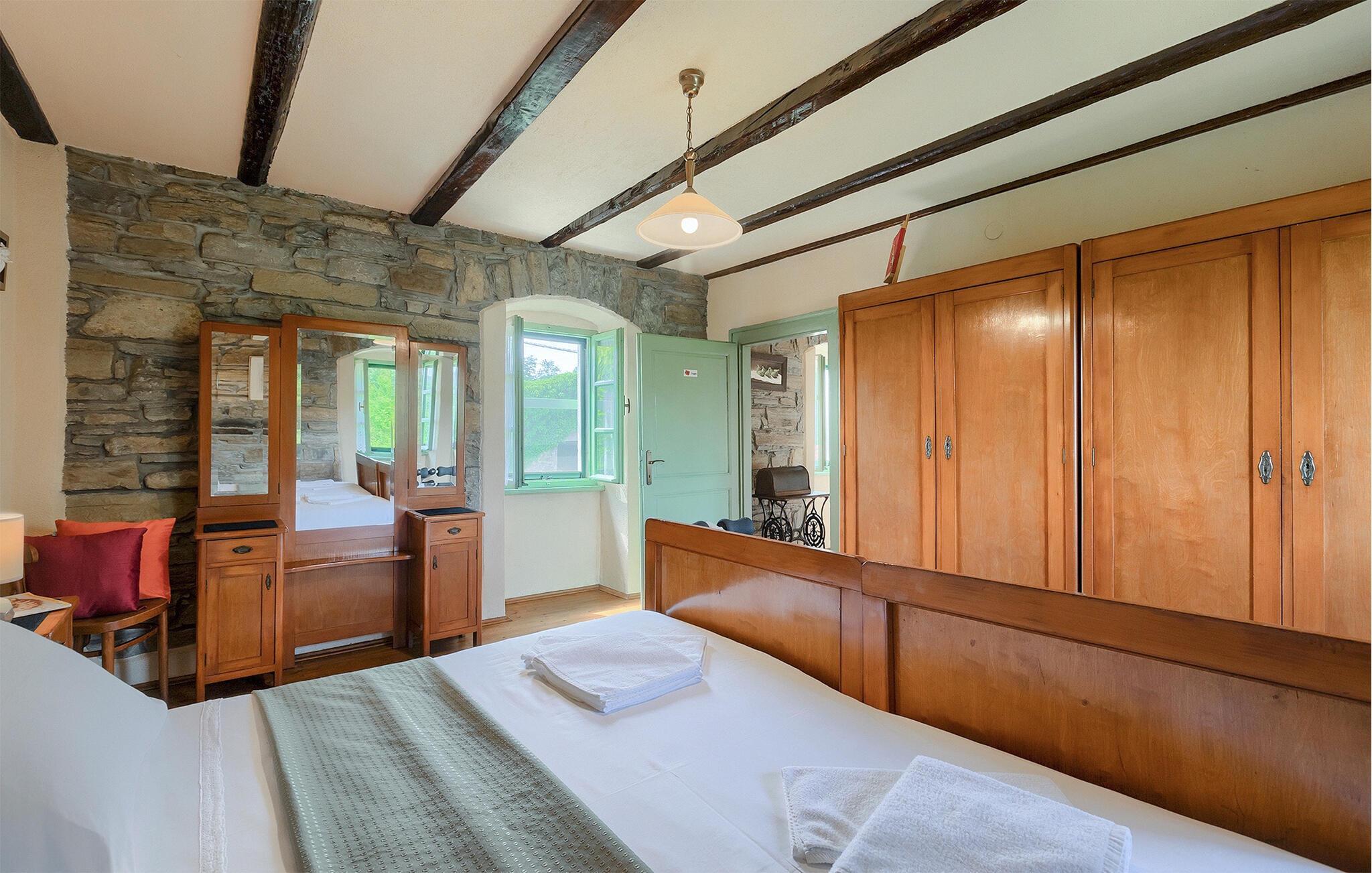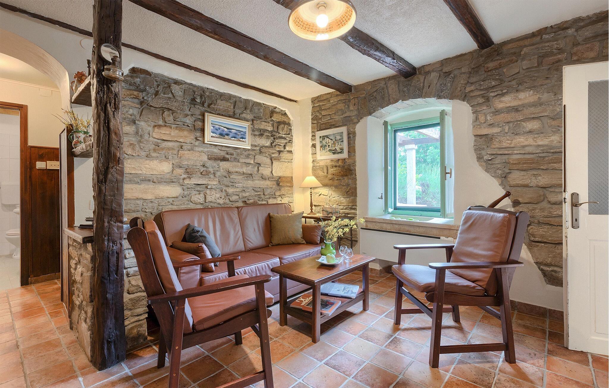 Erleben Sie einen angenehmen Aufenthalt in diesem traditionellen und ländlichen Ferienhaus mit Swimmingpool. Genießen Sie das schöne Flair der dörflichen Umgebung. Sie haben einen Wohnbereich im Erdgeschoss und Schlafzimmer im ersten Stock. Neben dem Pool gibt es ein Annex mit Badezimmer, Küche und einen schön eingerichteten Grillplatz. Das Haus hat ein Eco Domus Zertifikat und eignet sich ideal für das Leben im Freien und seine Umgebung für einen aktiven Urlaub in der Natur.Die große, überdachte Terrasse bietet Ihnen einen herrlichen Ausblick auf das Ucka Gebirge, Felder und Hügel sowie auf den Garten mit Pool. Genießen Sie im Schatten köstliche Spezialitäten vom Grill mit einem edlen Tropfen Wein der lokalen Weinbauern. Aktivurlauber können wandern und Rad fahren sowie mit Paragliders segeln. Neben dem Pool befindet sich ein zusätzliches Badezimmer.