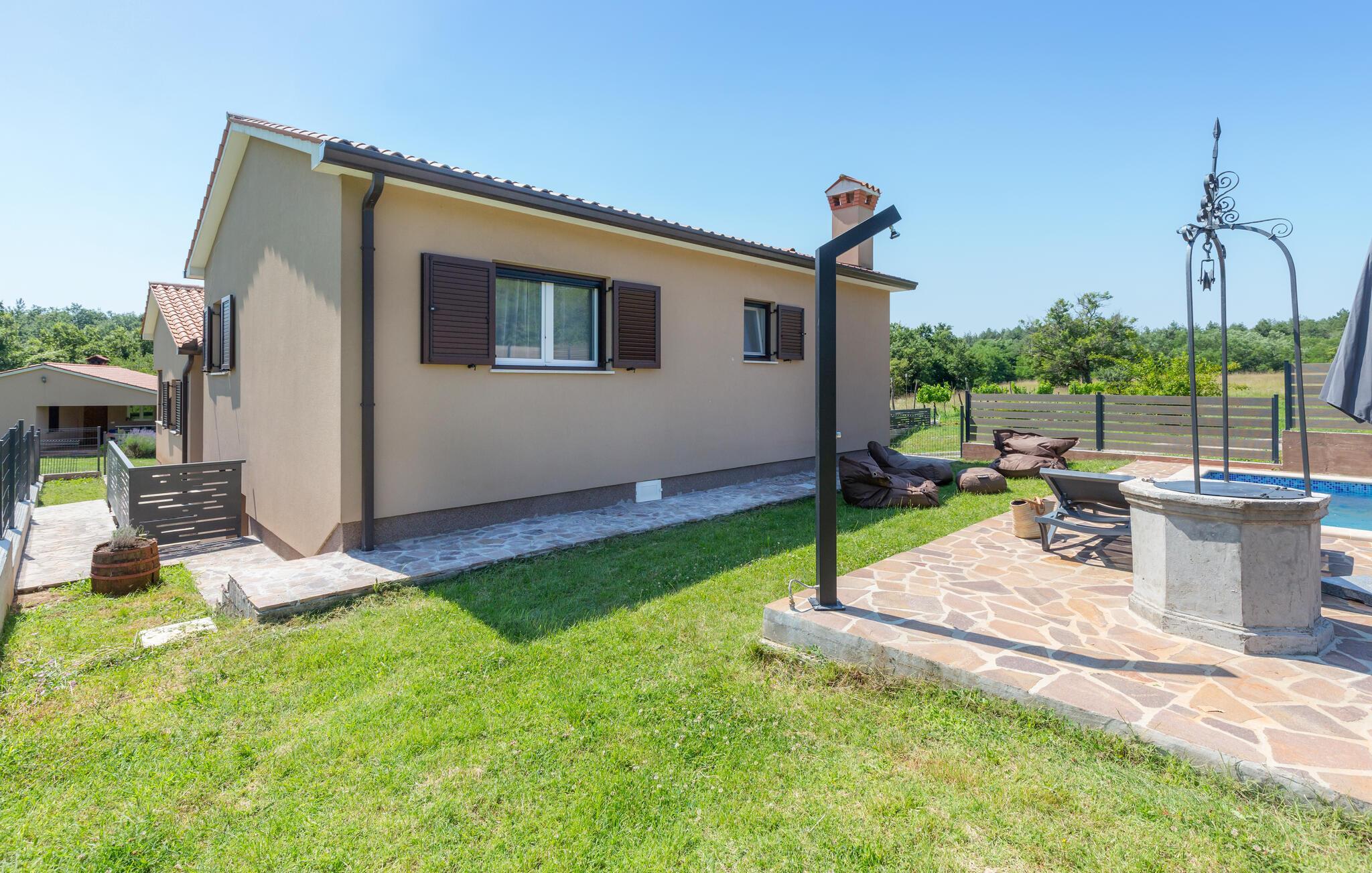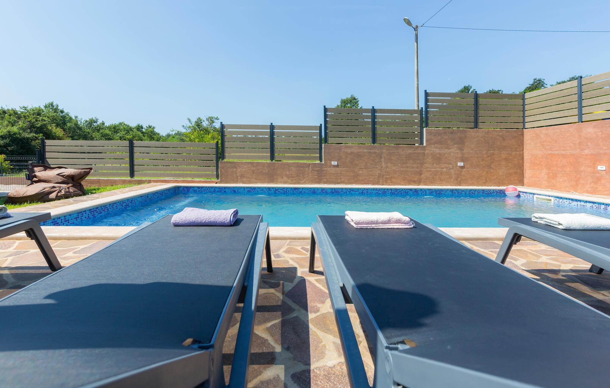 Entspannen Sie sich in grüner und ruhiger Lage in diesem schönen Ferienhaus mit Swimmingpool.