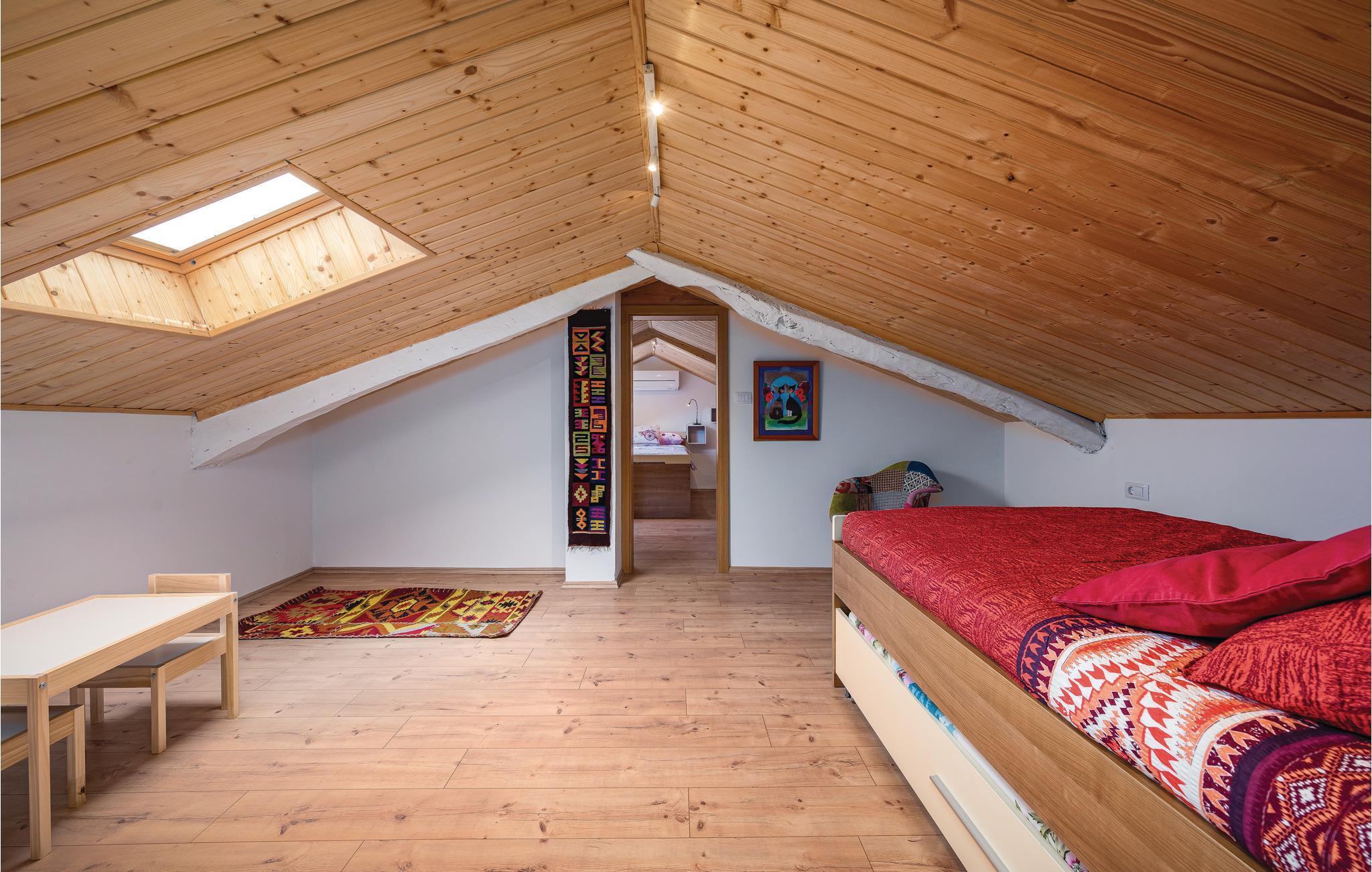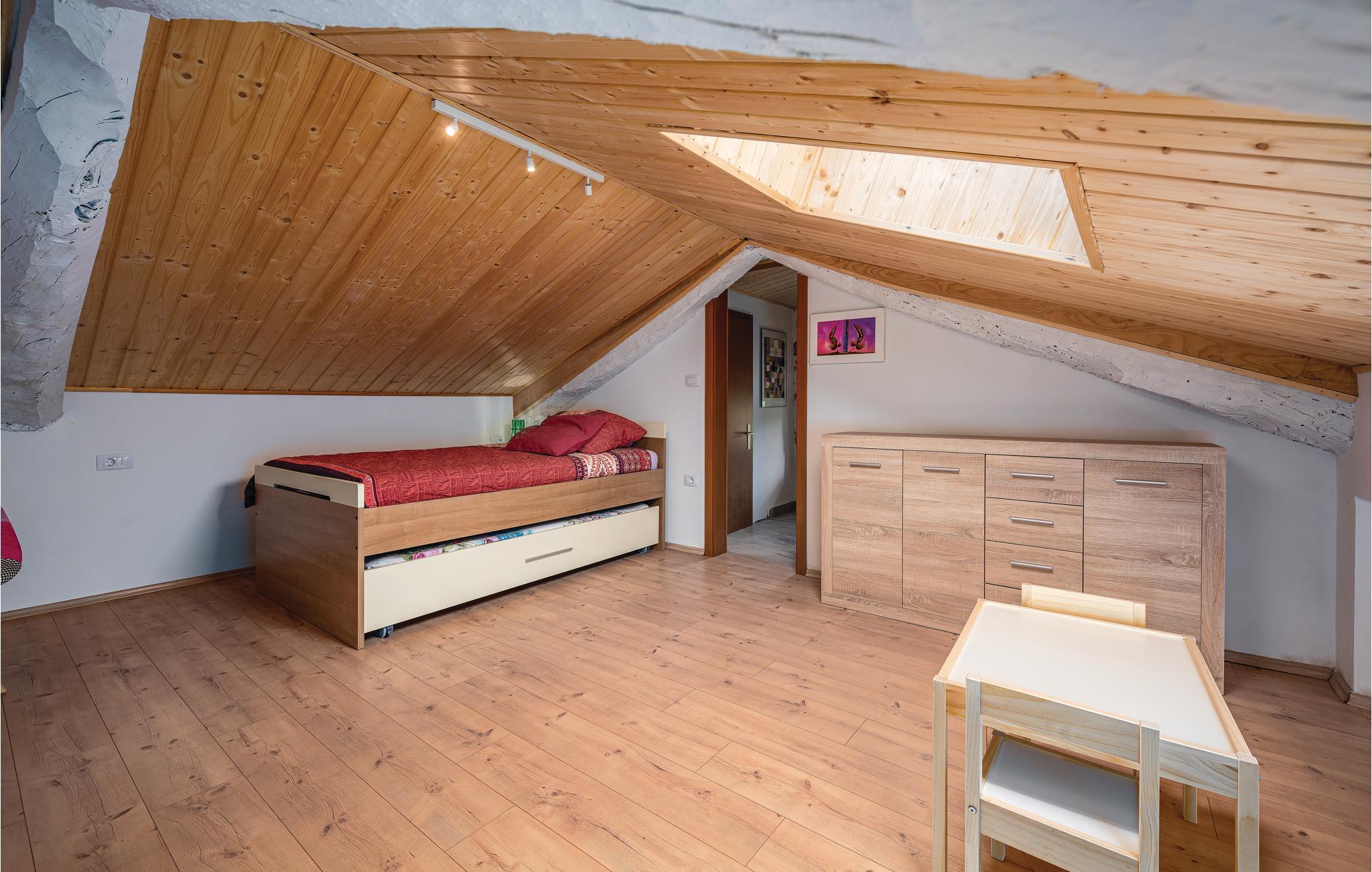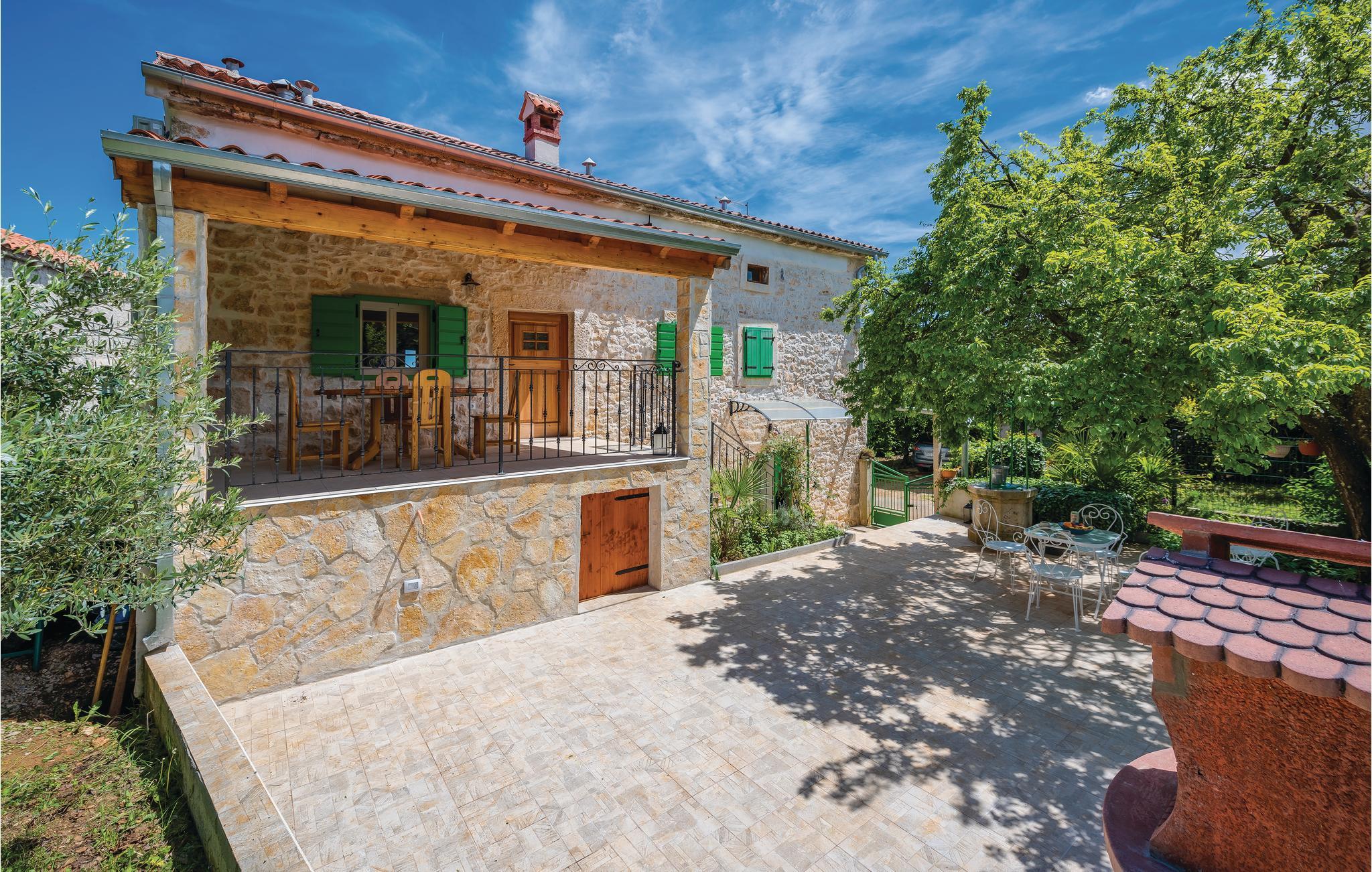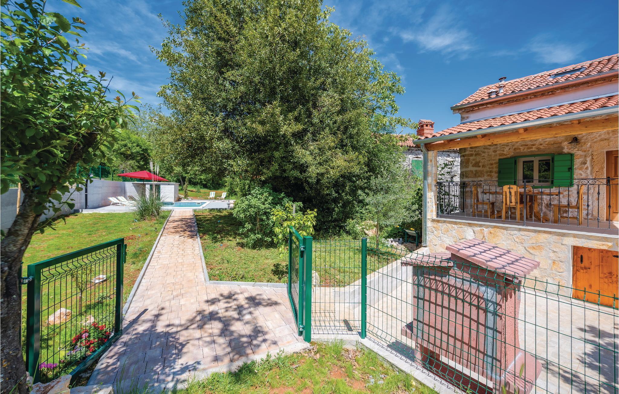 Verbringen Sie Ihren Urlaub in diesem schönen authentischen Steinhaus mit Pool, in einem kleinen istrischen Dorf nahe der Stadt Labin. Die gemütliche Wohnatmosphäre entsteht durch die Beibehaltung der traditionellen Elemente. Der Innenbereich besteht aus zwei Wohneinheiten, die über Außentreppen zugänglich sind. Im Erdgeschoss liegt ein charmantes Studio-Apartment, während sich durch das Ober- und Dachgeschoss ein Wohnzimmer mit Küche, drei Schlafzimmer und ein Badezimmer erstrecken. Eine Wendeltreppe führt zum Dachgeschoss mit einer minimalen Deckenhöhe von ca. 110 cm, dort gibt es auch eine weitere Toilette. Das Schlafzimmer Nr. 2 ist ein Durchgangszimmer zum Schlafzimmer Nr. 3. An heißen Sommertagen erfrischen Sie sich im Pool und entspannen mit guter Lektüre auf der großen Terrasse oder bereiten Grillmahlzeiten zu. Besuchen Sie die Altstadt von Labin und in der Stadt Rabac erwarten Sie die schönsten Strände Istriens.