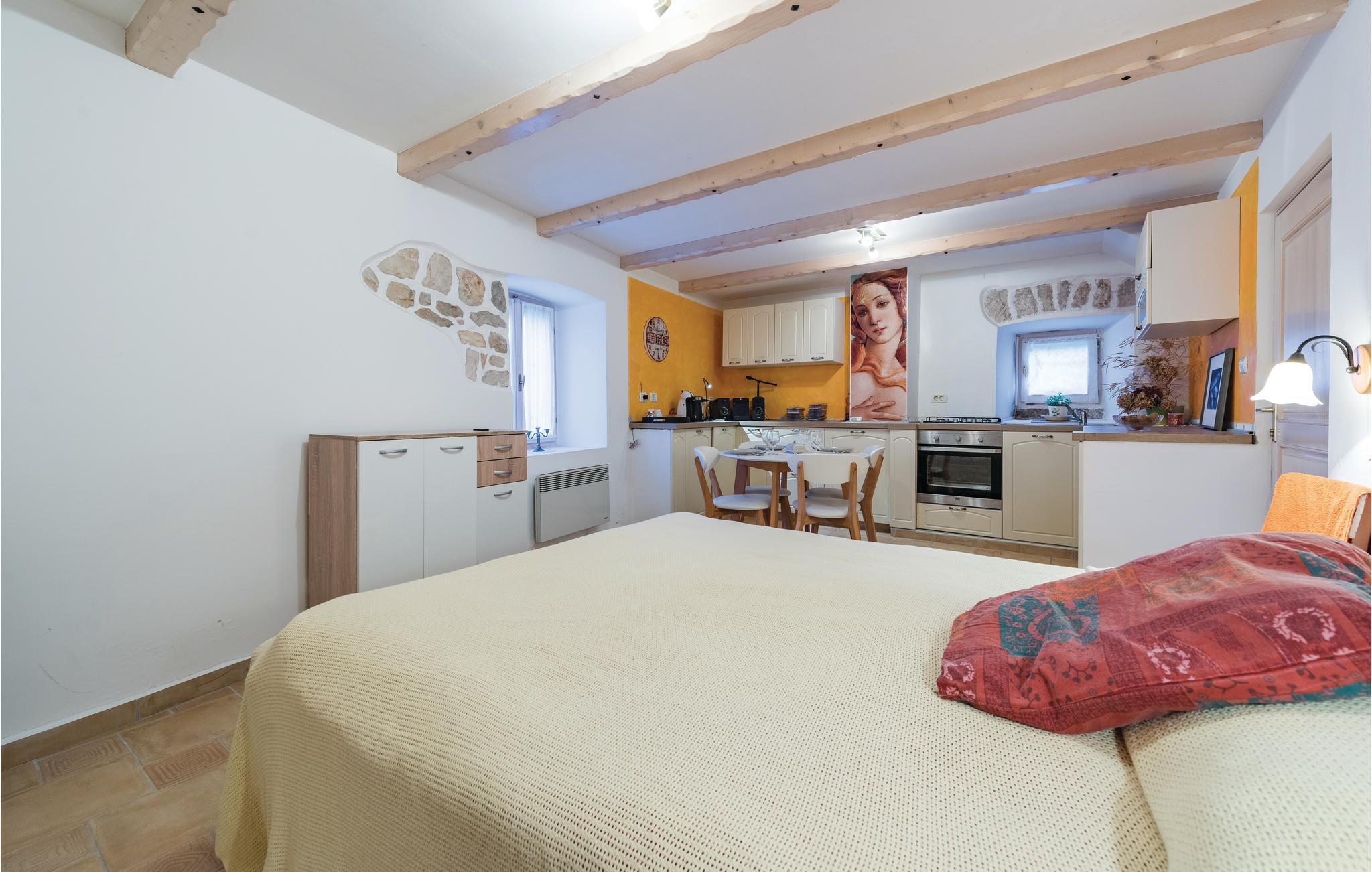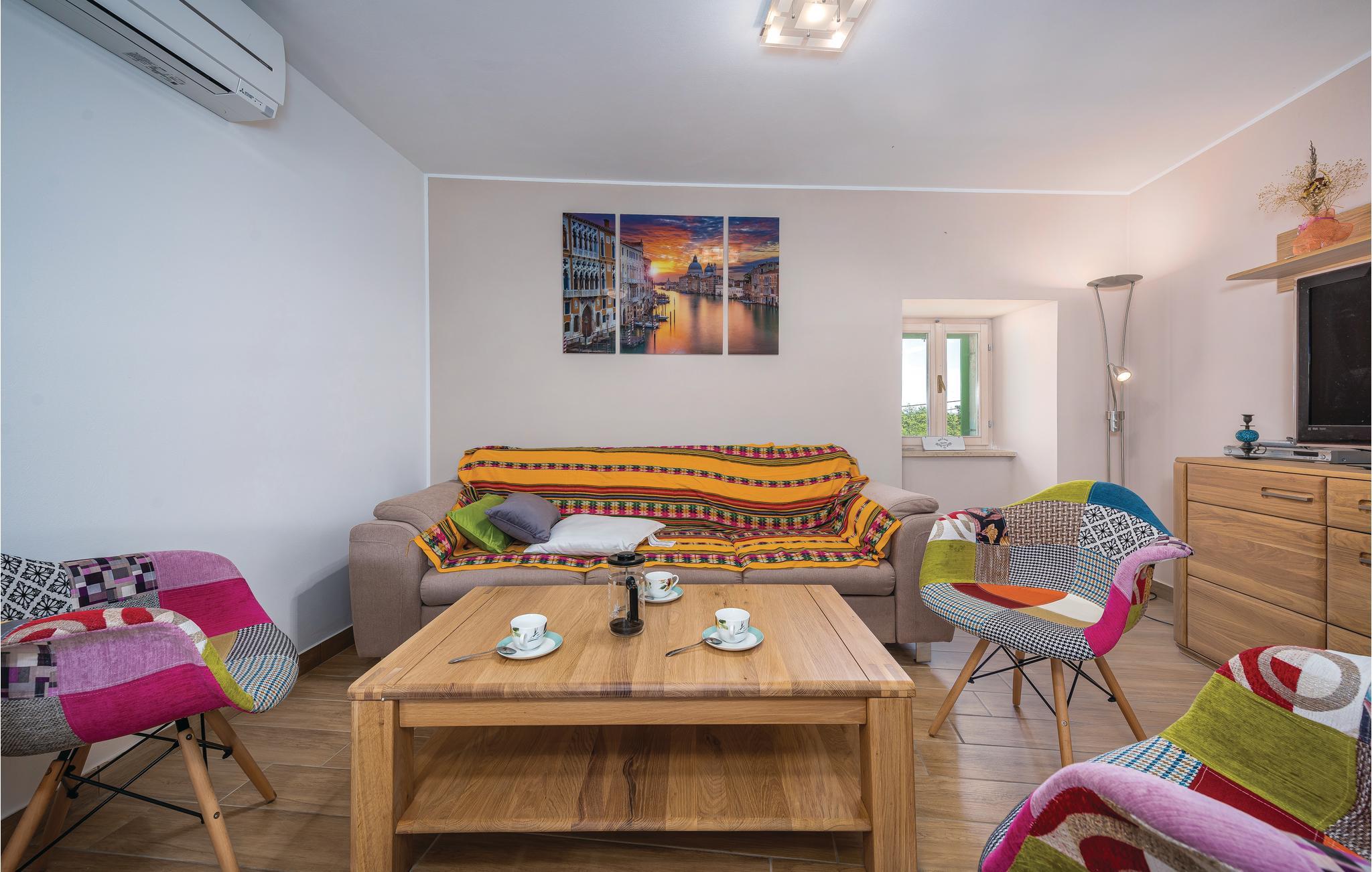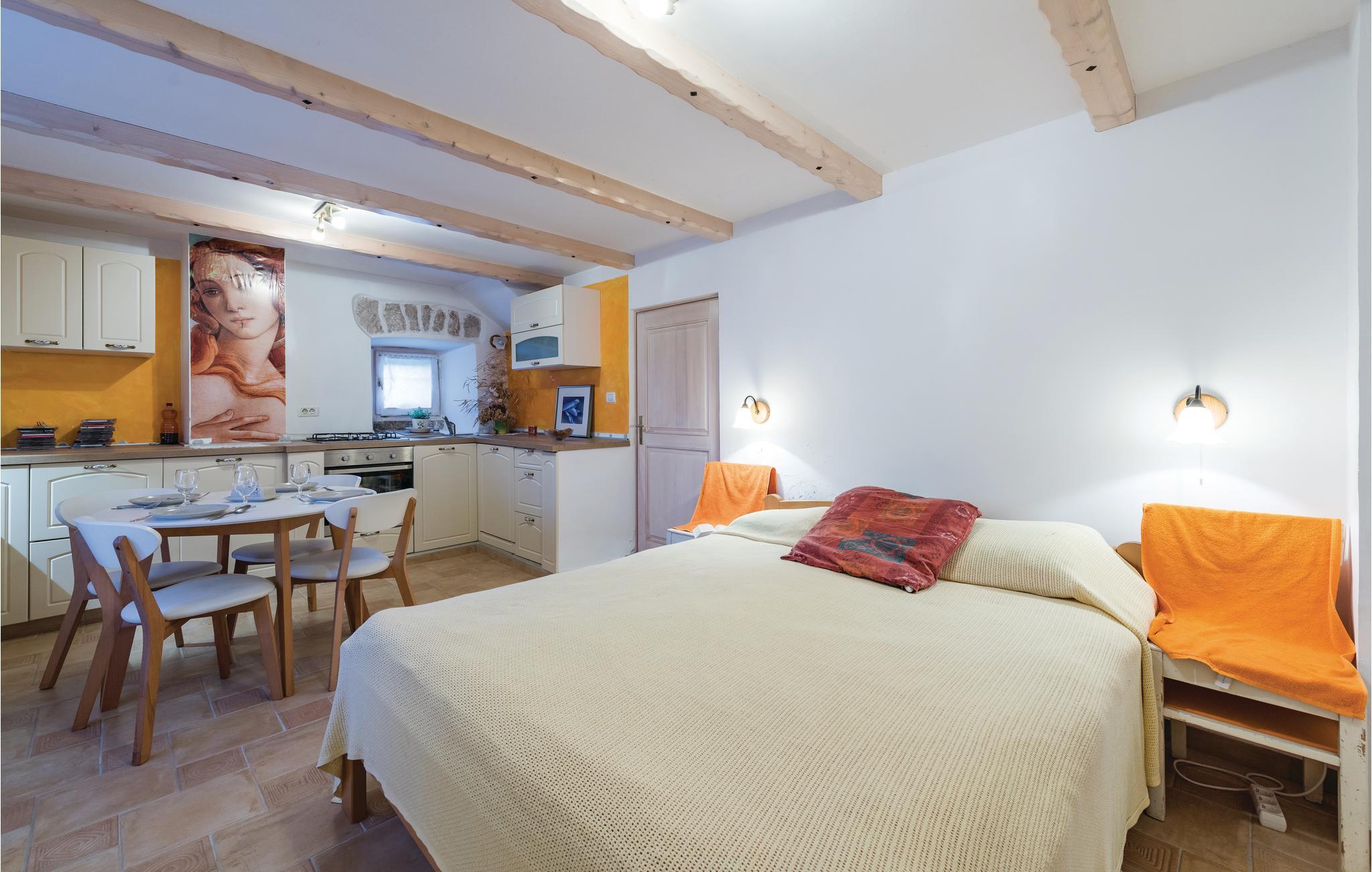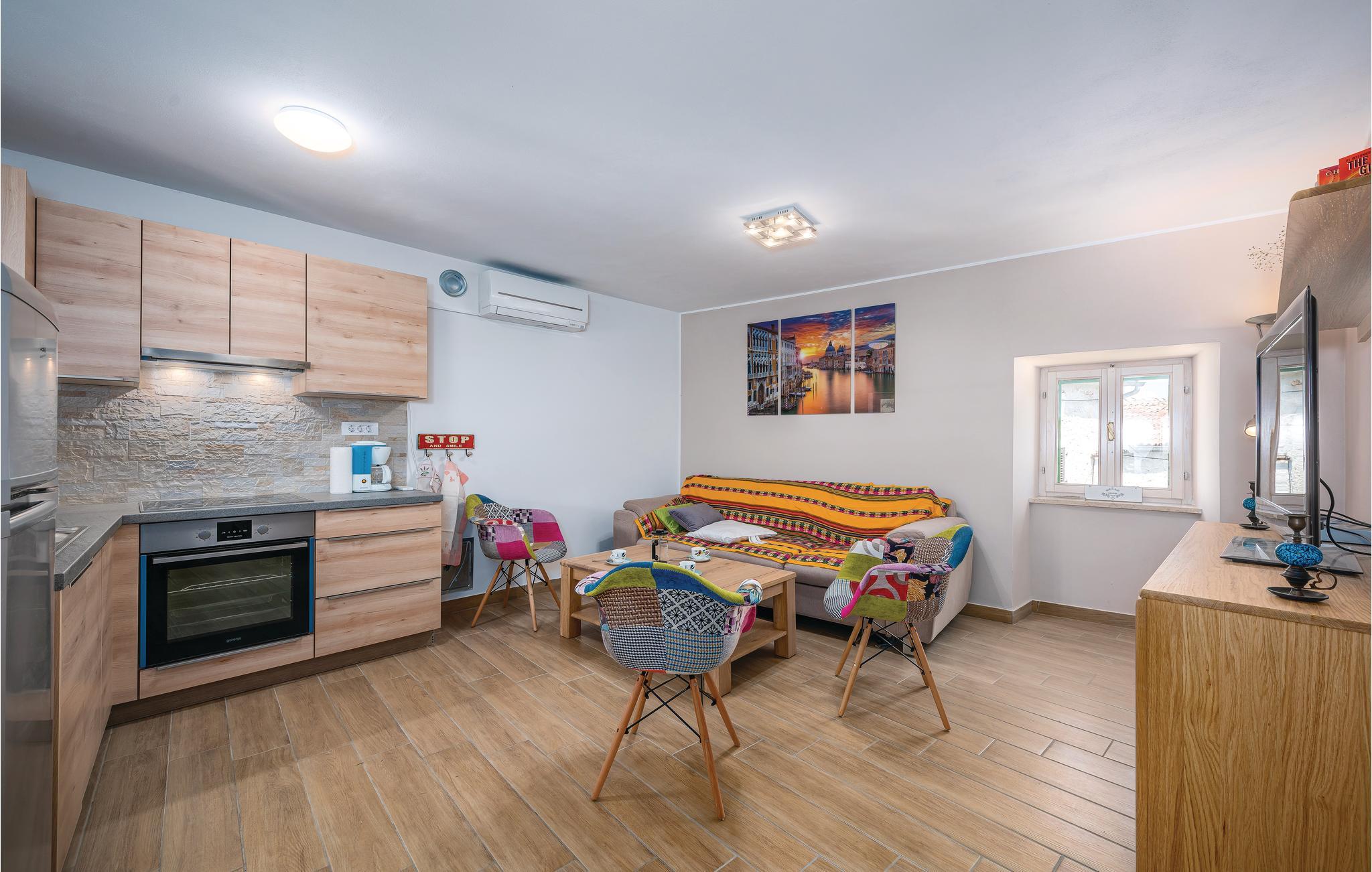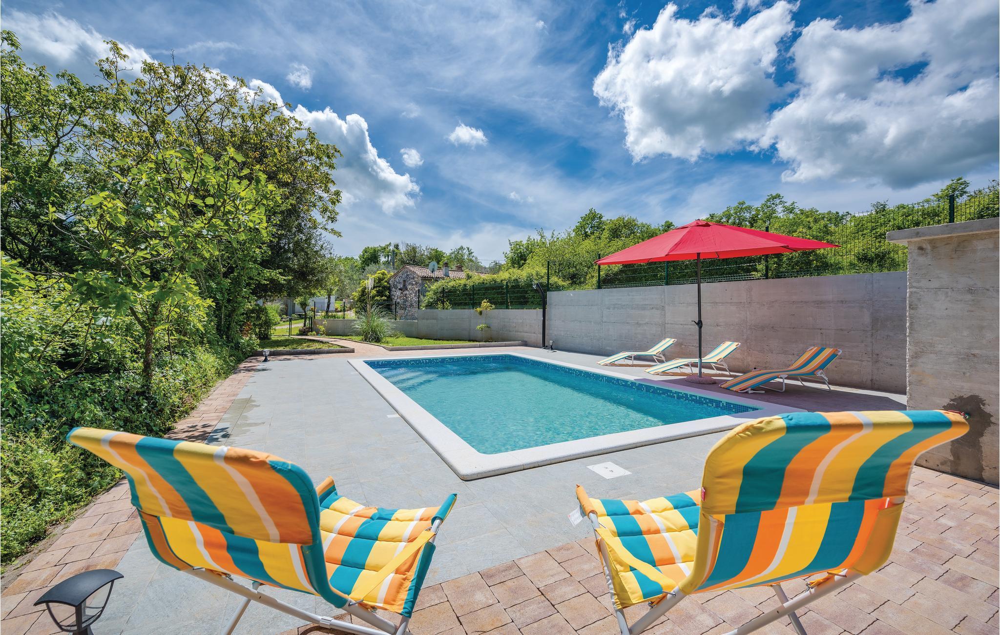 Verbringen Sie Ihren Urlaub in diesem schönen authentischen Steinhaus mit Pool, in einem kleinen istrischen Dorf nahe der Stadt Labin. Die gemütliche Wohnatmosphäre entsteht durch die Beibehaltung der traditionellen Elemente. Der Innenbereich besteht aus zwei Wohneinheiten, die über Außentreppen zugänglich sind. Im Erdgeschoss liegt ein charmantes Studio-Apartment, während sich durch das Ober- und Dachgeschoss ein Wohnzimmer mit Küche, drei Schlafzimmer und ein Badezimmer erstrecken. Eine Wendeltreppe führt zum Dachgeschoss mit einer minimalen Deckenhöhe von ca. 110 cm, dort gibt es auch eine weitere Toilette. Das Schlafzimmer Nr. 2 ist ein Durchgangszimmer zum Schlafzimmer Nr. 3. An heißen Sommertagen erfrischen Sie sich im Pool und entspannen mit guter Lektüre auf der großen Terrasse oder bereiten Grillmahlzeiten zu. Besuchen Sie die Altstadt von Labin und in der Stadt Rabac erwarten Sie die schönsten Strände Istriens.