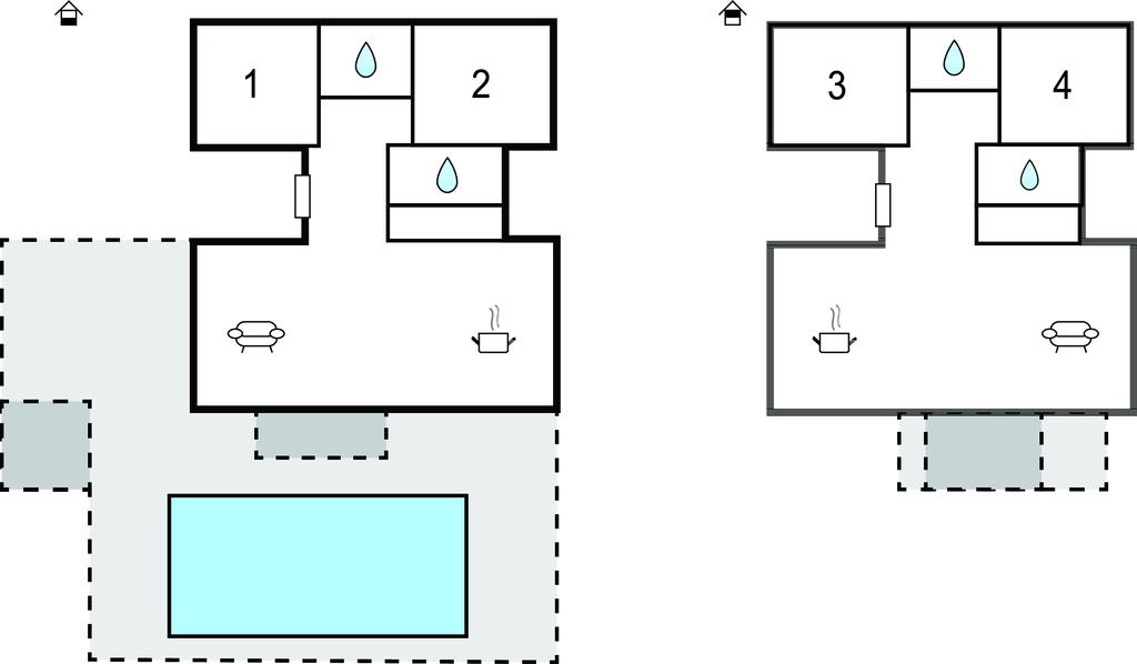 Badezimmer (nr. 4) - WC. Warmes und kaltes Wasser. Dusche