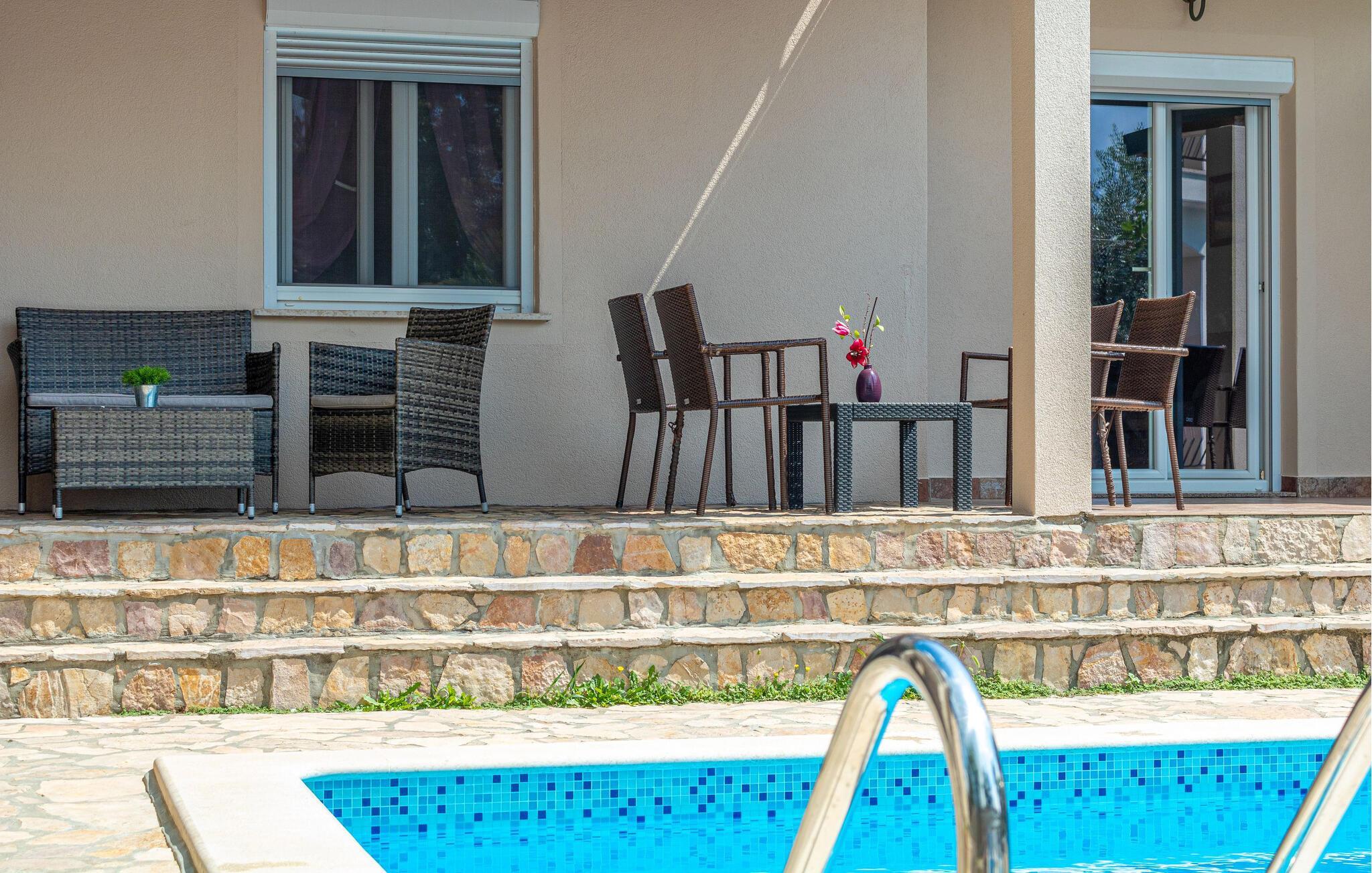 Diese schöne Doppelhaushälfte mit Pool liegt im kleinen Ort Ladenci, nur etwa 10 Autominuten von der touristischen Ortschaft Rabac entfernt, bekannt für ihre schönen Kieselstrände und das kristallklare Meer. Sie besteht aus drei getrennten Wohneinheiten, die Etagen werden über eine Außentreppe erreicht. Zwei kleinere Wohneinheiten mit jeweils einem Schlafzimmer befinden sich im Erdgeschoss, während in der ersten Etage die größere Wohneinheit mit drei Schlafzimmern liegt. Das Schlafzimmer Nr. 2 hat nur ein kleineres Fenster mit Blick in die Küche. Wir empfehlen Ihnen, die Stadt Labin zu besuchen, wo während der Sommermonate zahlreiche Veranstaltungen stattfinden. Von Rabac aus können Sie eine Bootsfahrt unternehmen.