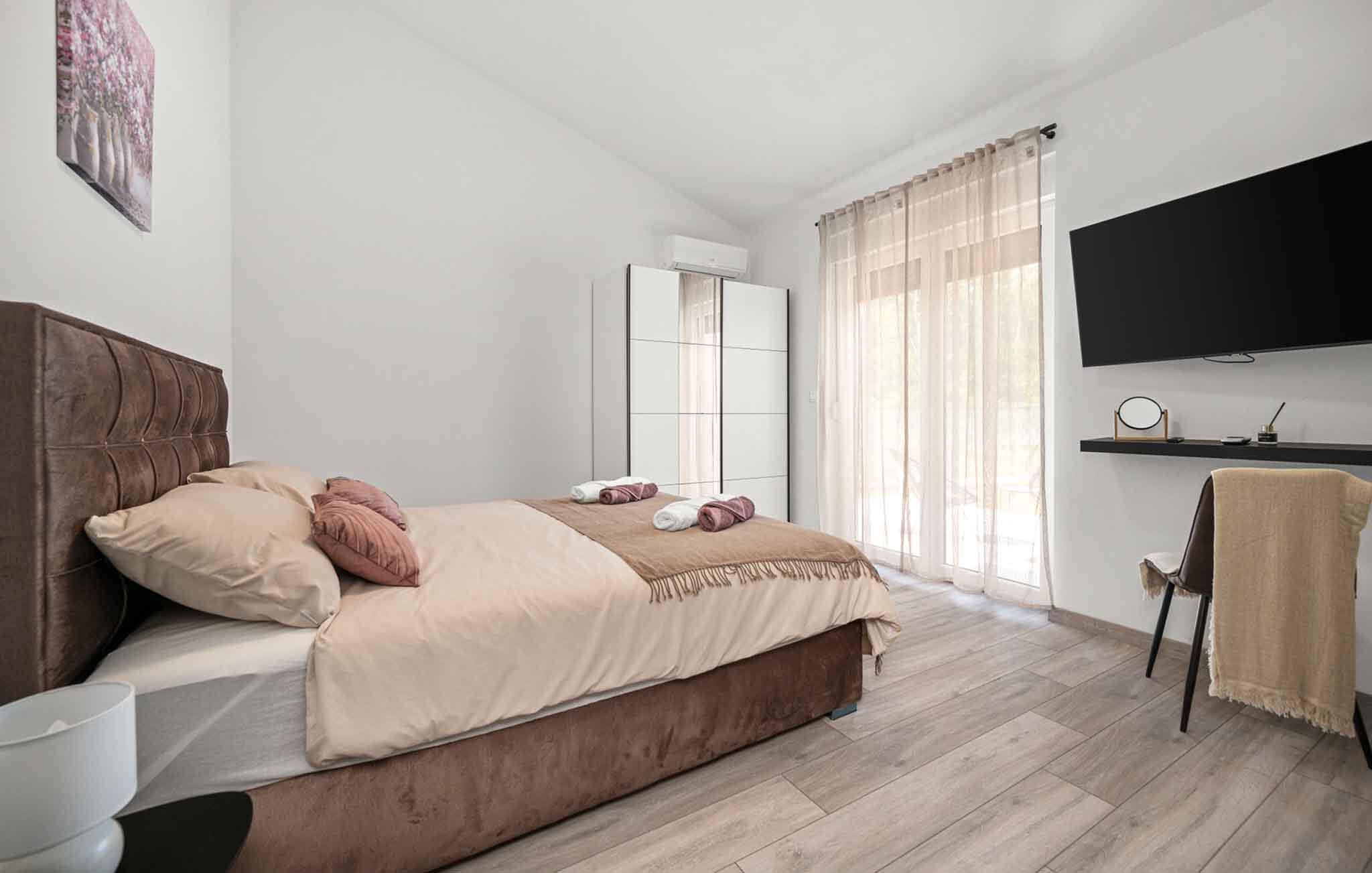 Dieses elegant eingerichtete Urlaubsdomizil nahe der wunderschönen Adriaküste verspricht reichlich Komfort und Erholung. Lassen Sie sich von der angenehmen Atmosphäre des hellen Innenbereichs begeistern. Die offene Küche lädt zum gemeinsamen Schlemmen ein, und die gemütliche Sofalandschaft ist wie geschaffen, um die Abende mit der ganzen Familie bei einem guten Film ausklingen zu lassen.