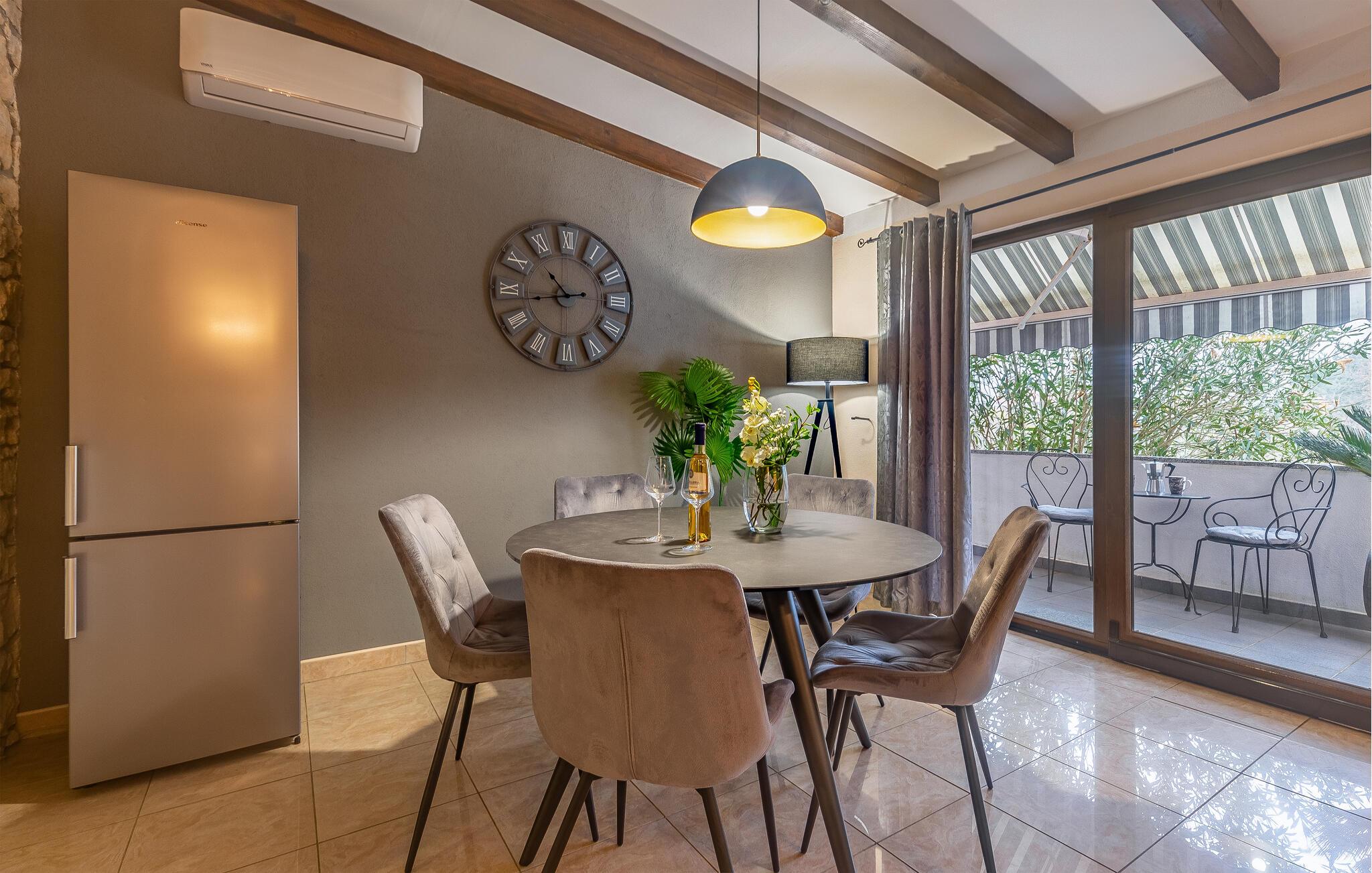Wenn Sie Ihren Urlaub in einer ruhigen Gegend verbringen wollen, wo Sie von viel Grün und von den Schönheiten eines romantischen, kleinen Dorfes umgeben sind, sich aber trotzdem in der Nähe aller interessanten, sommerlichen Freizeitangebote, wie schönen Strände, klarem Wasser und pulsierendem Nachtleben befinden möchten, dann haben Sie hier die richtige Wahl getroffen. Diese Ferienunterkunft ist nett eingerichtet und liegt an einer Nahverkehrsstraße. Ein Basketballkorb befindet sich auf dem Grund. Etwa 10 Autominuten von der Wohnung entfernt ist ein Besuchsbauernhof mit Pferden und einem kleinen Restaurant.