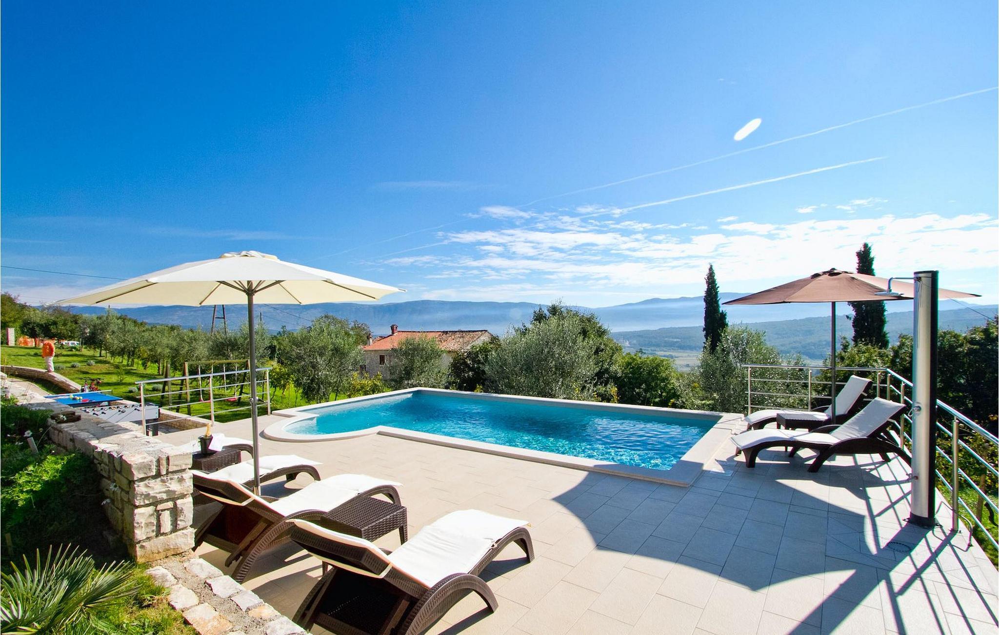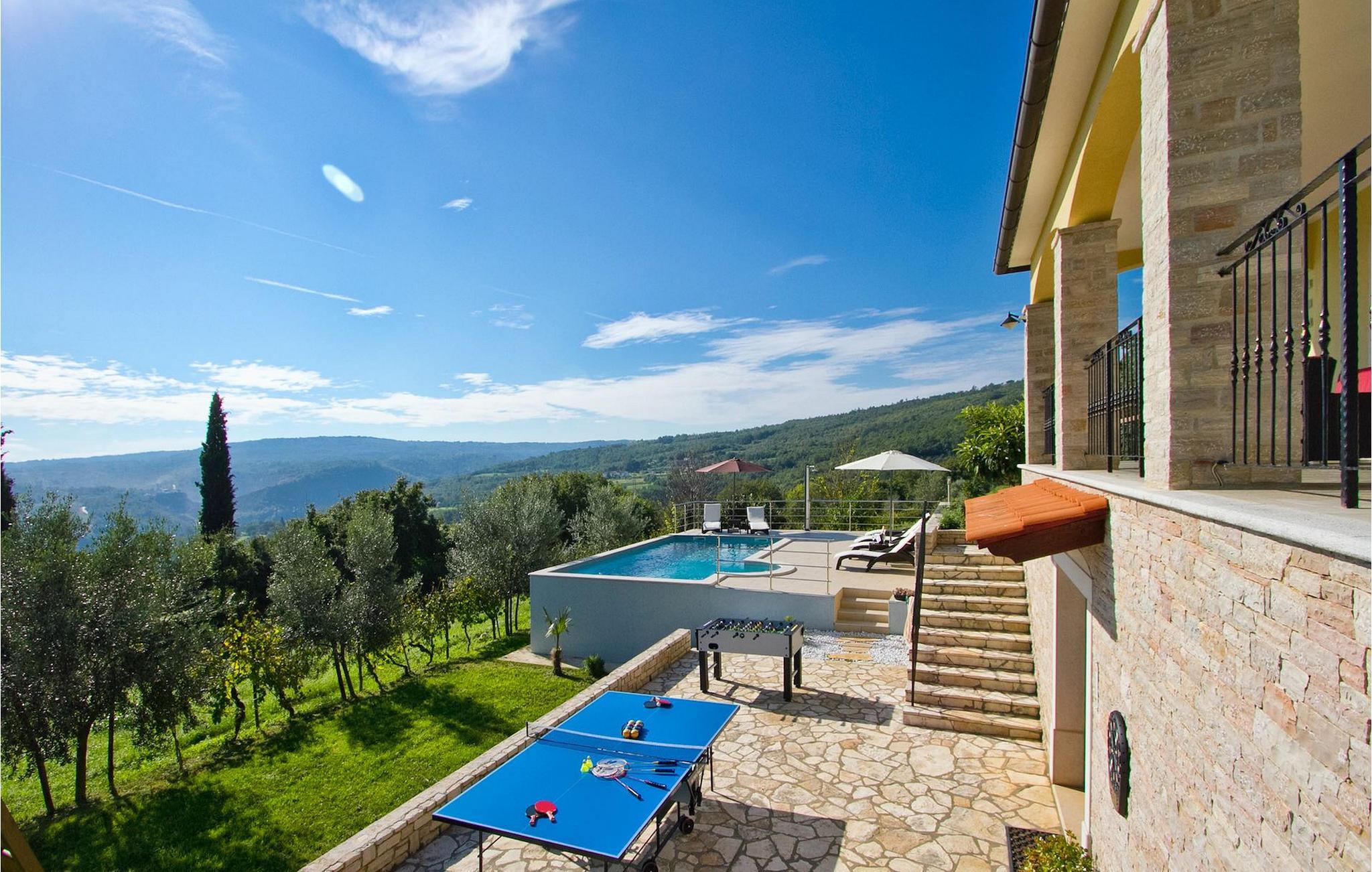 Die Villa selbst ist ein abgeschiedener, perfekter Ort der Erholung ... so ideal, wenn Sie Privatsphäre, Frieden und Ruhe schätzen. Istrien ist leicht erreichbar und verfügt über ein ausgezeichnetes, verkehrsarmes Straßennetz. Die Küste mit den großen Touristenzentren und der Flughafen Pula sind nur einige Autominuten entfernt. Der nächstgelegene Strand Plomin ist 15 km entfernt. Die istrische Halbinsel „Terra Magica” liegt an der Adria, dem nähesten warmen Meer im Herzen Europas. Die „Perle der Kvarnerbucht“ gehört zum östlichen Teil der Halbinsel. Im westlichen Teil, nur 12 km von Pazin entfernt, liegt das fantastische, mittelalterliche Schloss von Pazin (Kastel) 130 m über dem Kliff, wo der Fluss Pazincica in die Paziner Grube fließt: Hier spielt sich der Roman Mathias Sandorf des bekannten, französischen Schriftstellers Jules Verne ab, der 1885 veröffentlicht wurde. Heutzutage gibt es einen Jules Verne-Klub in Pazin, u. Ende Juni finden jährlich „Jules Verne-Tage“ statt.