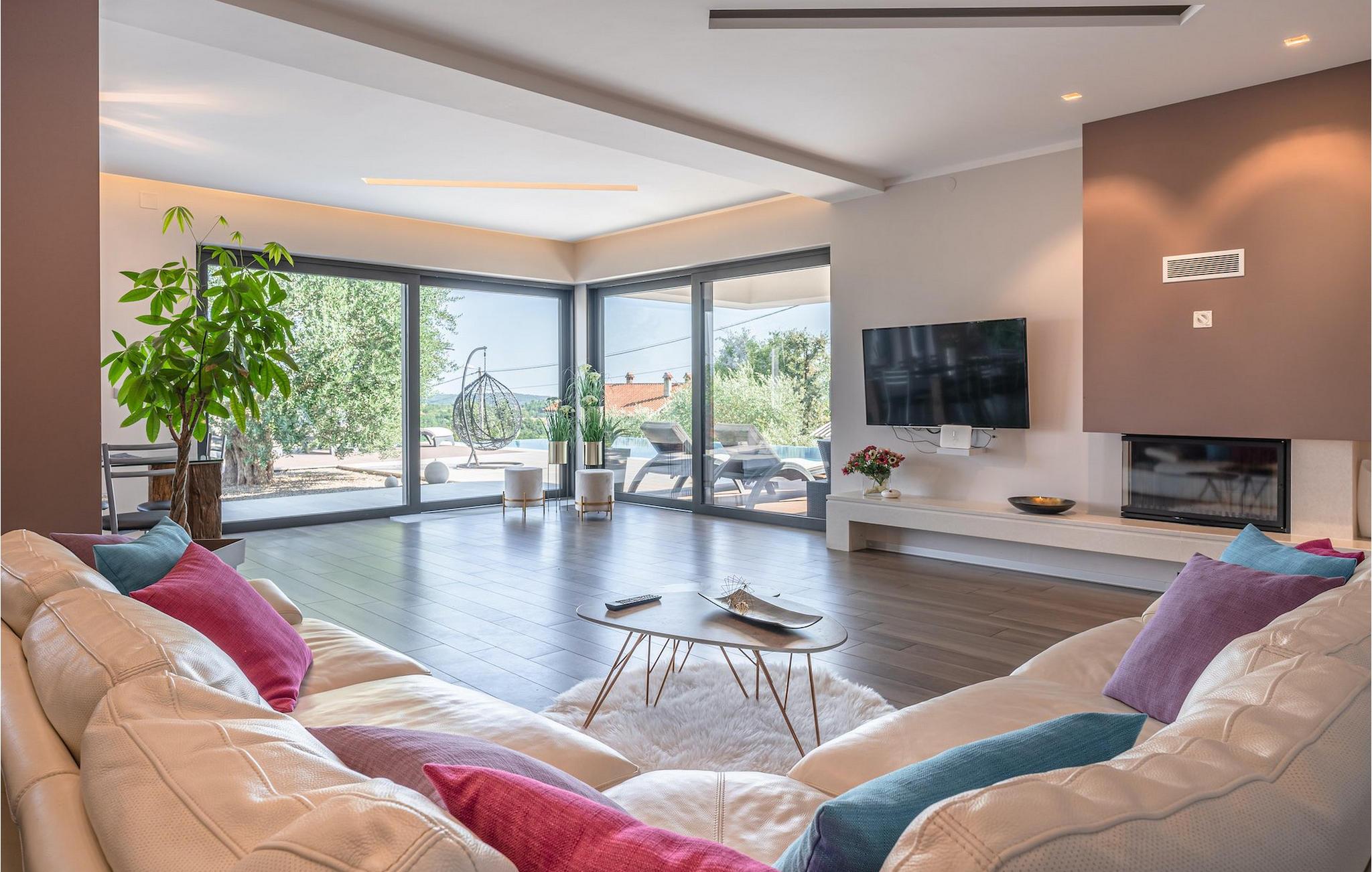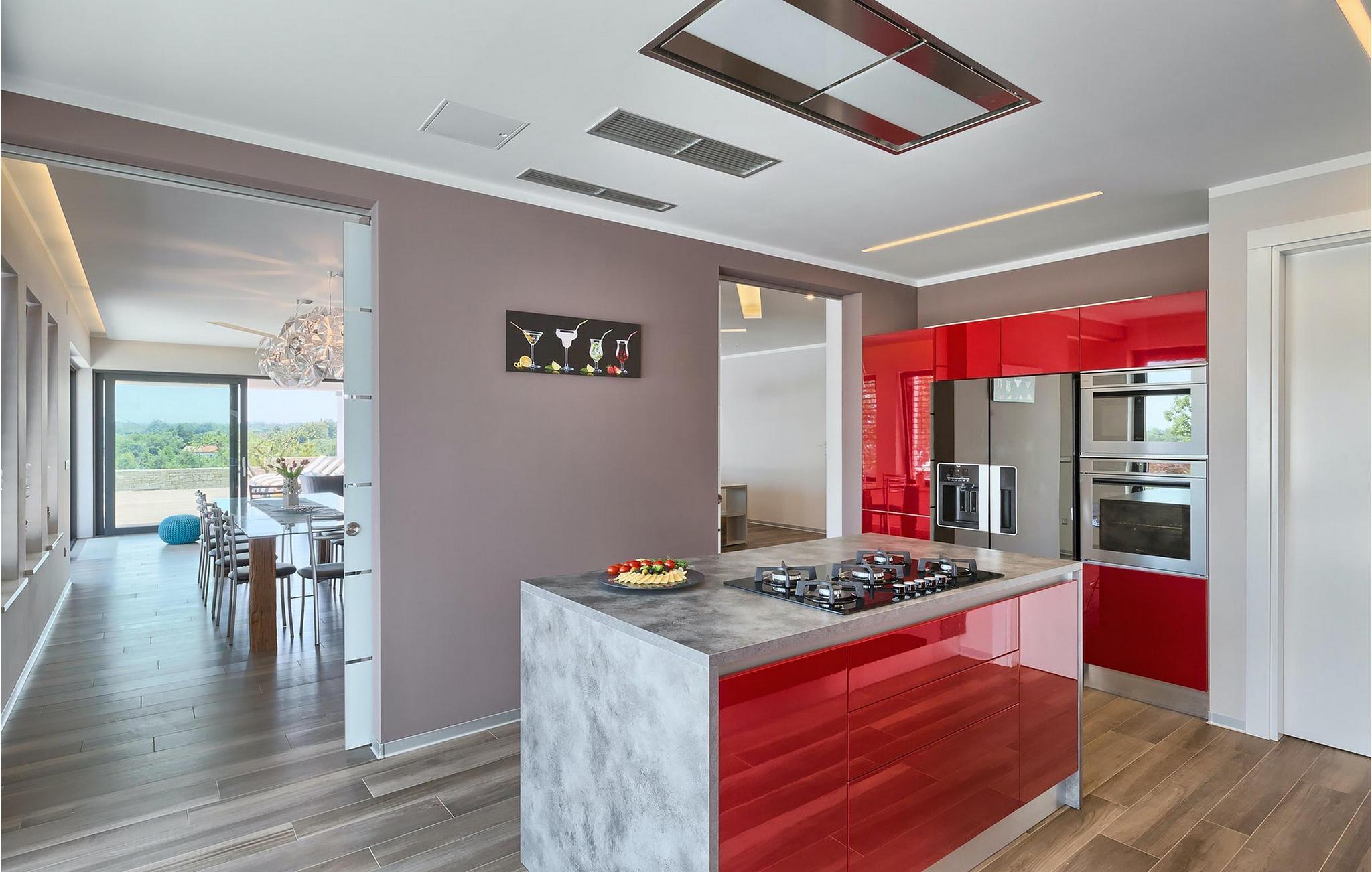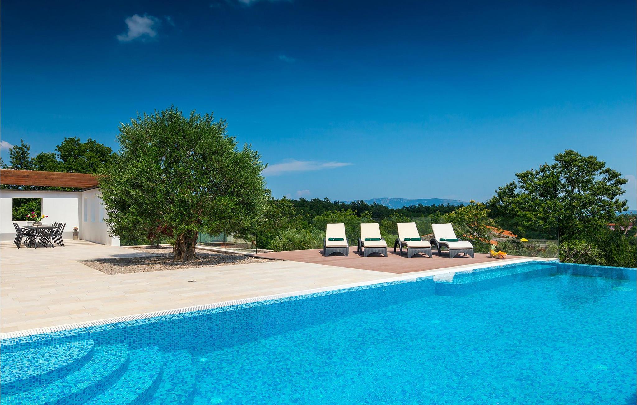 Falls Sie von einem entspannenden Urlaub inmitten der unberührten Natur Istriens träumen, könnte Villa Pedena die ideale Wahl für Sie sein. Zur gleichen Zeit ist die Villa nur eine kurze Fahrt vom nächsten Strand entfernt. Die Villa lässt jeden sprachlos, da großer Wert auf die Details gelegt wurde. Das Erdgeschoß hat einen offenen Grundriss und große Fenster, die den ganzen Tag viel Licht hineinlassen. Hier gibt es das geräumige Wohnzimmer und die komplett ausgestattete Küche. Mit insgesamt 4 Schlafzimmern und einem Sofabett in einem separaten Zimmer kann die Villa bis zu 10 Personen beherbergen. Um Ihren Aufenthalt in der Villa unvergesslich zu machen, steht Ihnen ein Fitnessraum zur Verfügung, in dem Sie auch einen Billardtisch und Dart finden werden. Falls Sie gerne leckere Spezialitäten vorbereiten, müssen Sie den traditionellen eingebauten Grill ausprobieren. Denjenigen, die gerne im Freien essen, steht auch die überdachte Terrasse zur Verfügung. Der größte Vorteil dieser charmanten Villa ist der einladende Pool, der zu Ihrer alleinigen Nutzung ist.Die Villa selbst ist ein abgeschiedener, perfekter Ort der Erholung ... so ideal, wenn Sie Privatsphäre, Frieden und Ruhe schätzen. Istrien ist leicht erreichbar und verfügt über ein ausgezeichnetes, verkehrsarmes Straßennetz. Die Küste mit den großen Touristenzentren und der Flughafen Pula sind nur wenige Autominuten entfernt. Der nächstgelegene Strand