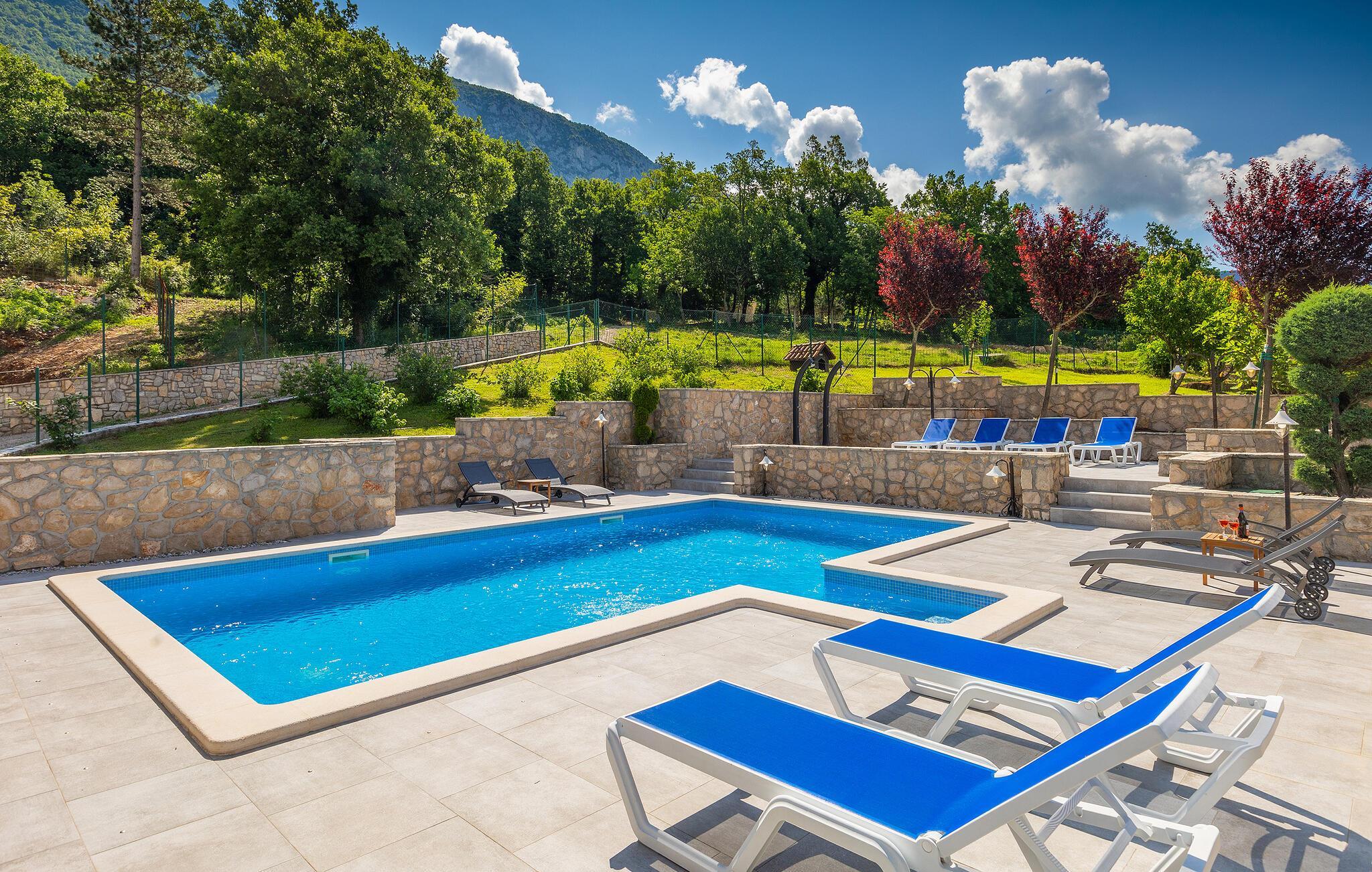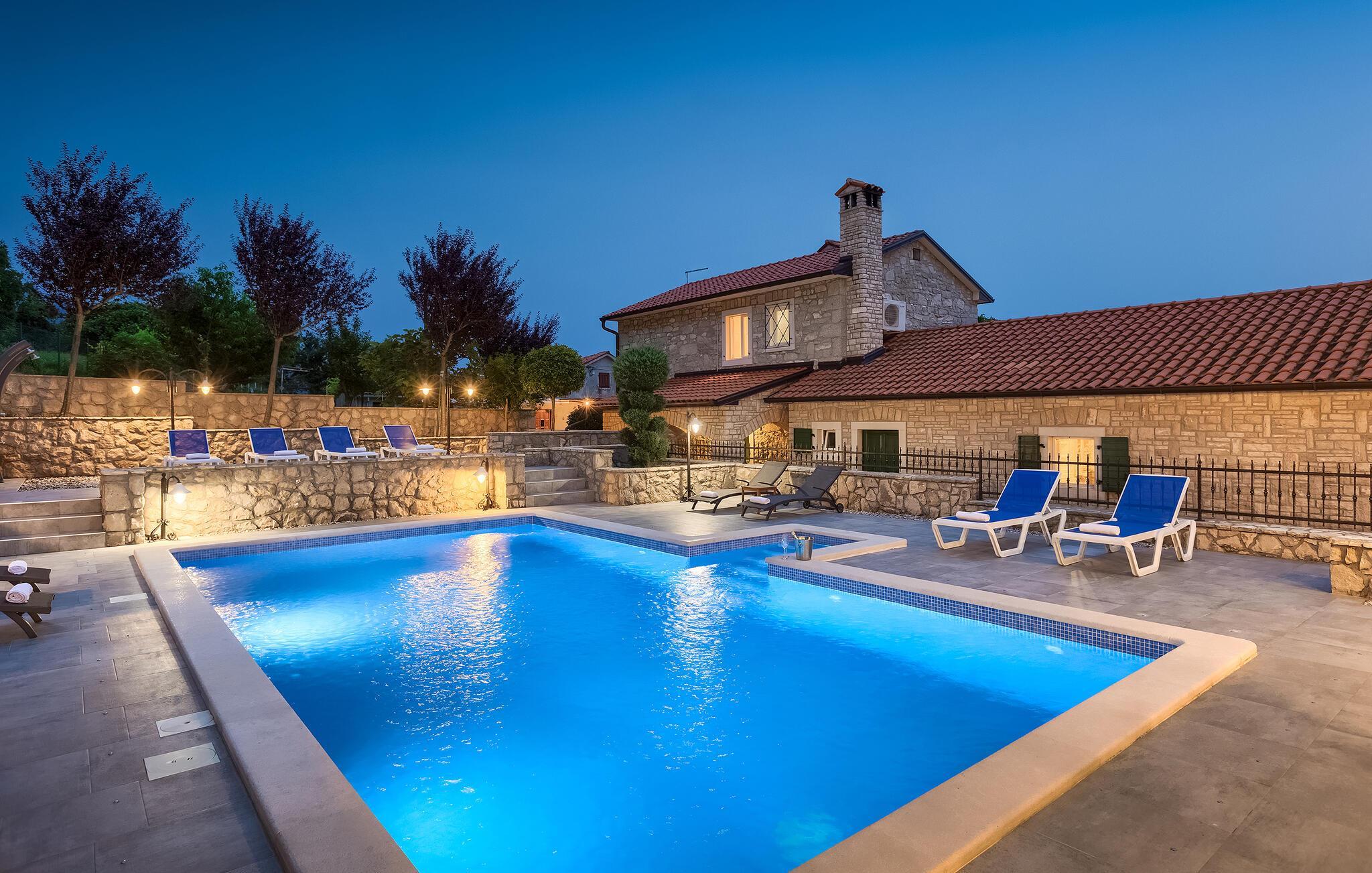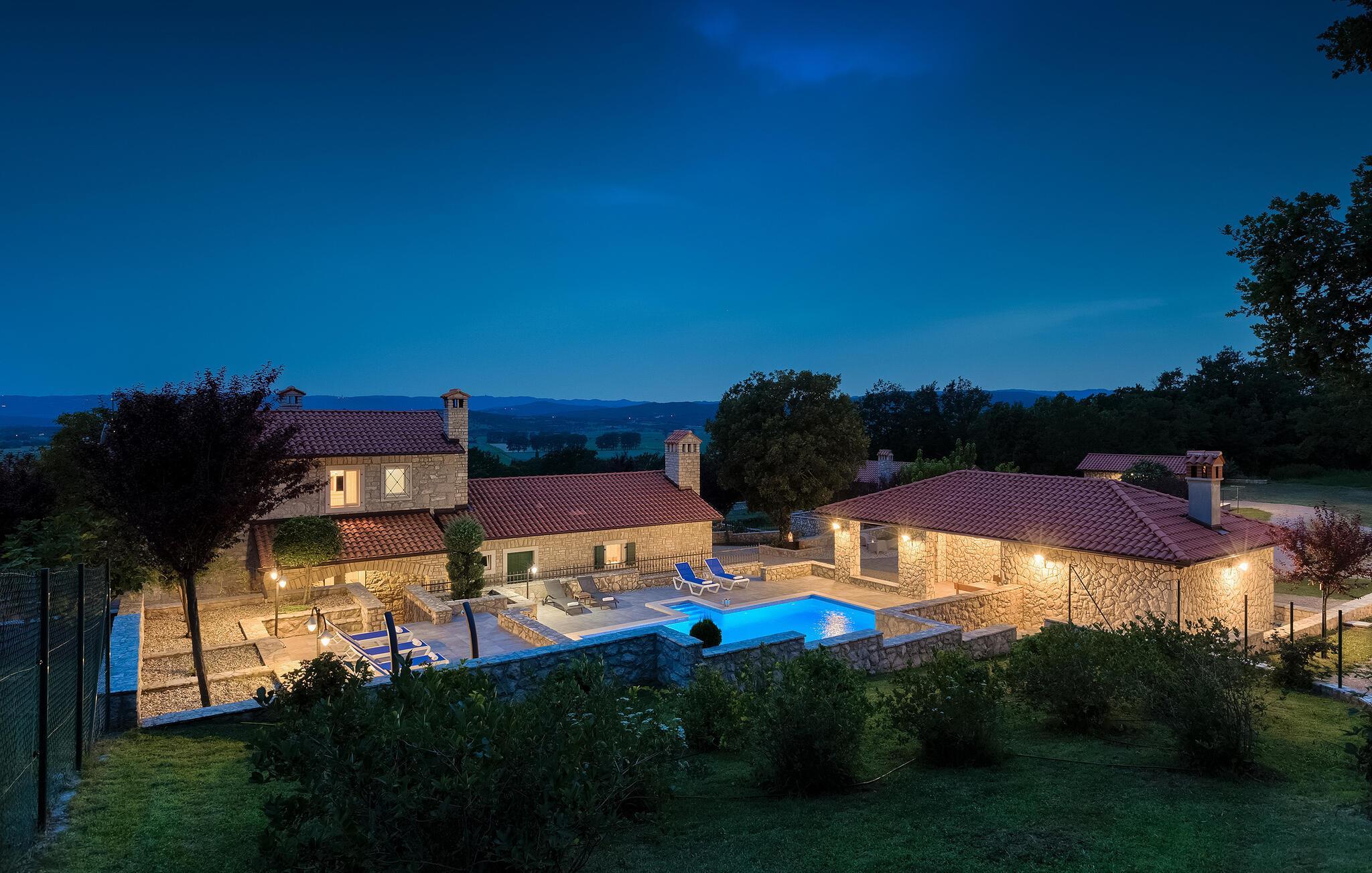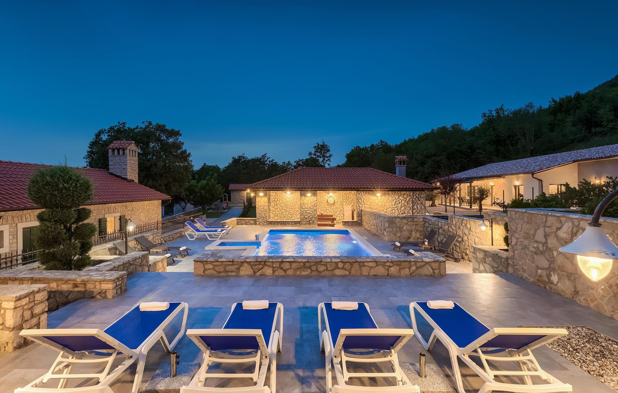 Villa Skavre ist ein magischer Ort, wo Freude, Entspannung und Glück garantiert sind. Es liegt auf Hügeln, in der Nähe der Kvarner Küste, mit einem herrlichen Blick auf die umliegende Landschaft. Die Besitzer haben eine kleine Hirschfarm in der Nähe der Villa, die ein wundervolles Erlebnis für jeden Gast sein wird. Man kann im Pool schwimmen und den Blick auf die frei laufenden Tiere genießen. Ein echter Stressabbau für jeden Naturliebhaber! Die Villa verfügt über 3 Schlafzimmer, jeweils mit Doppelbetten, 3 Badezimmer und einen eleganten und modernen Wohnbereich mit 3 voll ausgestatteten Küchen und einem gemütlichen Wohnzimmer. Hier finden Sie einen zusätzlichen Schlafplatz - ein bequemes Schlafsofa, ausreichend für 2 Personen. Und wenn ein Teil Ihrer Gruppe etwas Ruhe braucht, während der andere eine lange Nacht verbringen und kroatische Spezialitäten kosten möchte - der Besitzer hat sich sogar um dieses kleine Detail gekümmert. Direkt neben dem Haupthaus befindet sich ein kleineres Haus bestehend aus einem Unterhaltungsraum mit Pizzaofen und WC.