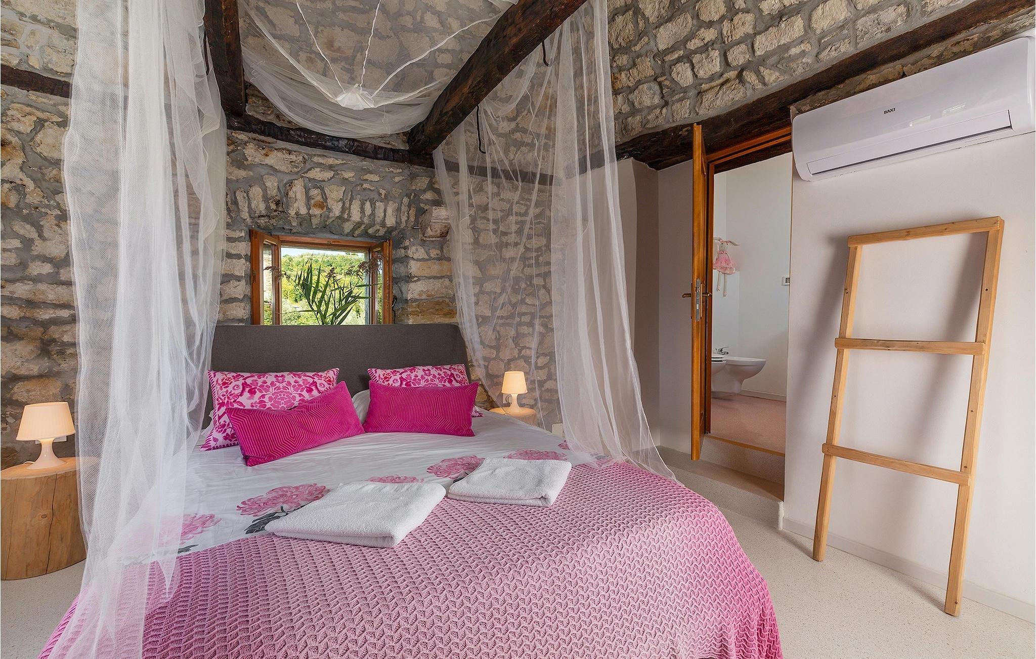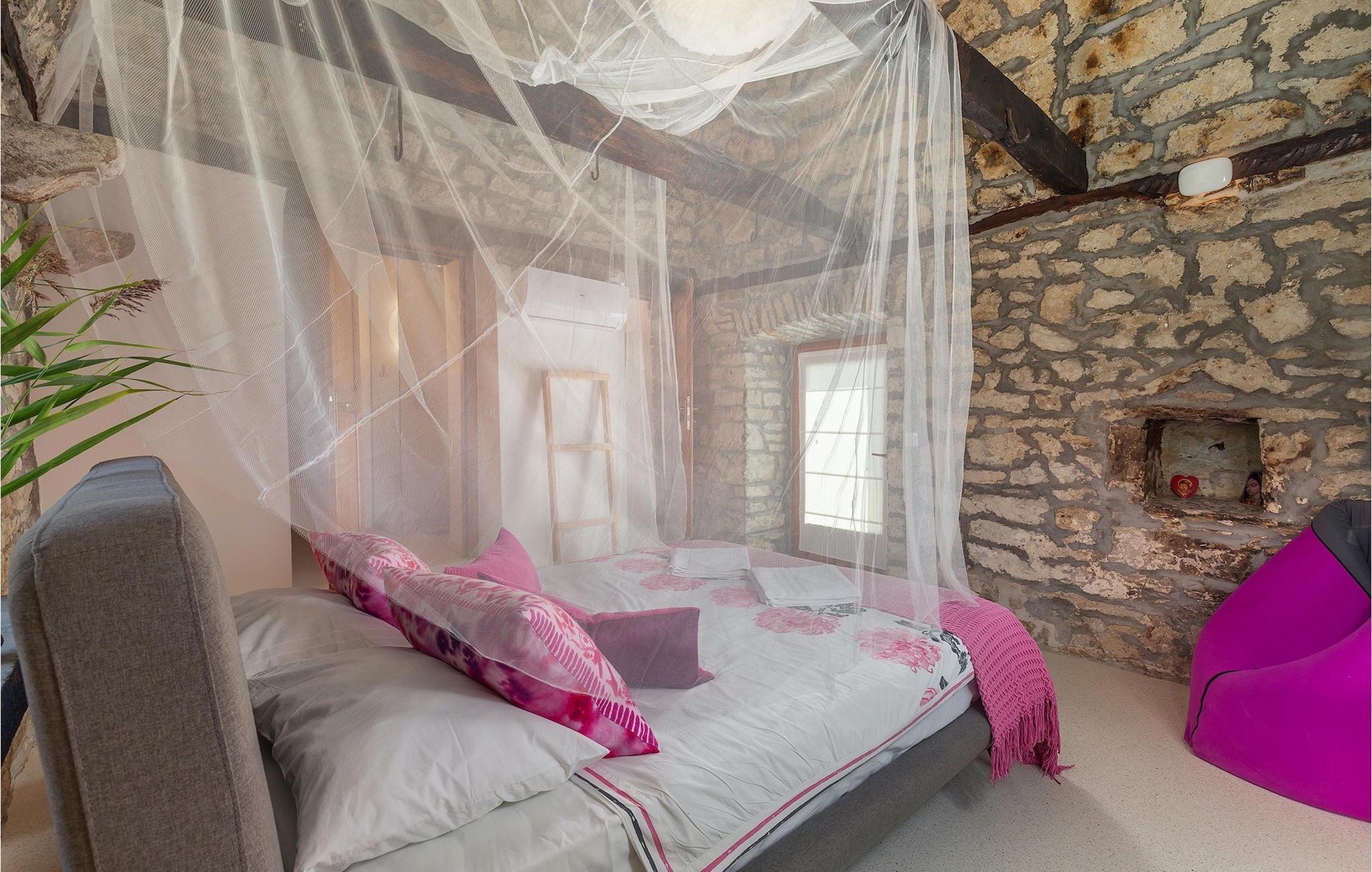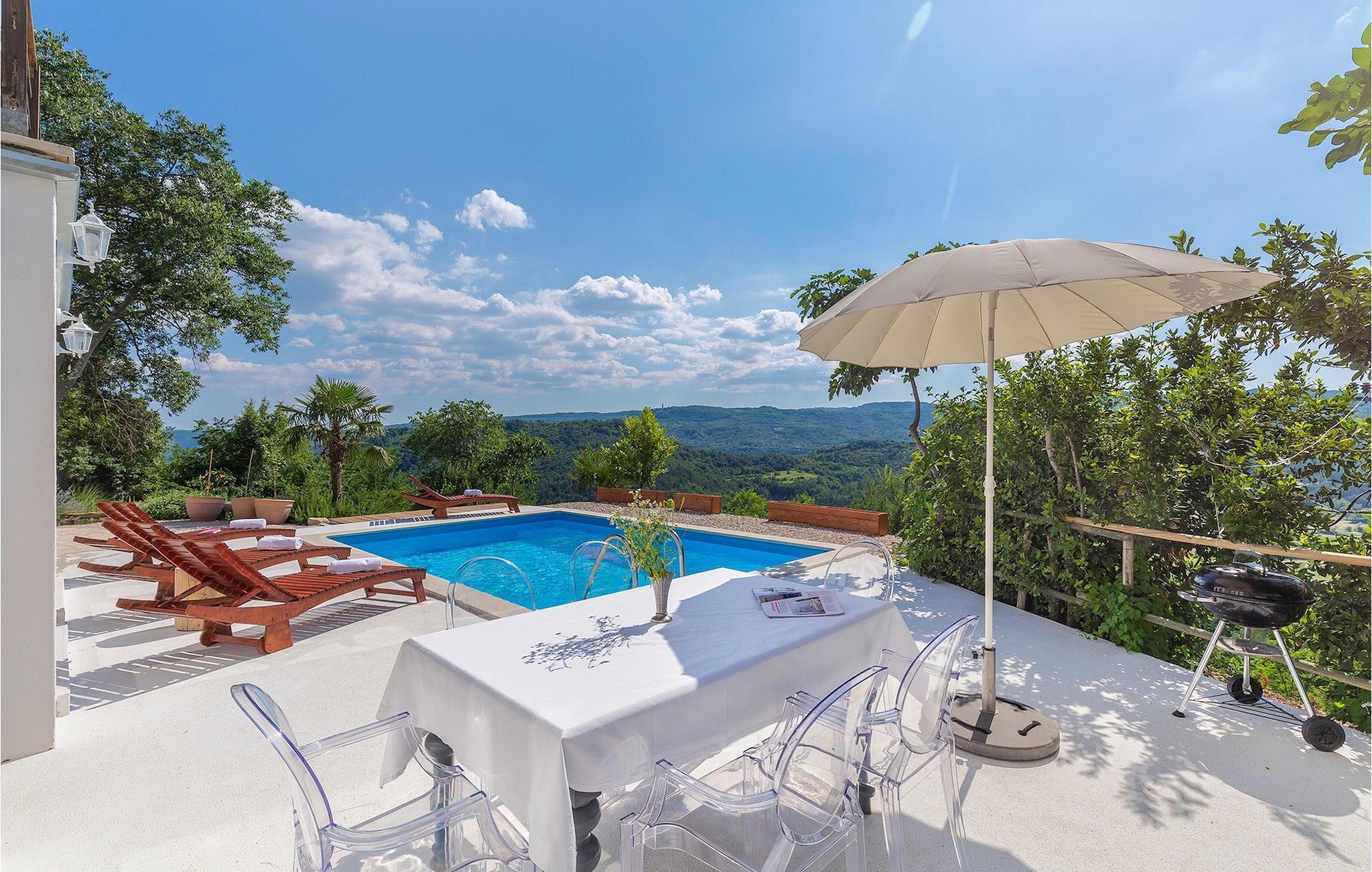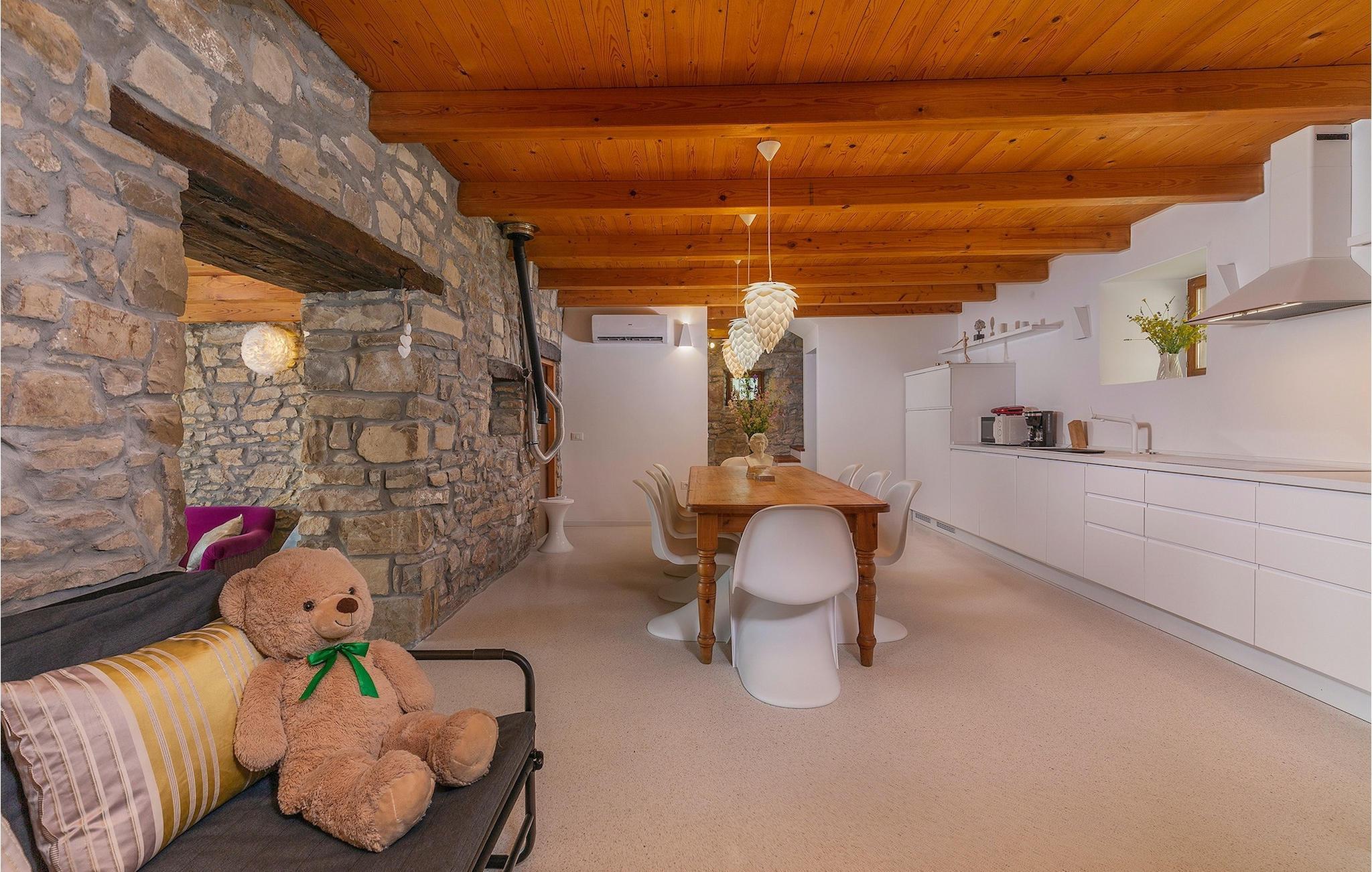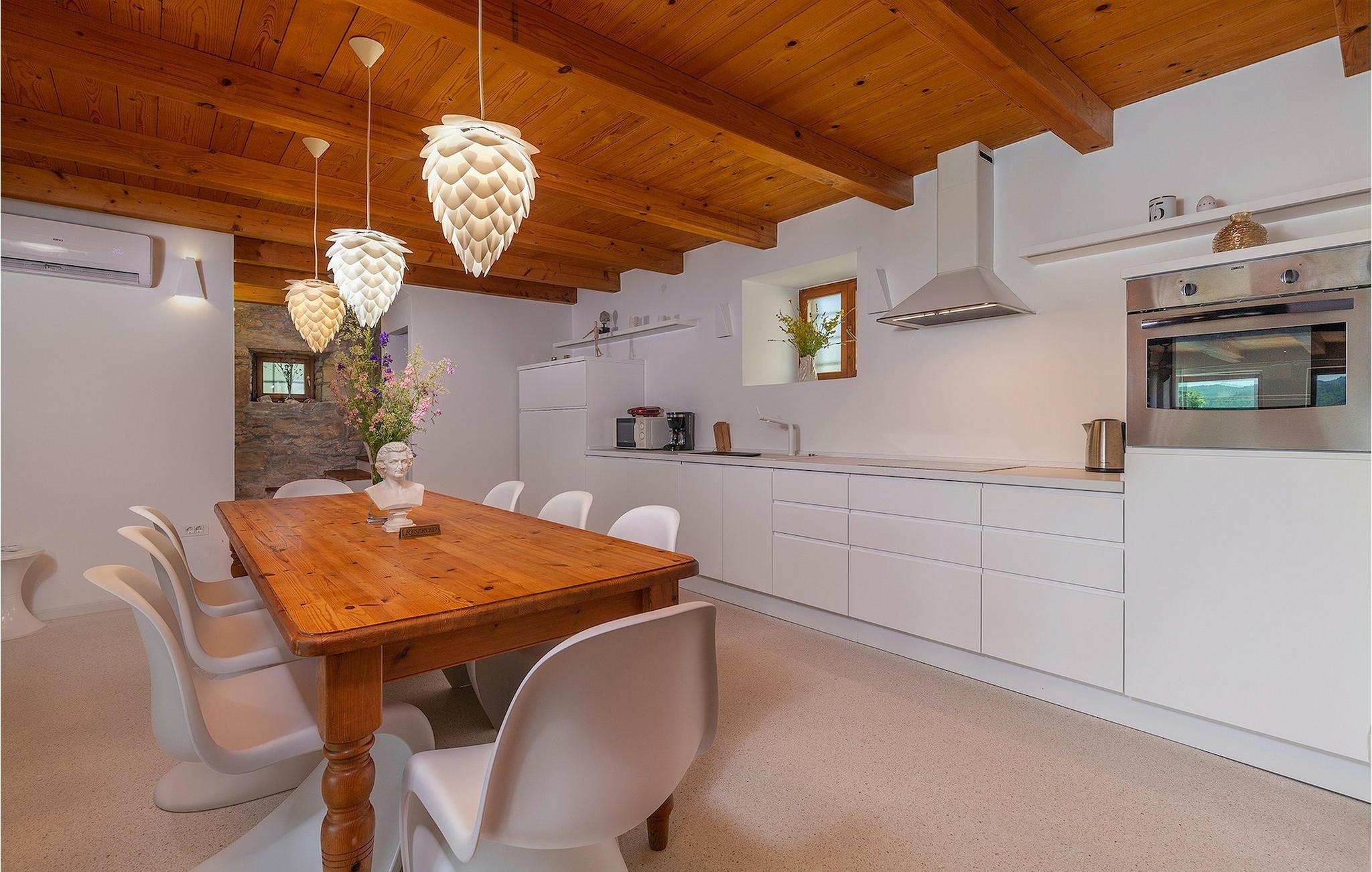 Beginnen Sie Ihren idealen Urlaub im Grünen des herrlichen Hügellandes von Istrien, während Sie in einer bezaubernden, erneuten Villa genießen, die den alten Stein mit moderner Architektur kombiniert, insbesondere im interessanten Innenbereich. Villa Sussini bietet all das und noch viel mehr! Diese wunderschöne Villa erstreckt sich über das Erdgeschoss und den ersten Stock und verfügt über 3 Schlafzimmer, in denen bis zu 8 Personen mit unterschiedlichen Schlafmöglichkeiten untergebracht werden können. Die zusätzlichen Schlafsofas befinden sich sowohl im Wohnbereich als auch in einigen Schlafzimmern. Im Erdgeschoss finden Sie ein geräumiges Wohnzimmer mit Küche und Esszimmer, ein Schlafzimmer mit privatem Badezimmer, ein getrenntes Badezimmer und einen Abstellraum. Hier können Sie die Kombination aus Steinmauern und Designermöbeln, hohen Decken und freiliegenden Holzbalken genießen, eine großartige Mischung von Modernen mit einer rustikalen Note. Durch die sorgfältig ausgewählten Details, Blumen und strahlenden Farben erhalten Sie ein Gefühl von Wärme in diesem einladenden Bereich mit Blick auf den Pool. Große Glastüren mit Holzrahmen, die zum Außenbereich führen, wo Sie sicherlich viel Zeit verbringen großenteils beim Entspannen neben dem einladenden privaten Pool oder beim Essen oder Zubereiten von Grillgerichten im Freien. Es gibt auch genügend Platz auf den Sonnenliegen, falls Sie sich gerne sonnen möchten oder nur am Pool erholen während Sie sich vom atemberaubenden Blick der umliegenden Natur begeistern lassen. Auf der ersten Etage finden Sie 2 stilvoll eingerichtete und gemütliche Schlafzimmer mit privaten Badezimmer und einer Terrasse mit schöner Aussicht, erreichbar aus jeden Schlafzimmer. Egal, ob Sie nur Ihre Zeit hier oder im schönen, großen Garten genießen oder schon planen, wohin Sie als Nächstes gehen möchten, um das Hinterland zu erkunden oder sich auf einen Tag am Strand vorzubereiten (nur 15 Autominuten entfernt), in der Villa Sussini finden Sie alles, was Sie für Ihren perfekten Urlaub brauchen!Villa Sussini befindet sich in einem Dorf in der Nähe von Labin, der historische und administrative Zentrum von Ost-Istrien. In der Nähe finden Sie auch die ersten, natürlichen Strände, etwa 19 km entfernt von der Villa. Labin ist eine mittelalterliche Stadt die sich auf den Hügel über Rabac verbreitet, der am Meer gelegen ist. Hier finden Sie im Sommer auch viele Veranstaltungen und Konzerte wie das Labin Jazz Festival, aber auch viele gemütliche Cafes und bekannte Restaurants, wo Sie istrische Spezialitäten kosten können. Falls Sie gerne auch Inseln besuchen möchten, können wir Ihnen einen Bootsausflug zu den naheliegenden Inseln Cres oder Losinj empfehlen. Für diejenigen, die Ihren Urlaub auch gerne aktiv genießen, können Sie hier einen schönen Wanderweg finden (Sentona Weg) der sich von der Altstadt bis zu Rabac erstreckt. Hier können Sie die Natur erleben und viele Stromschnellen sehen, die durch sieben Brücken führen, mehrere Meter lange Wasserfälle und die ehemalige Mühle, deren Ruinen heute gefunden werden können.
