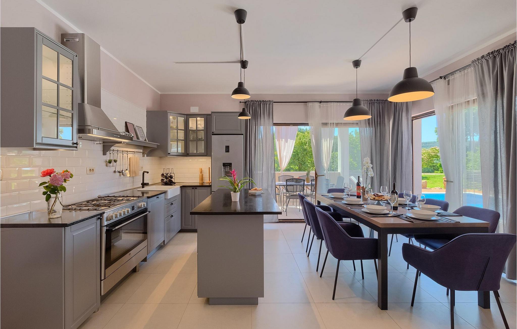 Die Villa Unka ist eine komfortable, moderne Villa mit privatem Pool. Die Villa bietet Platz für bis zu acht Personen. Im Erdgeschoss der Villa befinden sich ein Wohnzimmer, eine Küche und ein offener Essbereich. Im Wohnzimmer steht Ihnen ein großer Fernseher zur Verfügung, mit dem Sie Ihre Sport Kanäle und Serien ansehen können. Im ersten Stock befinden sich drei Schlafzimmer, von denen eines über ein eigenes Bad verfügt. Wenn Sie die Villa verlassen, befinden Sie sich auf einer überdachten Terrasse mit Essbereich, auf der Sie ein feines Familienessen genießen können, während die Sonne über der Villa untergeht. Sie haben einen privaten Pool zur Verfügung, um Ihren Körper während der heißen Sommertage zu entspannen und abzukühlen. Rund um den Pool befindet sich ein Holzdeck und Liegestühle, auf denen Sie mit einem kalten Getränk in der Hand an Ihrem Sommer-Teint arbeiten können. Diese moderne Villa ist der perfekte Urlaubsort, von dem Sie träumen. Hören Sie also auf zu träumen und verwirklichen Sie Ihre Träume, indem Sie jetzt die Villa Unka buchen.Potpican ist eine kleine Stadt in Zentral Istrien, eine der jüngsten, die in den 1940er Jahren erbaut wurde. Heute ist die Gegend ein Touristenziel für diejenigen, die eine ruhigere Privatunterkunft suchen. Die Touristenzentren und Großstädte sind dennoch in der Nähe, wenn Sie sie erkunden möchten. Eine 15-minütige Fahrt in eine Richtung trennt Sie von Pazin, während Labin und Rabac in die andere Richtung gleich weit entfernt sind. Pazin war aufgrund seiner zentralen Lage auf der Halbinsel historisch gesehen immer ein wichtiges Zentrum und ist heute das Verwaltungszentrum Istriens. Die Stadt wurde um die im 10. Jh. erbaute Burg Pazin erbaut, die größte und am besten erhaltene istrische Festung. Unterhalb der Stadtmauer befindet sich die Pazin Höhle, in der der Pazincica Fluss seinen Oberflächenfluss beendet und sich als unterirdischer Strom fortsetzt. Sie können in die Grube hinuntergehen und den Weg entlang gehen, der dorthin führt. Für diejenigen, die Adrenalin lieben, gibt es eine Seilrutsche über der Grube. Die Stadt Labin liegt 5 km landeinwärts auf einem Hügel mit Blick auf die Küste von Rab und wurde ursprünglich im 3. Jahrhundert bewohnt. Das heutige Labin ist ein Ort voller Kultur und Geschichte, voller Kunststudios. Besuchen Sie während Ihres Aufenthalts unbedingt den Skulpturenpark Dubrova, in dem über 70 Steinskulpturen ausgestellt sind. Rabac ist eine Küstenstadt, die für ihre schönen Strände bekannt ist und viele ausgezeichnete Restaurants bietet, die jeden Gastro Liebhaber zufrieden stellen wird. Die istrische Halbinsel ist gut durch Landstraßen verbunden, so dass die großen Küstenstädte Pula, Rovinj und Porec nur eine Autostunde entfernt sind und Sie ihre reiche Geschichte und viele versteckte Schönheiten bequem erkunden können.